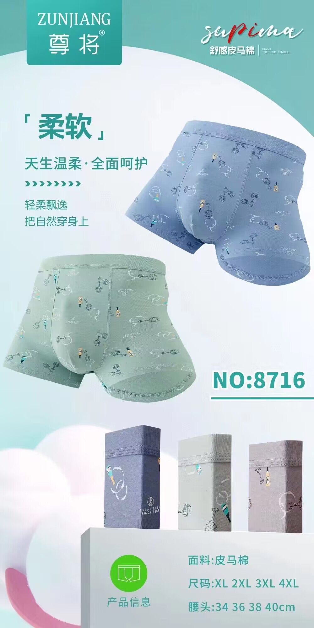 Zun 일반 8716 남성 복서 반바지 가죽 말면 편안한 통기성 바닥 가랑이 부드러운 플러스 사이즈 밝은 색상의 속옷 복서 반바지스토어 가기