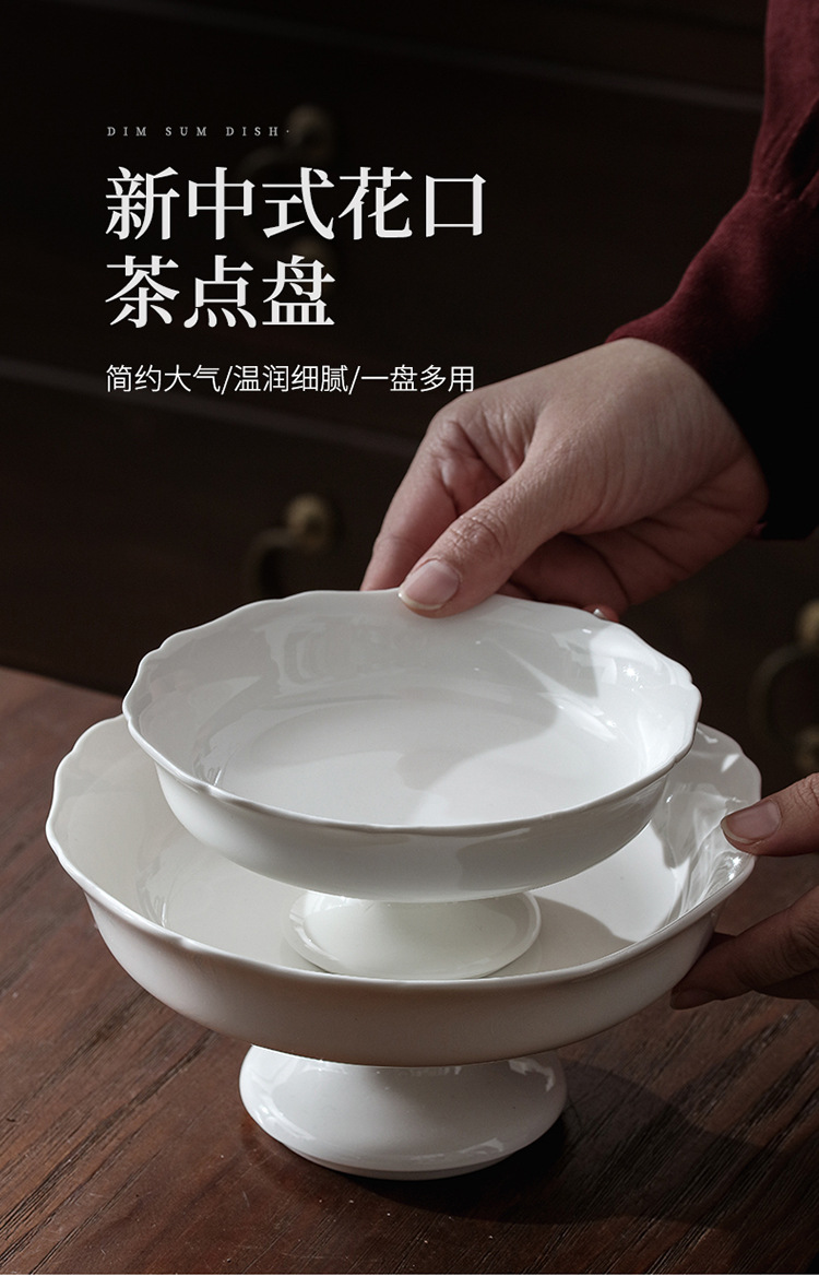 중국 스타일 잔 플레이트 선 복고풍 스낵 플레이트 부처 숭배 중국 스타일 과일 플레이트 세라믹 높은 발 플레이트 페이스트리 티 플레이트