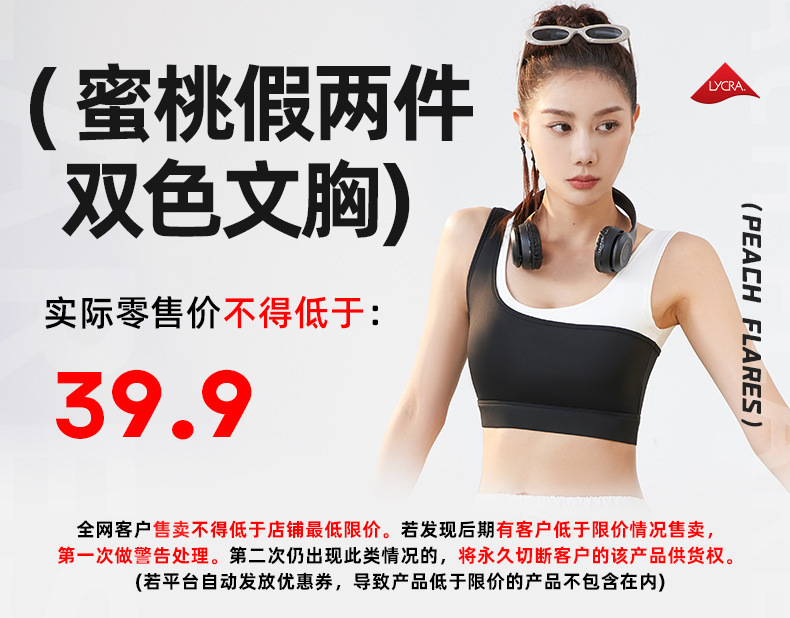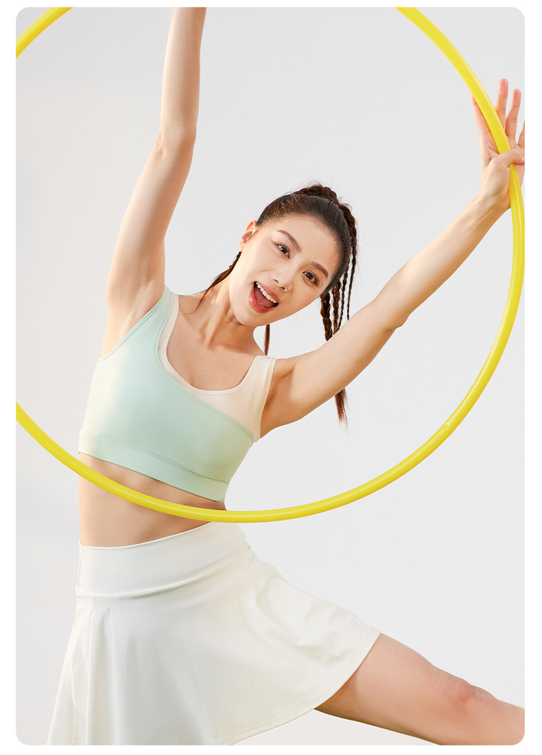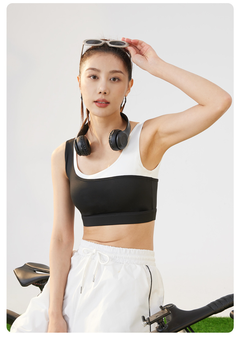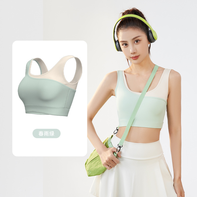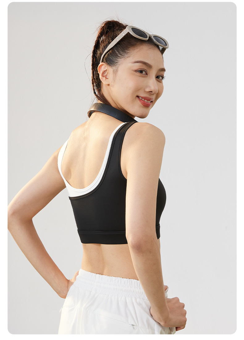 새로운 가짜 투피스 컬러 매칭 U 자형 브래지어 여성의 고정 원피스 충격 방지 푸시 업 얇은 금형 컵 스포츠 속옷 조끼