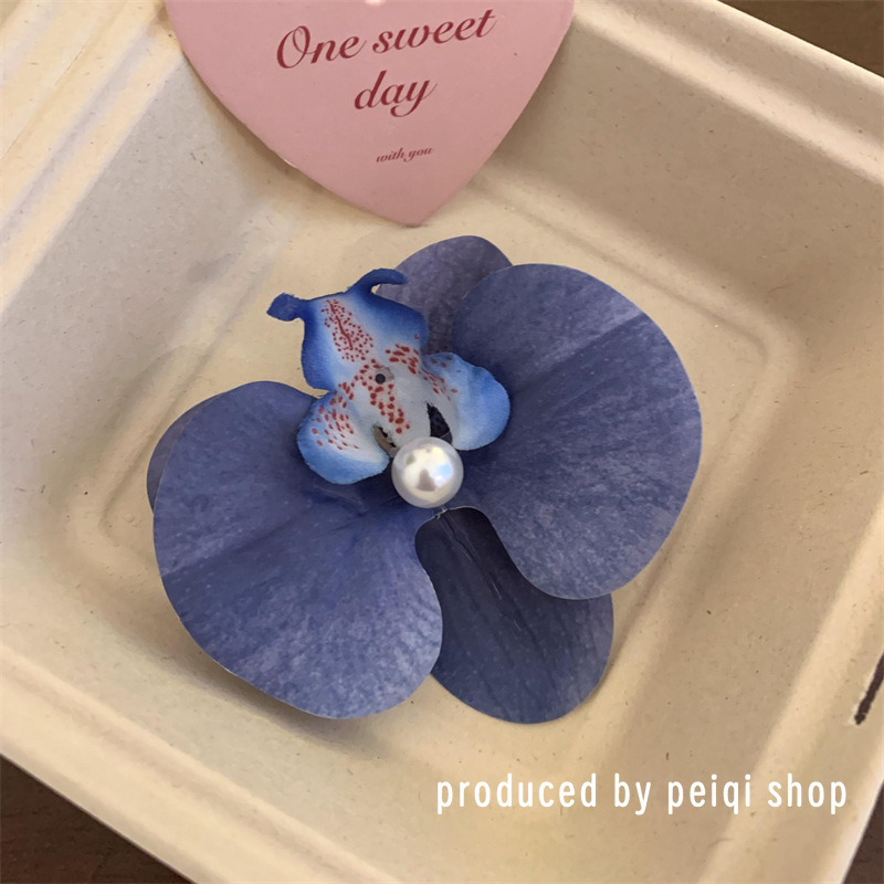• 블루-호접란 진주 오리 클립 (실크 천)