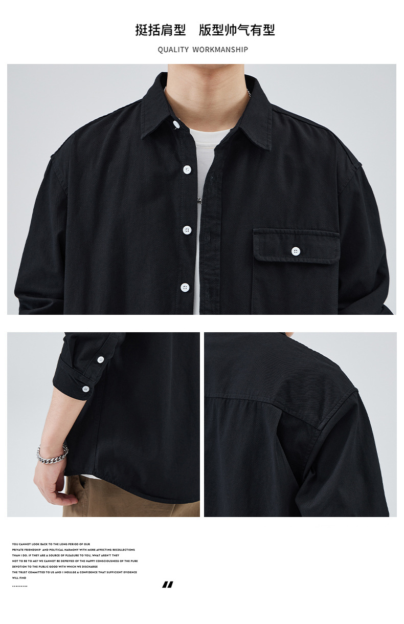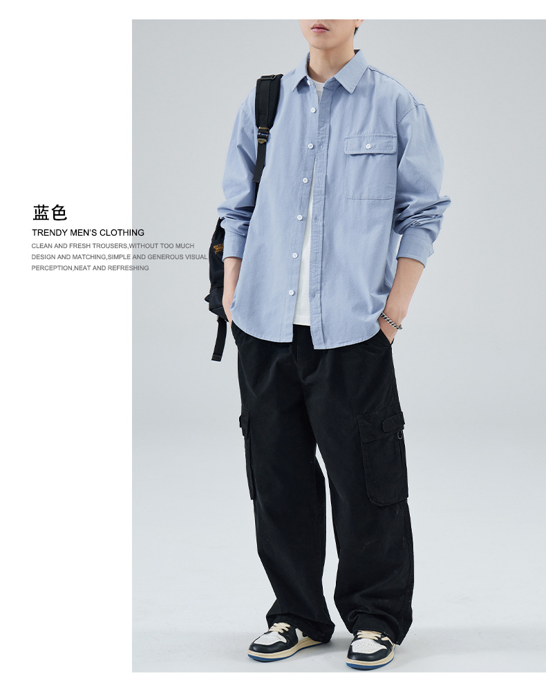LKTM 남성 # 일본 스타일 간단한 단색 긴 소매 셔츠 남자의 순면 고급 감각 느슨한 캐주얼 셔츠 재킷스토어 가기