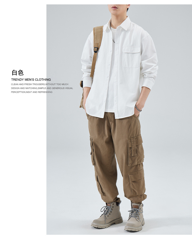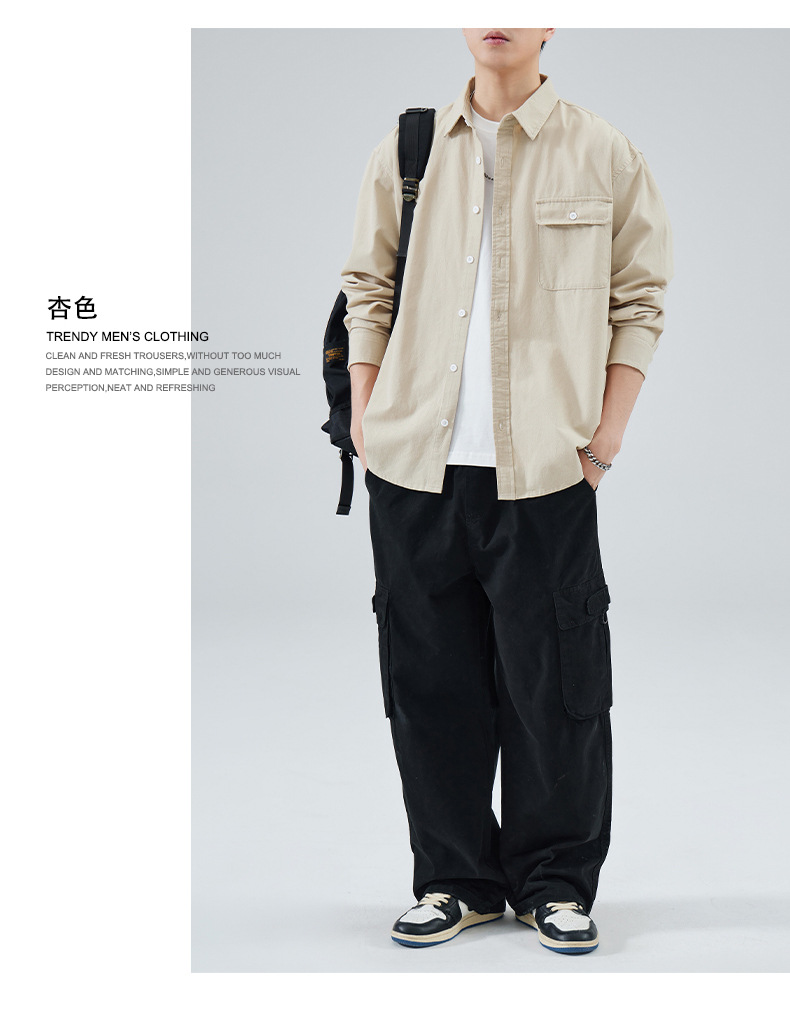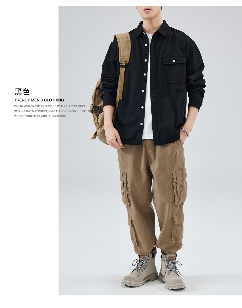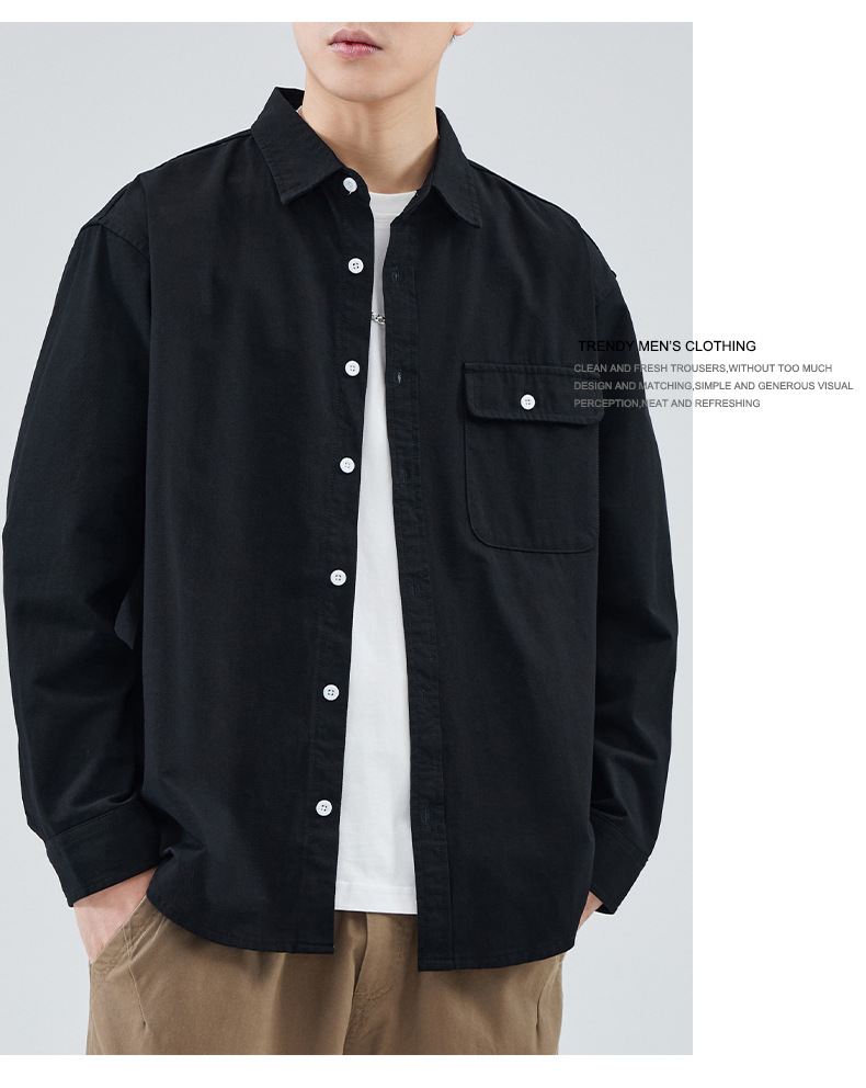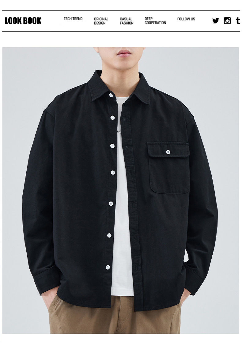 LKTM 남성 # 일본 스타일 간단한 단색 긴 소매 셔츠 남자의 순면 고급 감각 느슨한 캐주얼 셔츠 재킷
