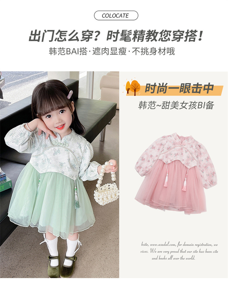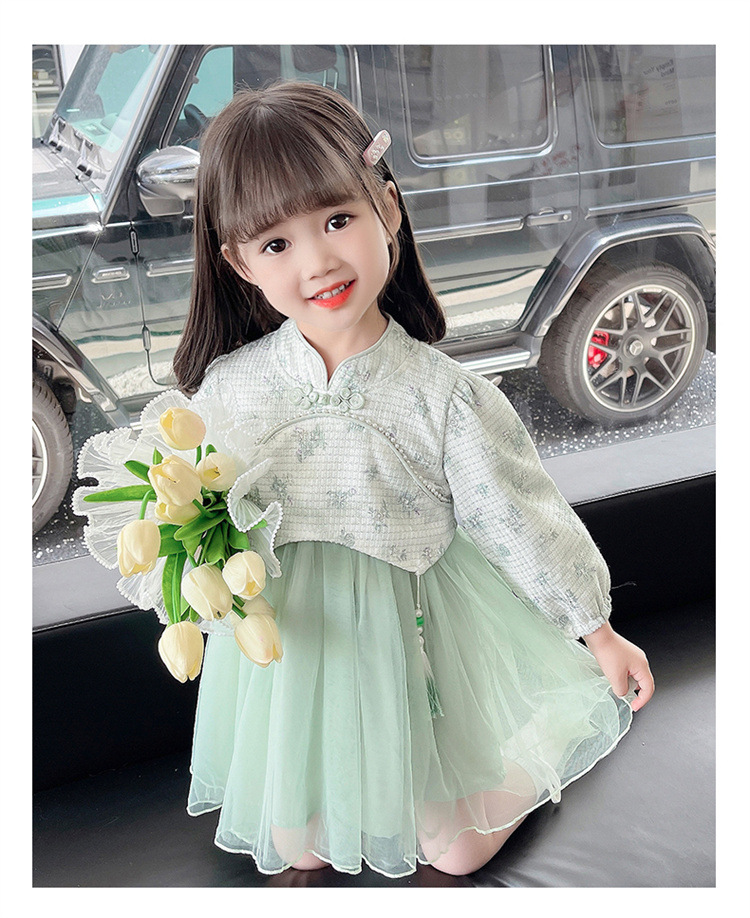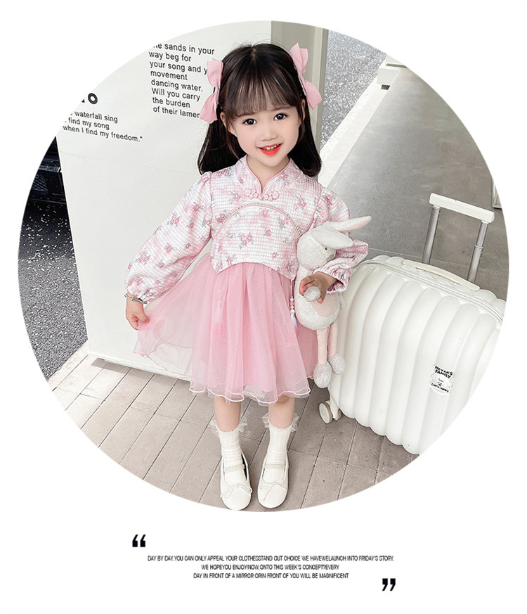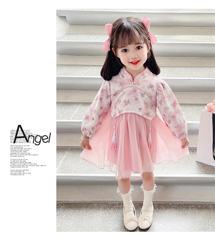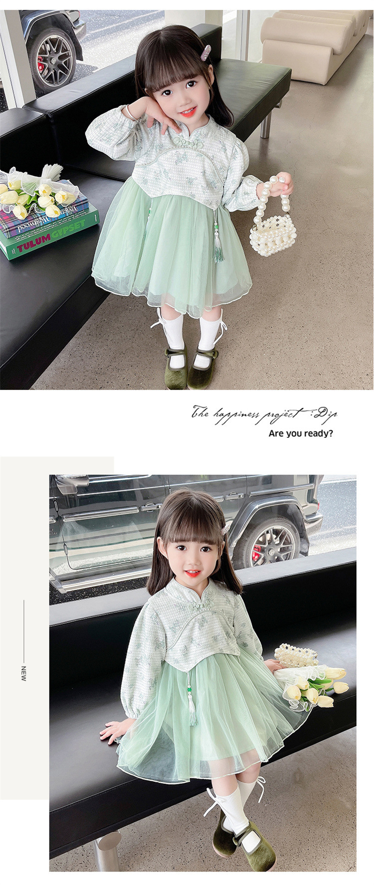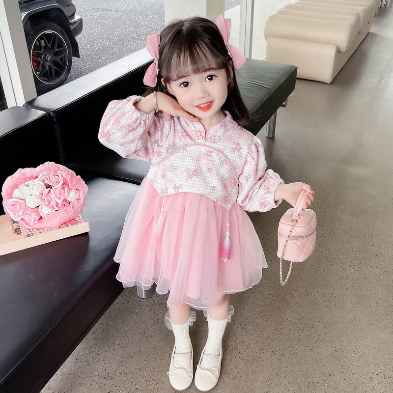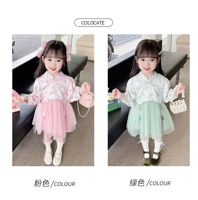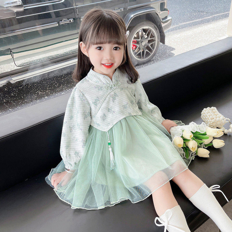 소녀의 고대 스타일 술 거즈 스커트 2024 봄 새로운 서양식 유행 아동복 아기 소녀 한후 원피스 패션스토어 가기