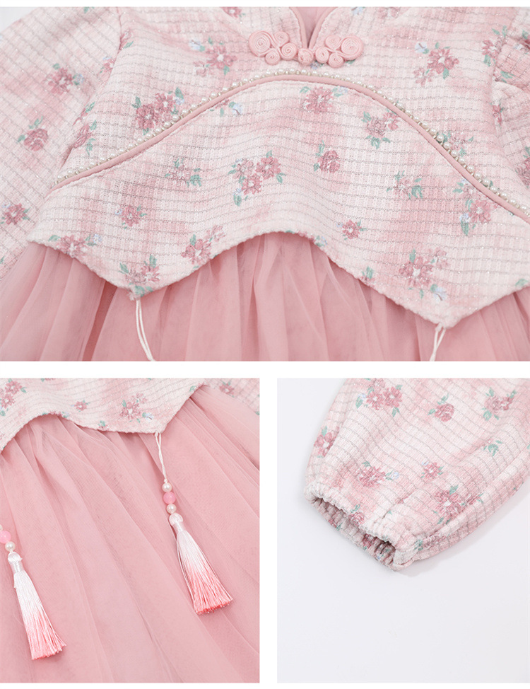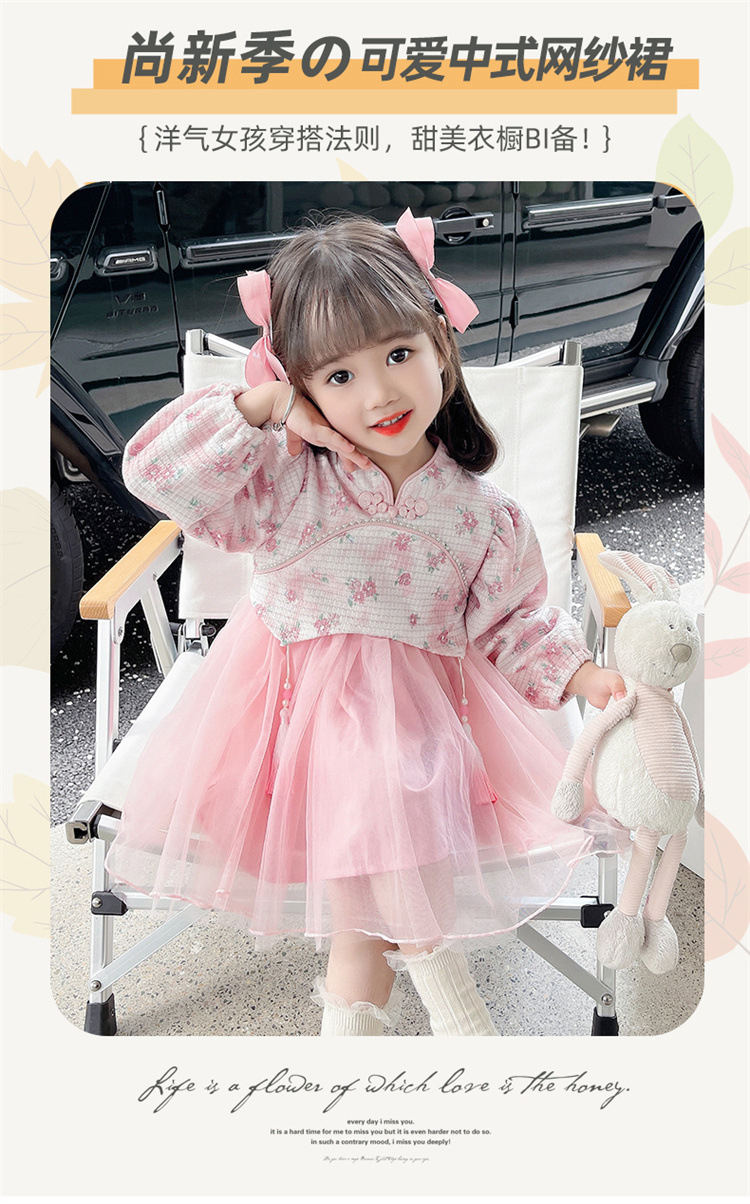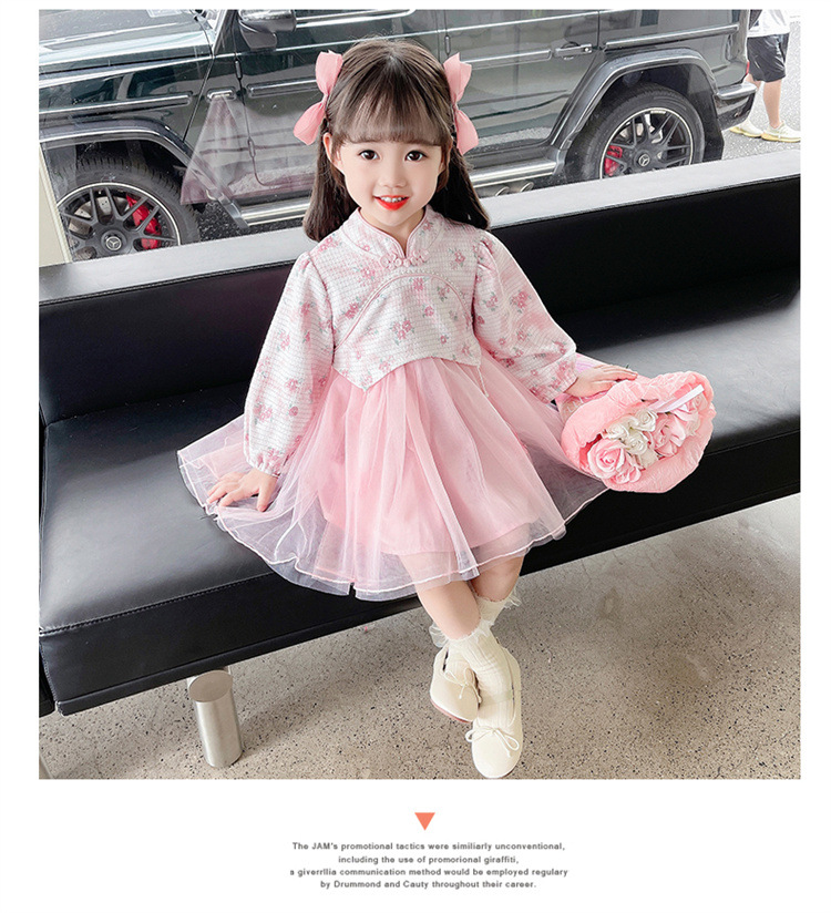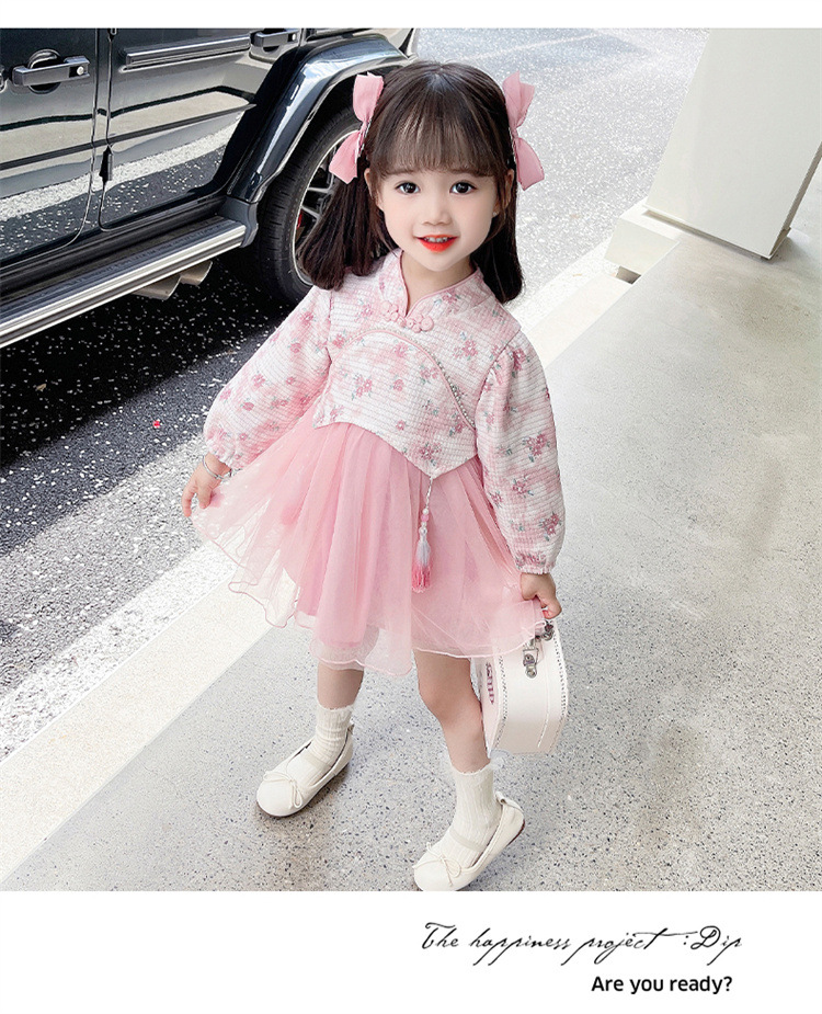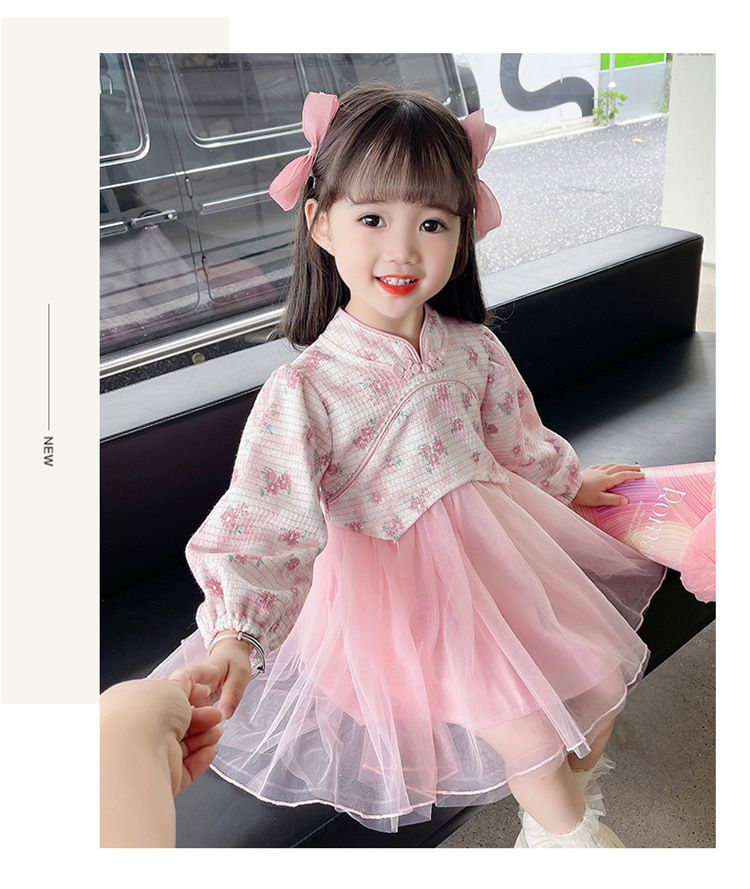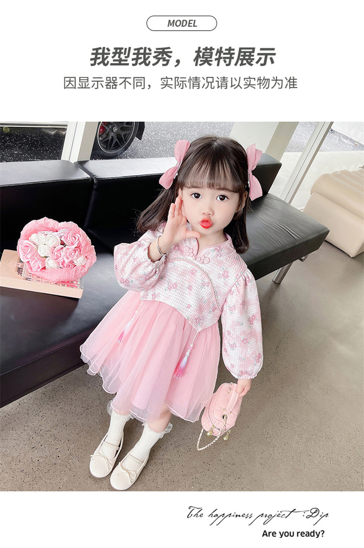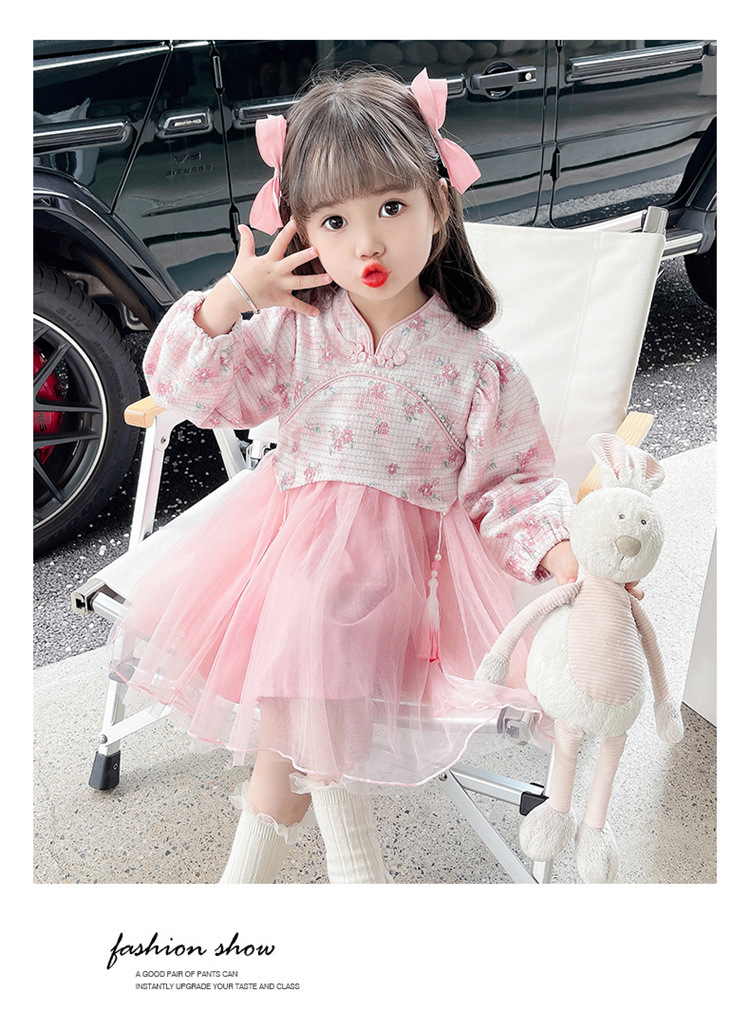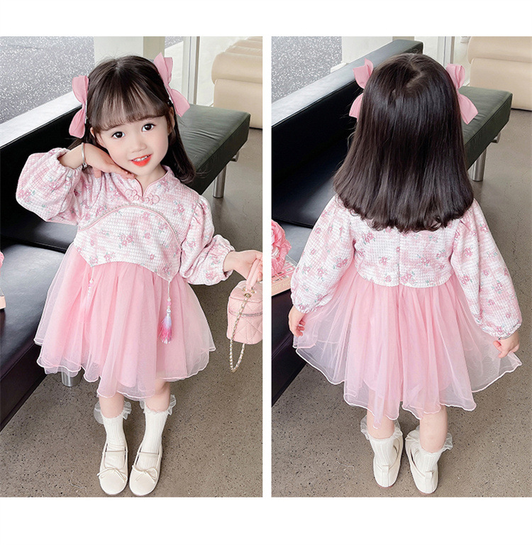 소녀의 고대 스타일 술 거즈 스커트 2024 봄 새로운 서양식 유행 아동복 아기 소녀 한후 원피스 패션스토어 가기