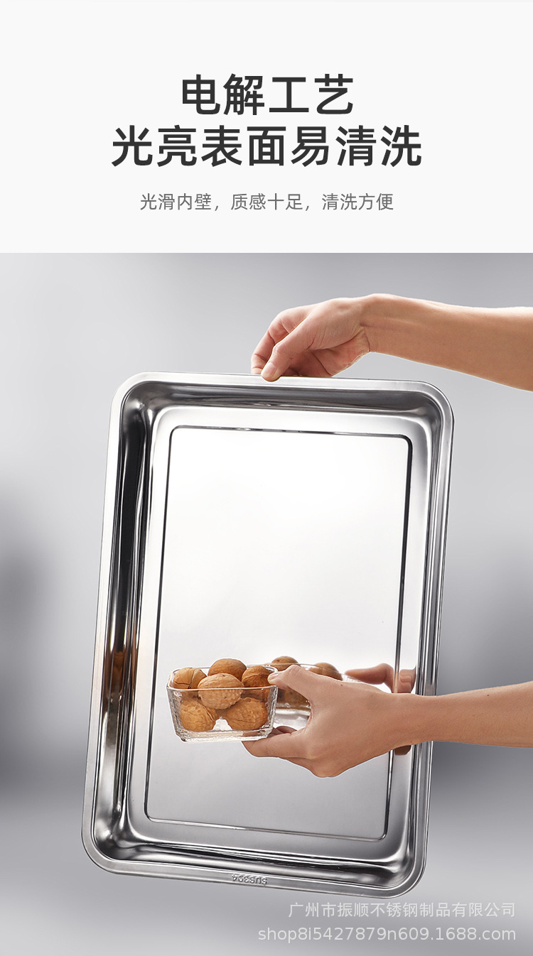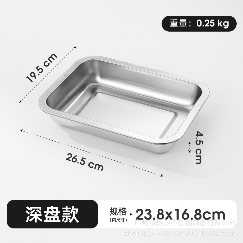 304 스테인리스 스틸 직사각형 밥 접시, 요리 접시, 트레이, 준비용 접시, 간식, 빵, 찐빵 진열 접시스토어 가기