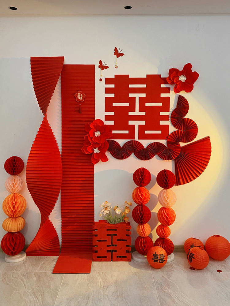 웨딩 룸 레이아웃 세트 거실 장식 웨딩 남자와 여자의 새 집 침실 Xi 캐릭터 스티커 간단한 하이 엔드 배경 벽