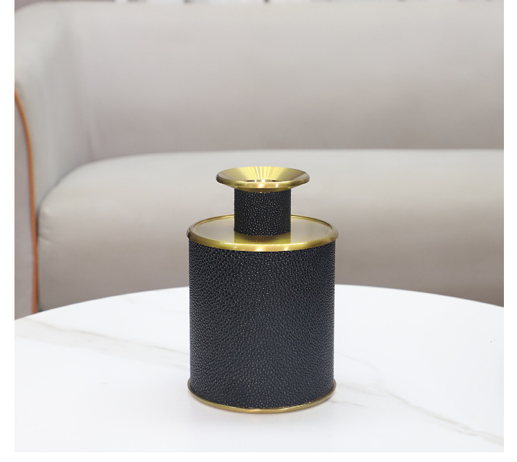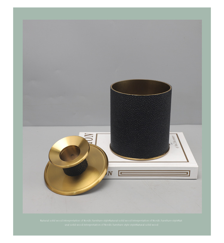 유럽 스타일의 가벼운 고급 고급 고급 고급 금속 가죽 롤 종이 저장 항아리 장식 거실 식당 침실 호텔 가정 장식스토어 가기