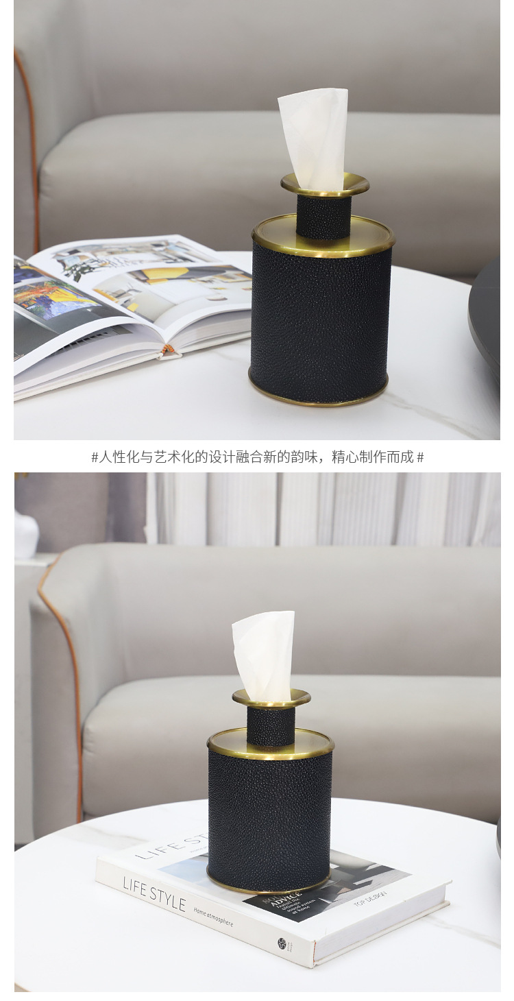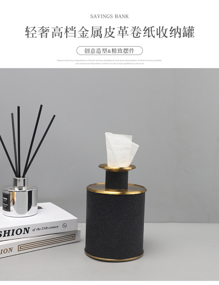 유럽 스타일의 가벼운 고급 고급 고급 고급 금속 가죽 롤 종이 저장 항아리 장식 거실 식당 침실 호텔 가정 장식