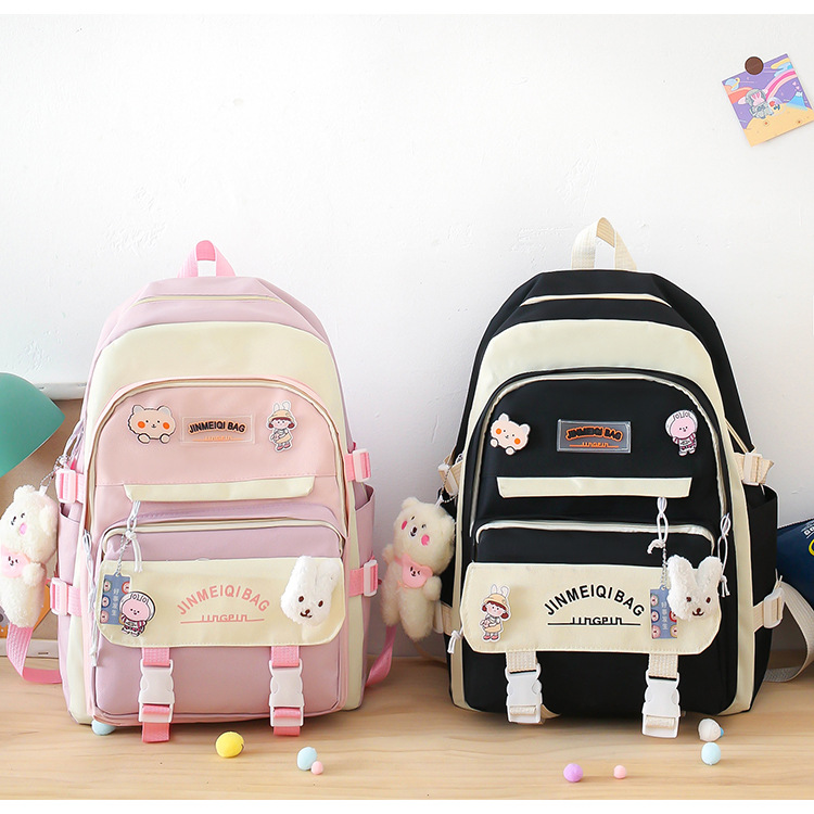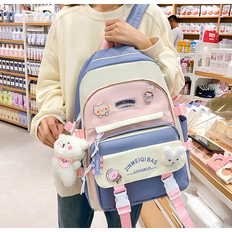새로운 학교 가방 여성 고등학생 중학교 학생 대용량 배낭 5 피스 세트 초등학생 3 ~ 6 학년 배낭스토어 가기