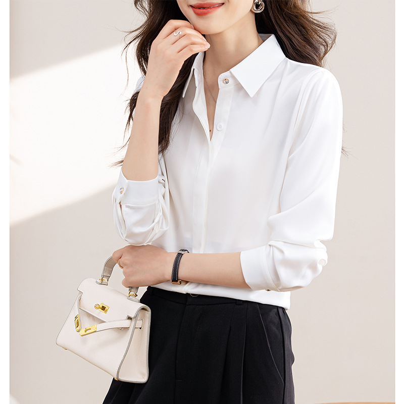 엄선된 2025 봄 신상 여성 셔츠 긴팔 새틴 통근 작업복 셔츠