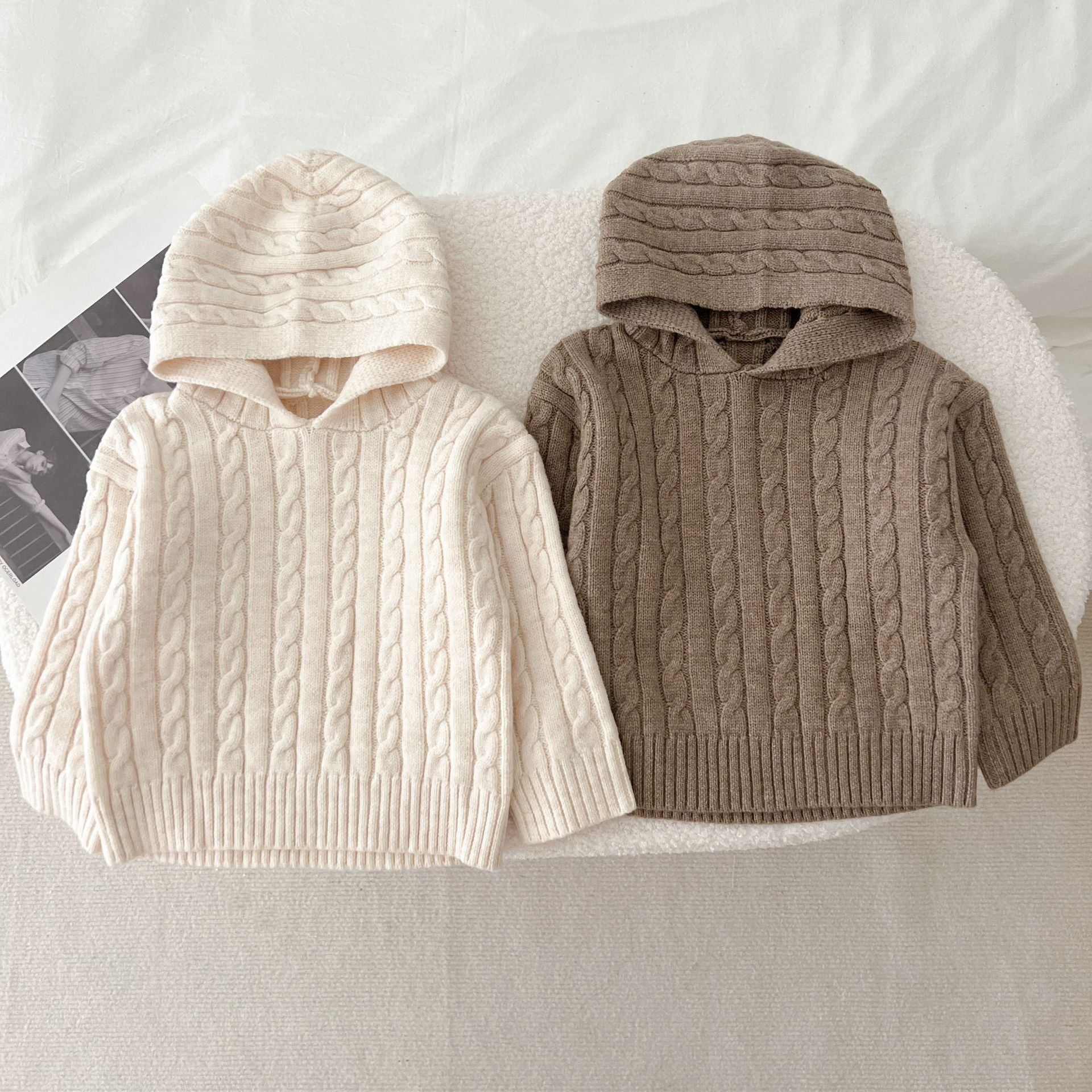 아동복 한국식 어린이 봄과 가을 새 소년 소녀 스웨터 캐주얼 어린이 후드 스웨터 니트 풀오버