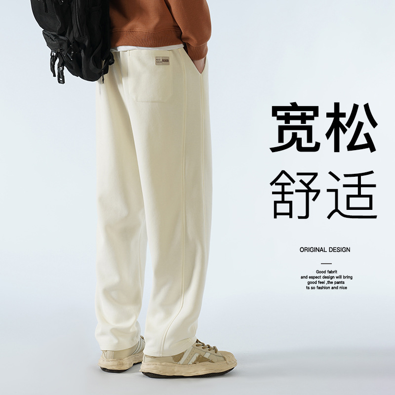 남성용 겨울 캐주얼 팬츠, 남성용 드레이프 와이드 레그 루즈핏 스포츠 스트레이트 롱 팬츠, 다용도 스웨트팬츠