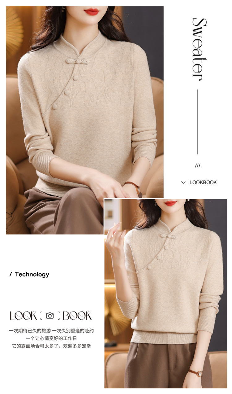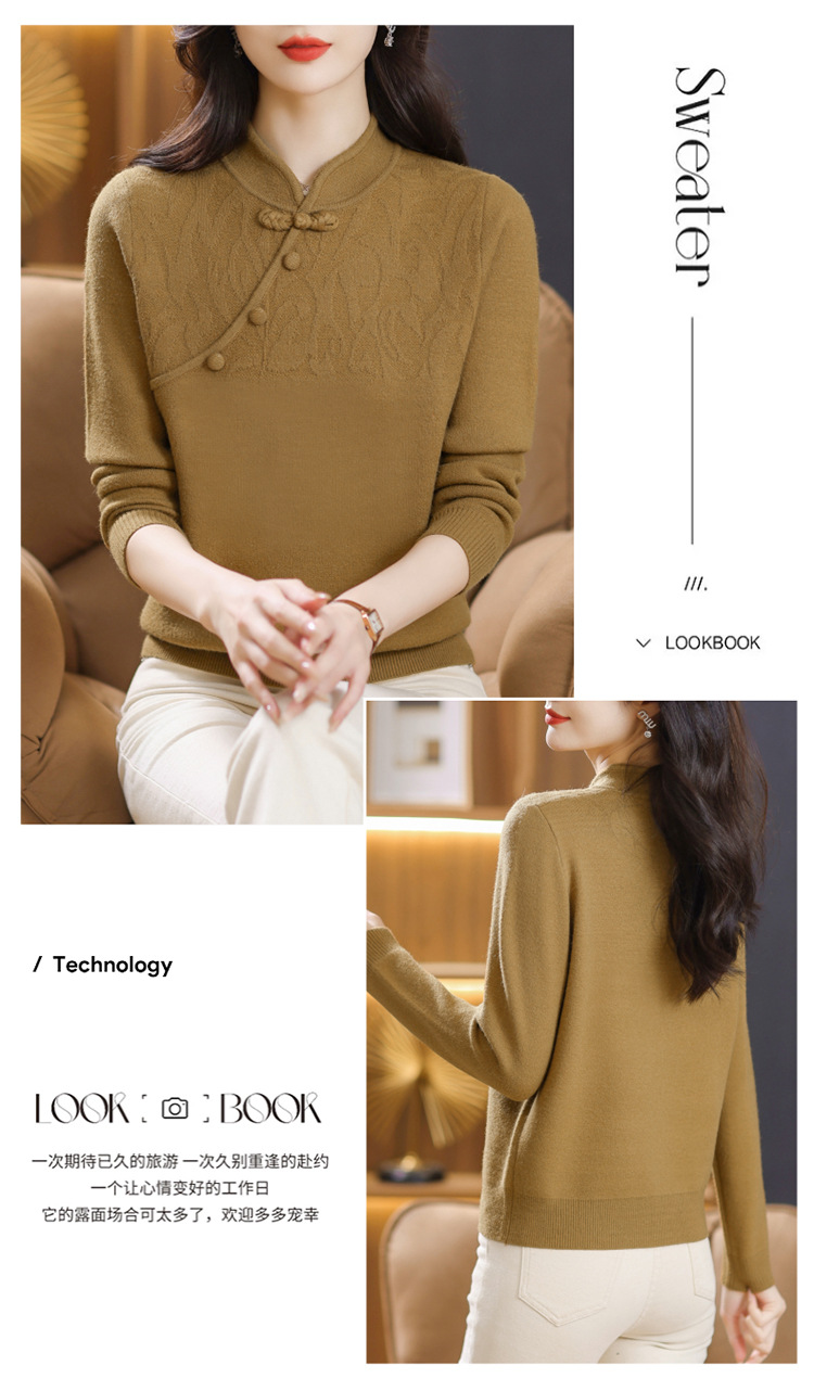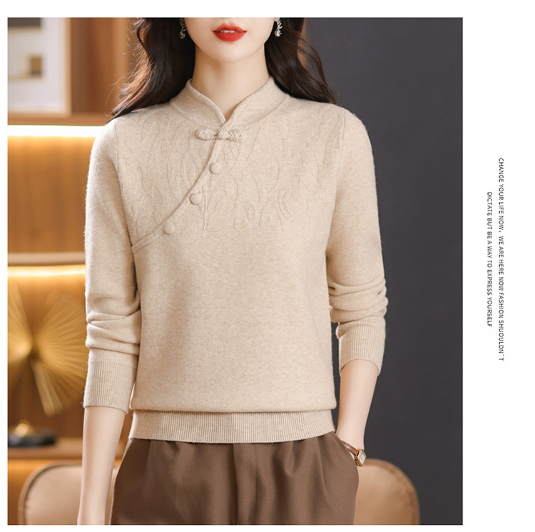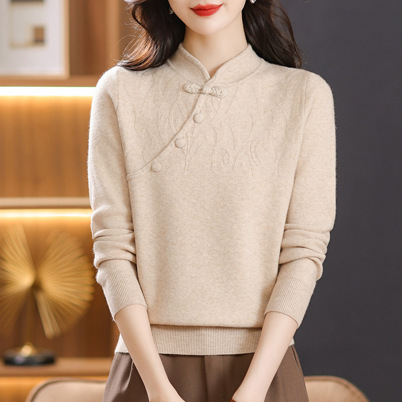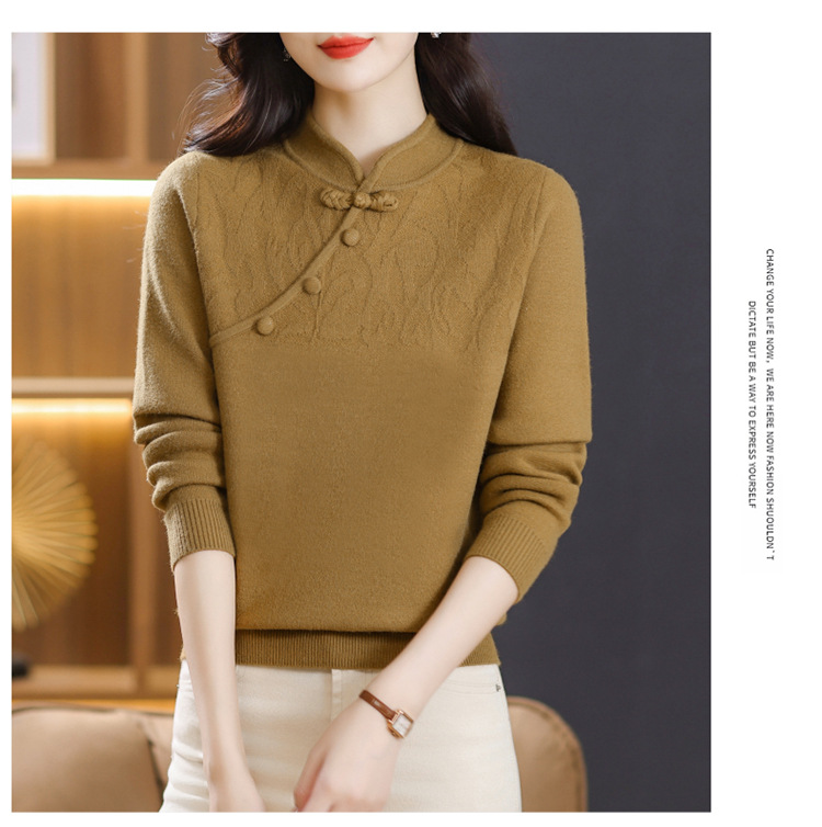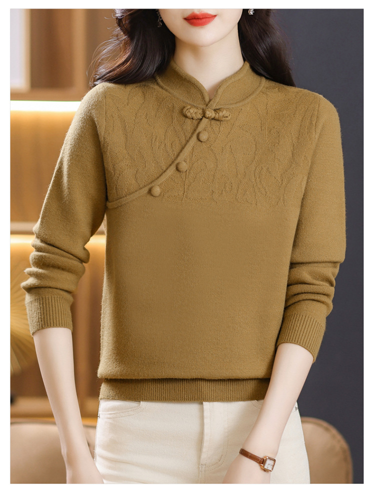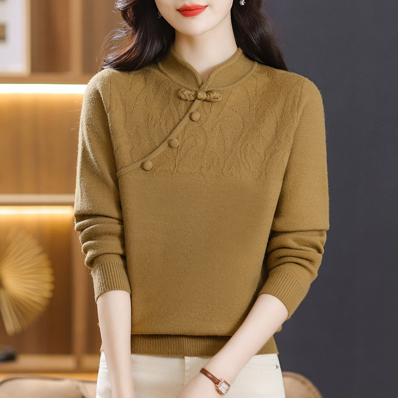 2024 새로운 중국 스타일 버클 탑 엄마 니트 중국 빨간 스웨터 여성의 가을과 겨울 밑바닥 셔츠 내복스토어 가기