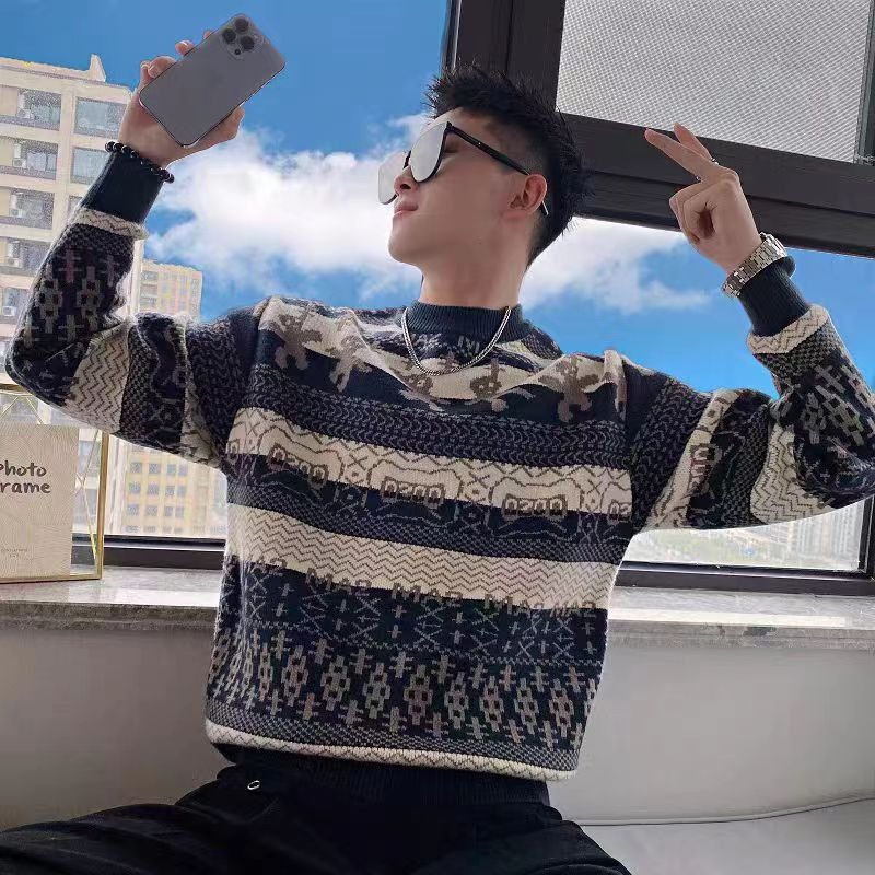 하프 터틀넥 스웨터 남성 가을과 겨울 2024 새로운 패션 브랜드 인테리어 니트 스웨터 컬러 디자인 감각 긴 소매 기본 셔츠스토어 가기