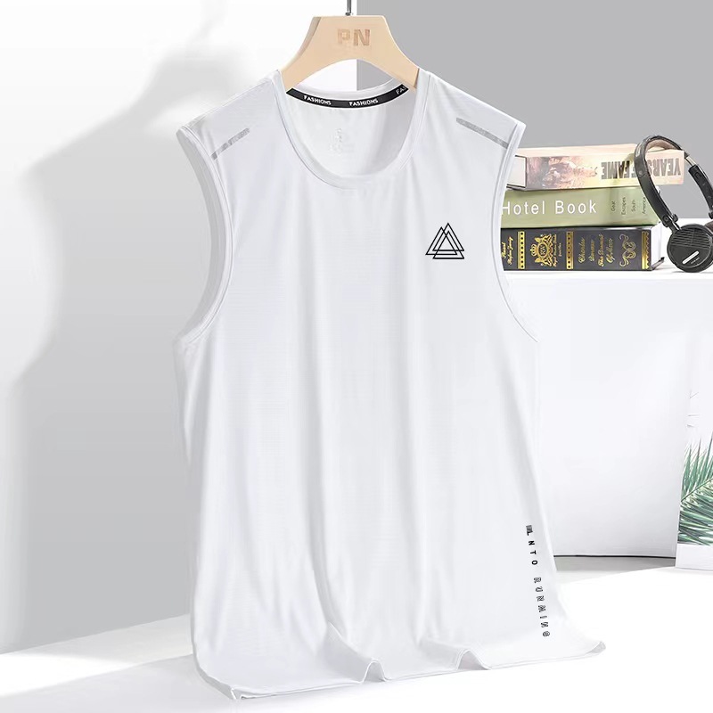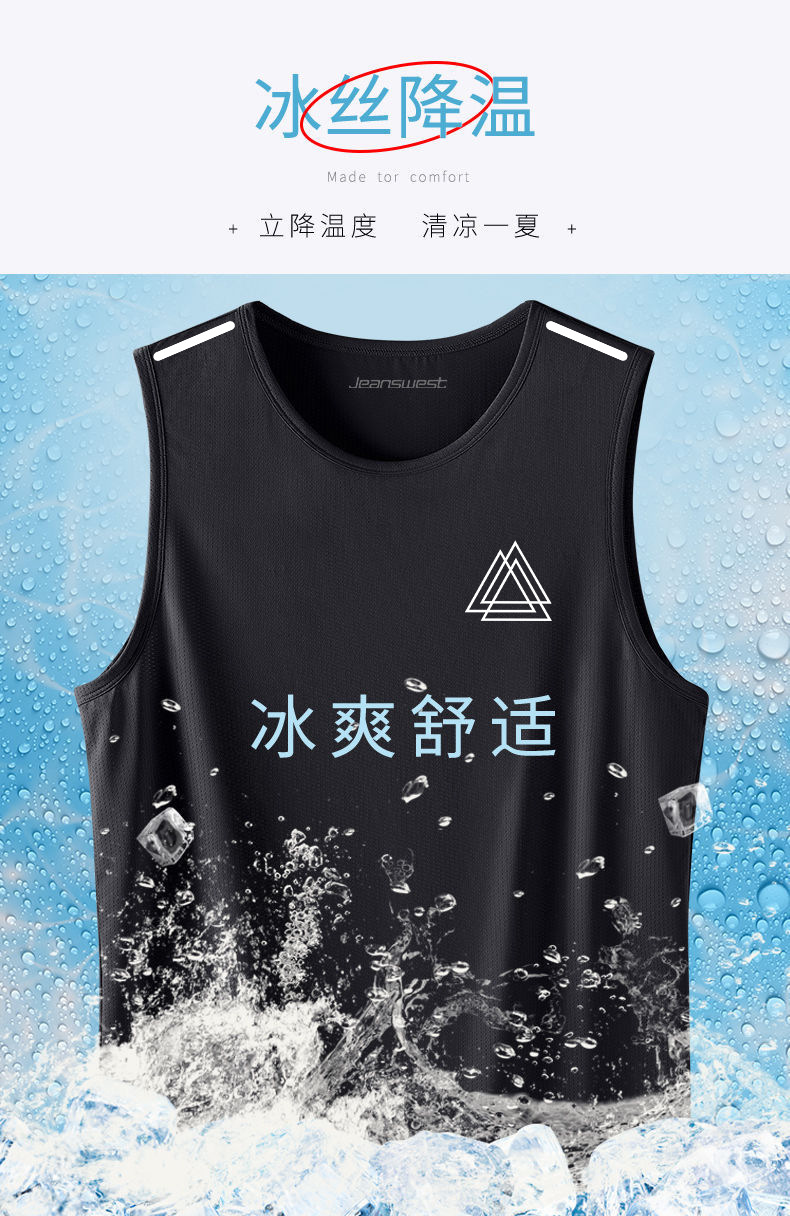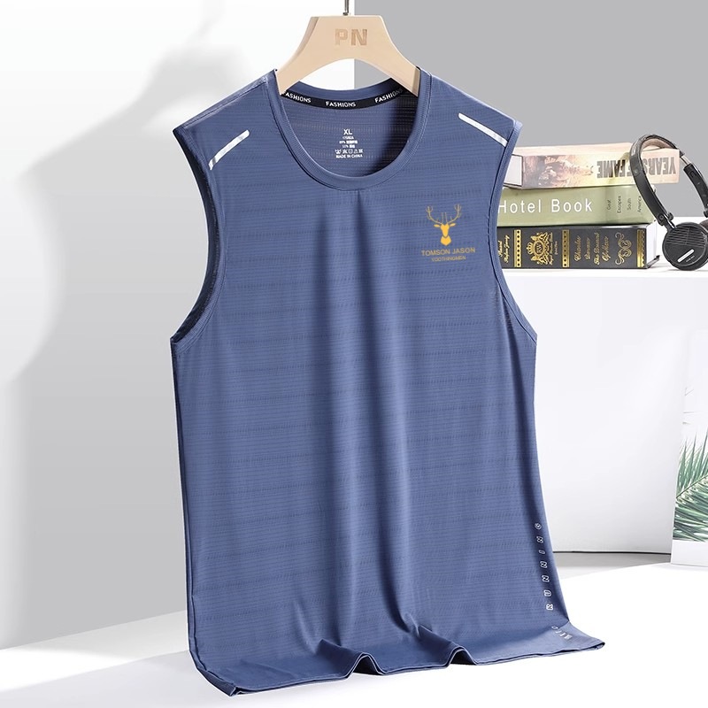 아이스 실크 조끼 남자의 트렌디 한 얇은 둥근 목 메쉬 통기성 빠른 건조 스포츠 와이드 웨이스트 코트 남자의 민소매 여름스토어 가기
