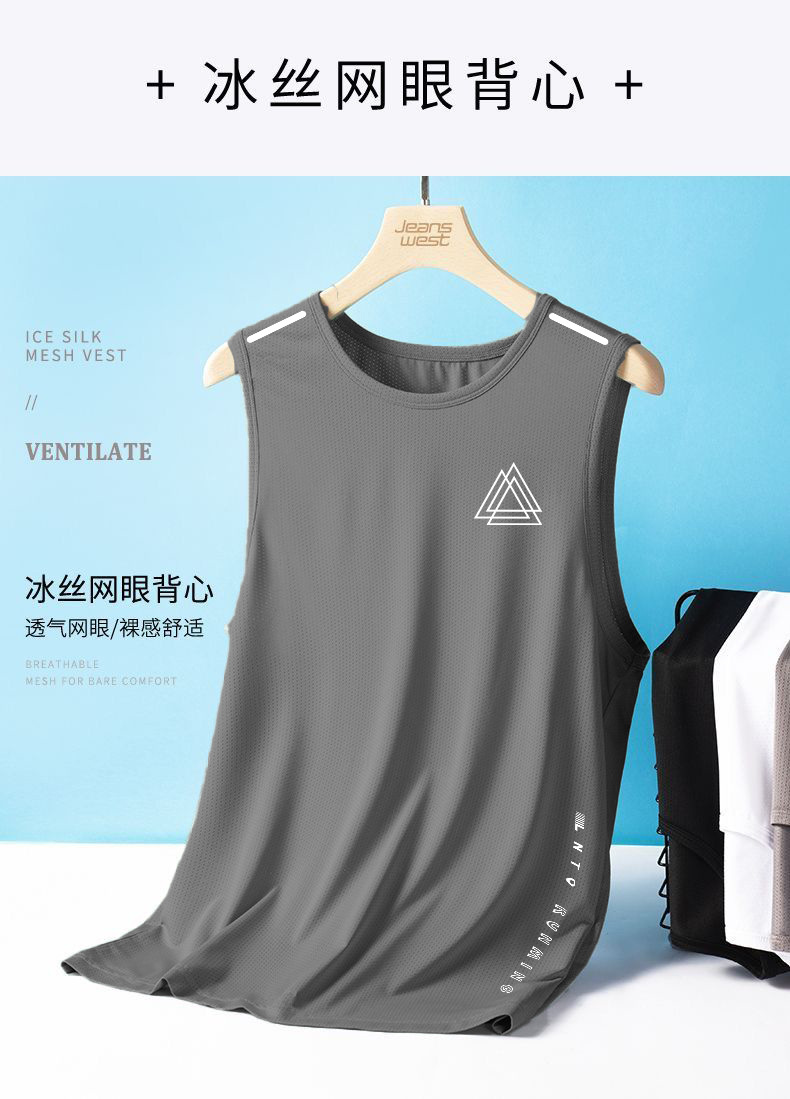 아이스 실크 조끼 남자의 트렌디 한 얇은 둥근 목 메쉬 통기성 빠른 건조 스포츠 와이드 웨이스트 코트 남자의 민소매 여름