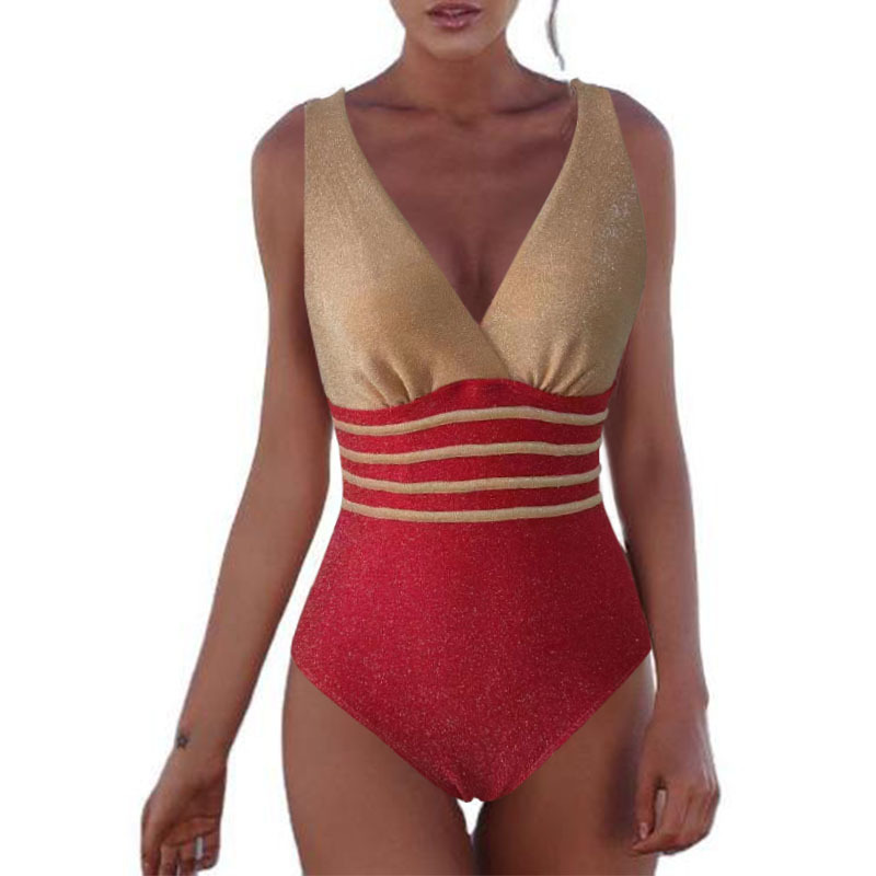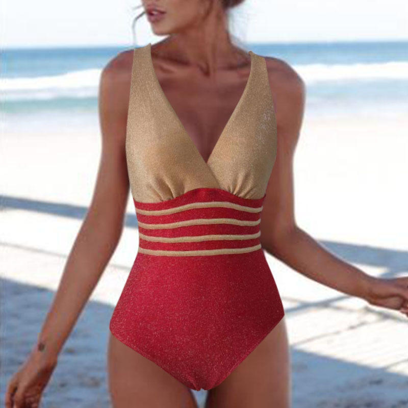 유럽과 미국의 2024 뉴 골드 실크 비키니 보수 수영복 여성 원피스 수영복 섹시한 아마존 비키니스토어 가기