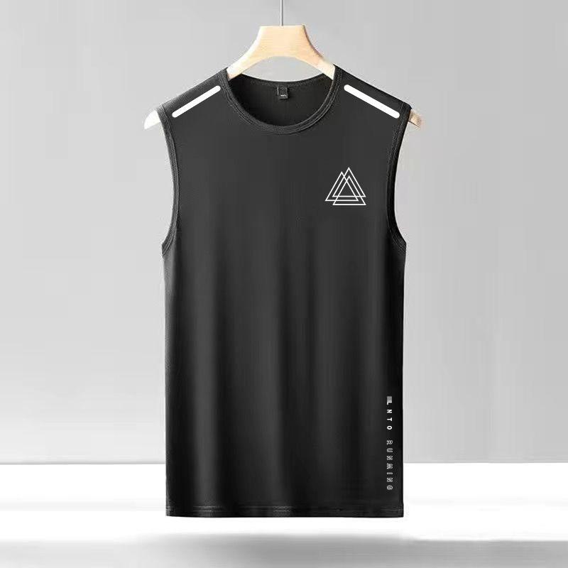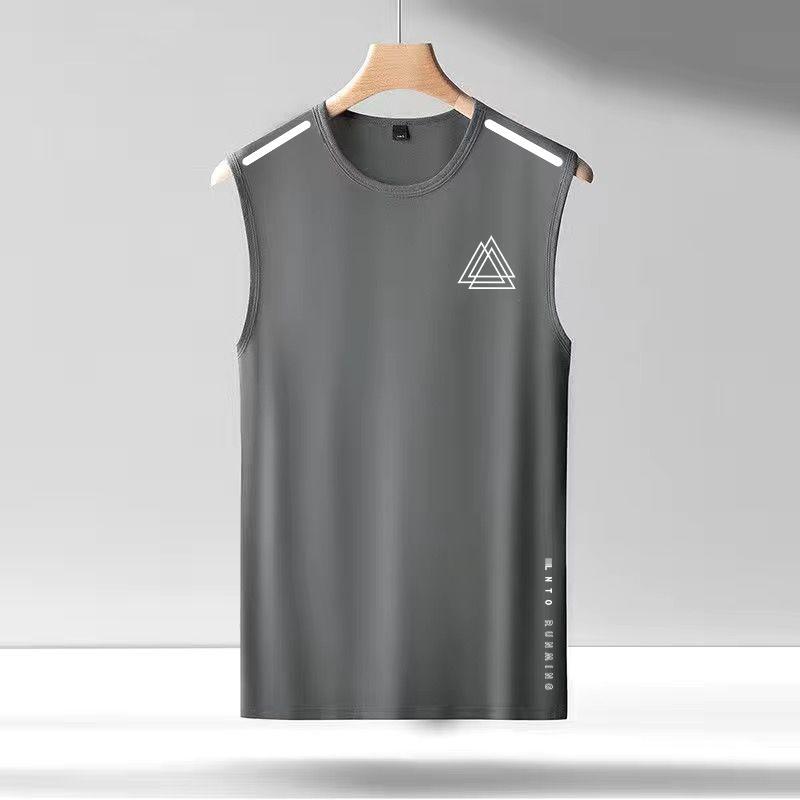 아이스 실크 조끼 남자의 트렌디 한 얇은 둥근 목 메쉬 통기성 빠른 건조 스포츠 와이드 웨이스트 코트 남자의 민소매 여름