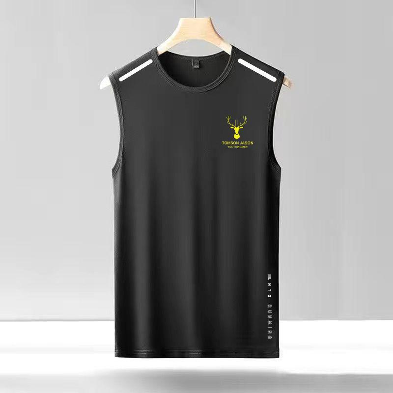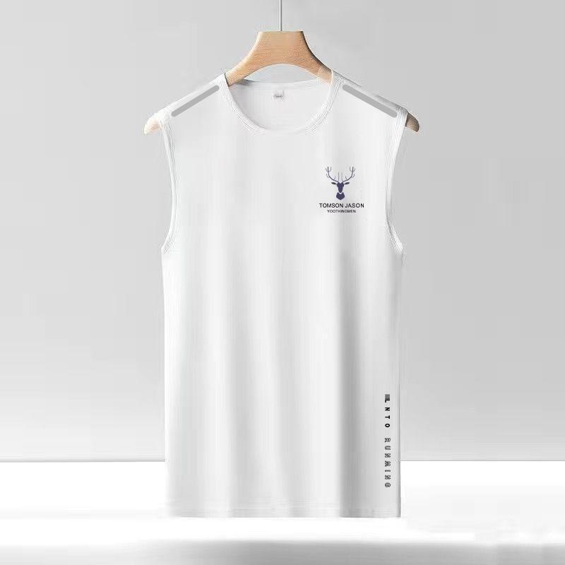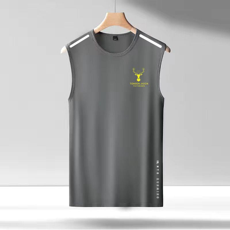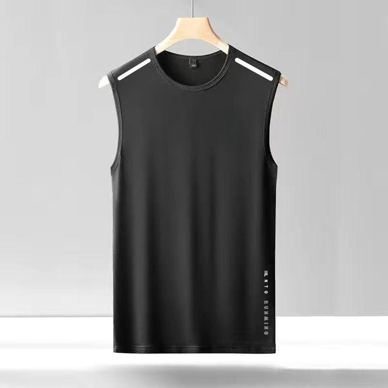 아이스 실크 조끼 남자의 트렌디 한 얇은 둥근 목 메쉬 통기성 빠른 건조 스포츠 와이드 웨이스트 코트 남자의 민소매 여름스토어 가기
