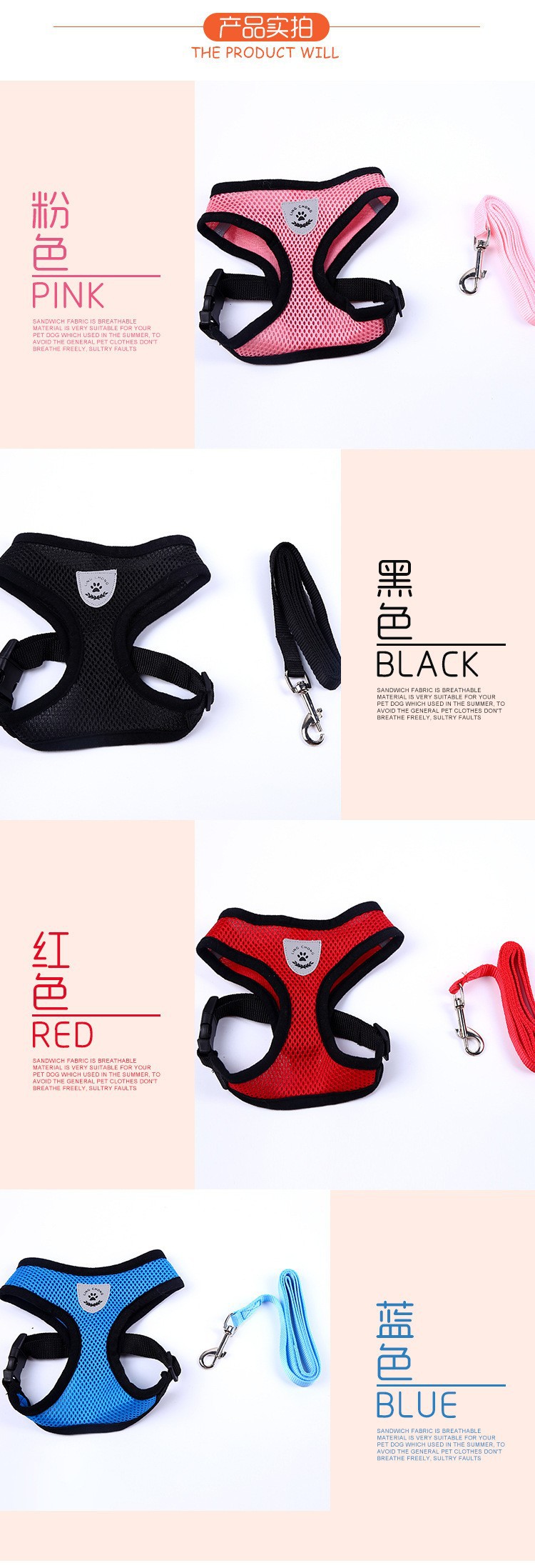견인 밧줄 작은 개 가슴 다시 개 산책 밧줄 여름 통기성 애완 동물 가슴 조끼 개 가슴 다시 도매스토어 가기