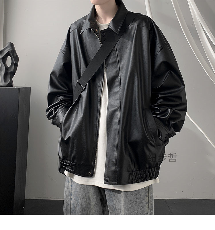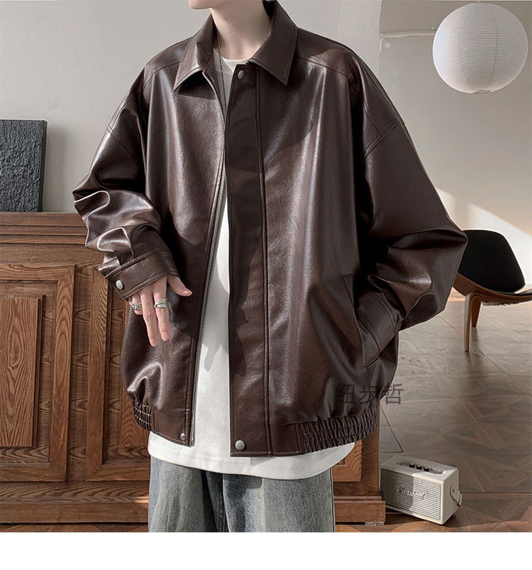 아메리칸 스타일 레트로 가죽 자켓 남자의 가을과 겨울 하이 엔드 느낌 리핀 핸즈섬 유행 캐주얼 루즈 가죽 옷깃 재킷스토어 가기