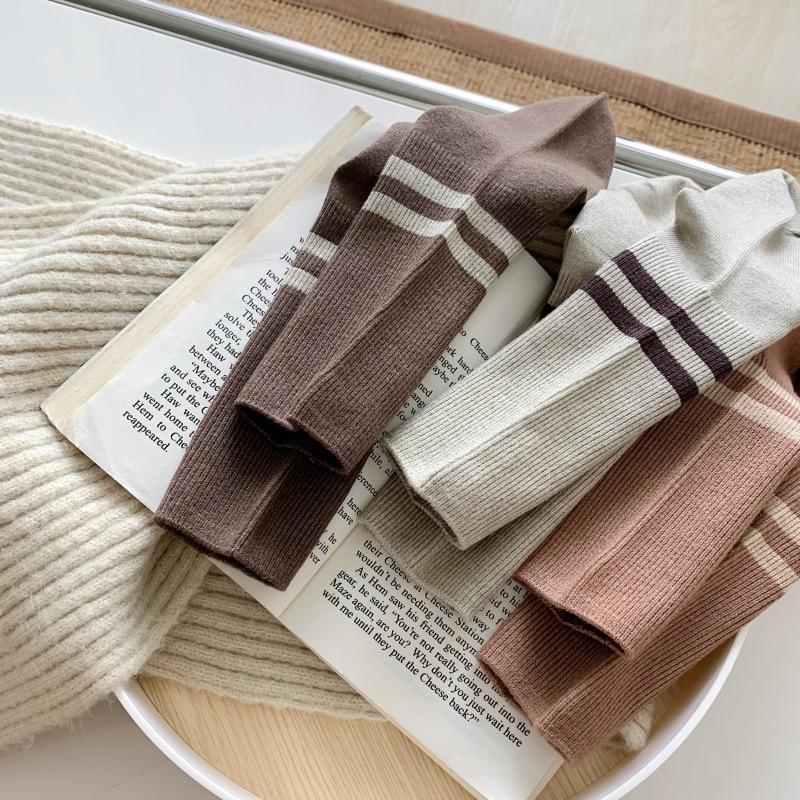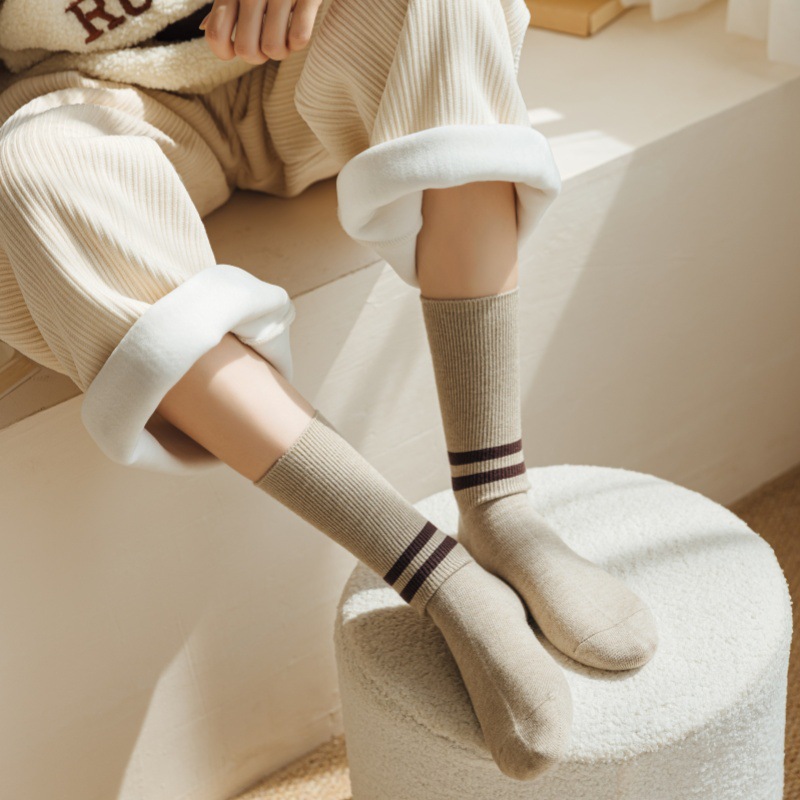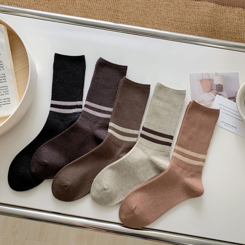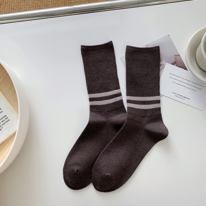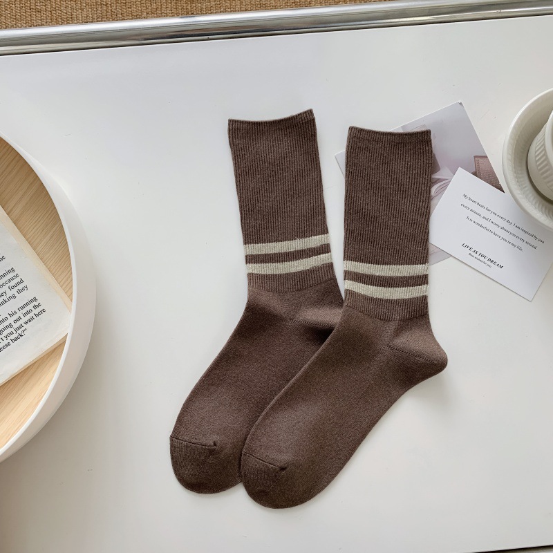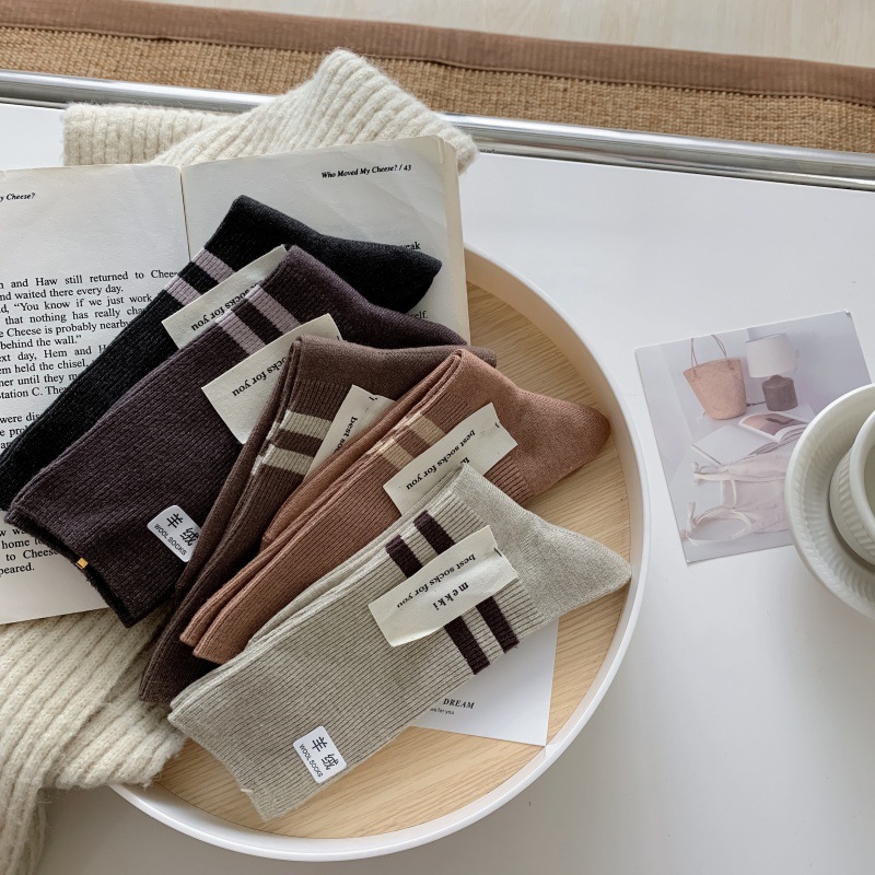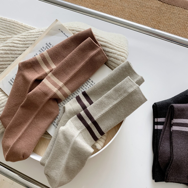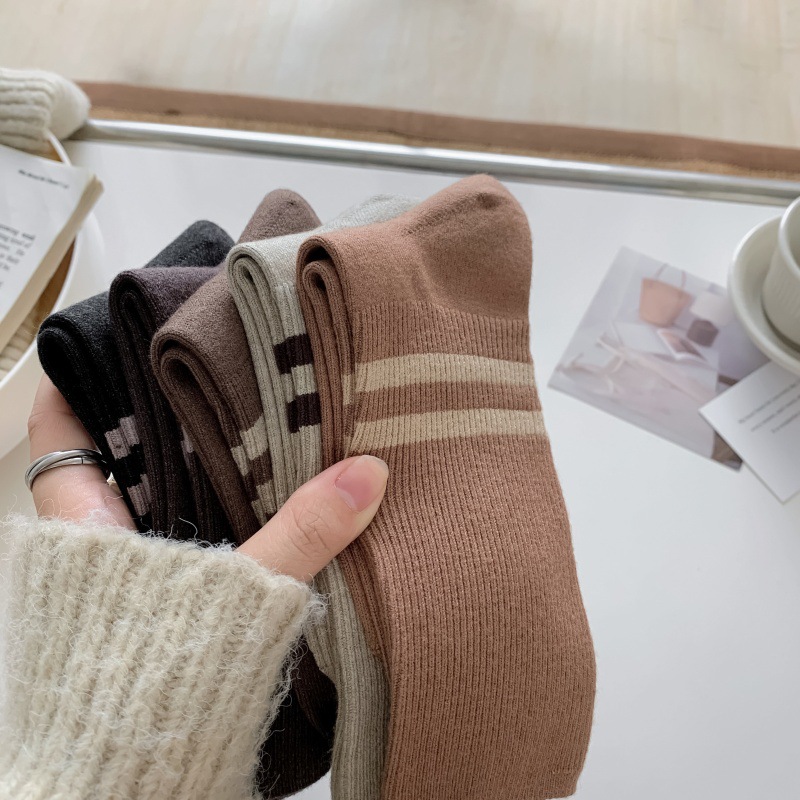 한국 양말 여자 새 가을과 겨울 동대문 2 바 스트라이프 긴 파일 양말 더블 바늘 캐시미어 올 매치 중반 종아리 길이 양말