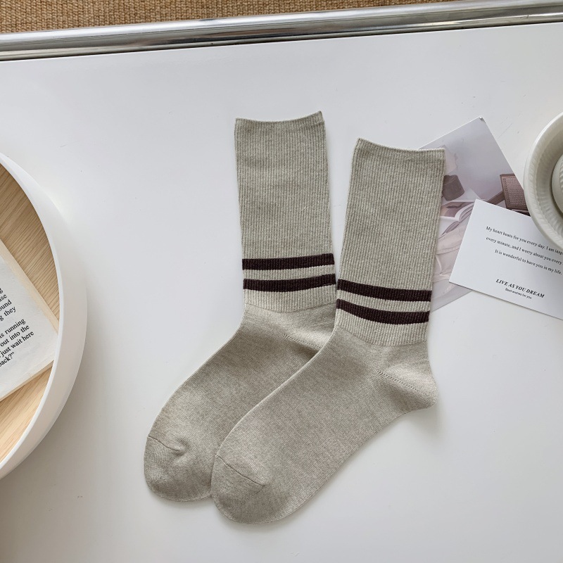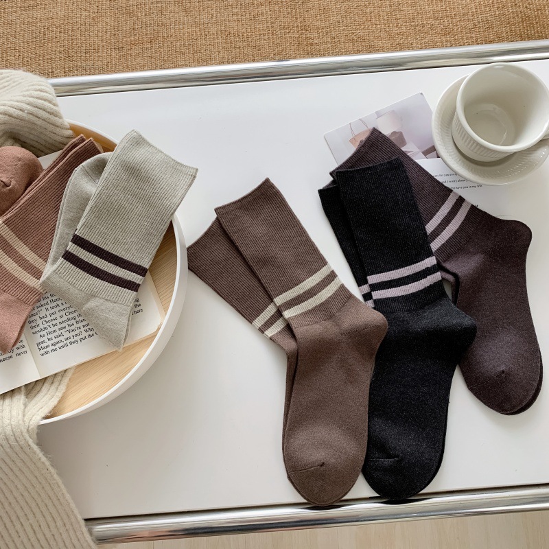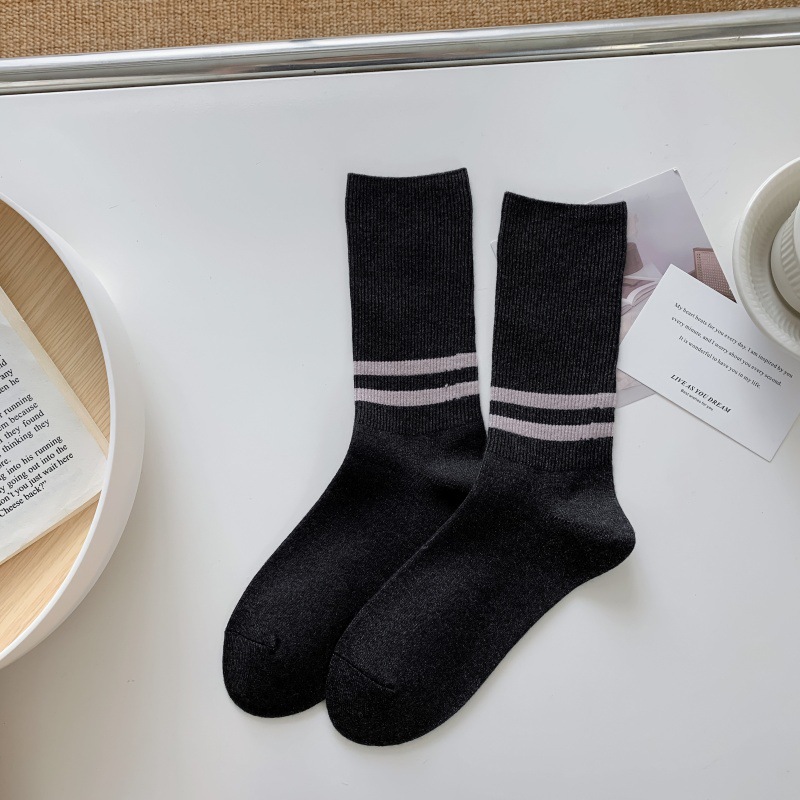한국 양말 여자 새 가을과 겨울 동대문 2 바 스트라이프 긴 파일 양말 더블 바늘 캐시미어 올 매치 중반 종아리 길이 양말스토어 가기