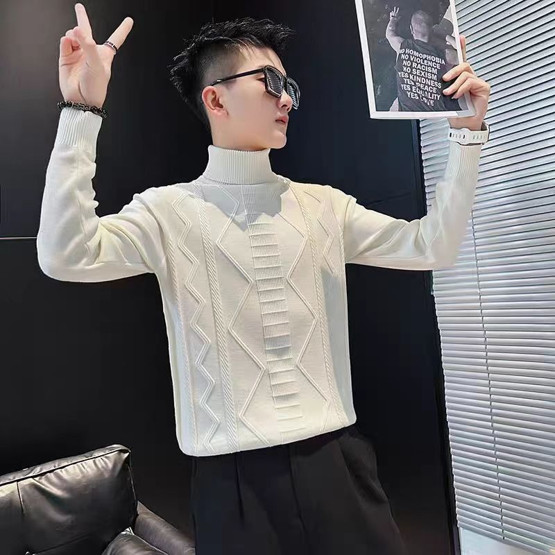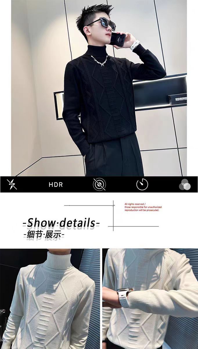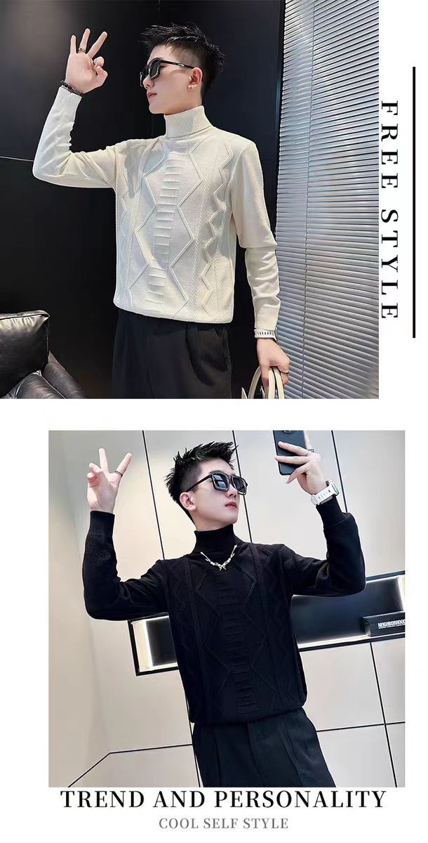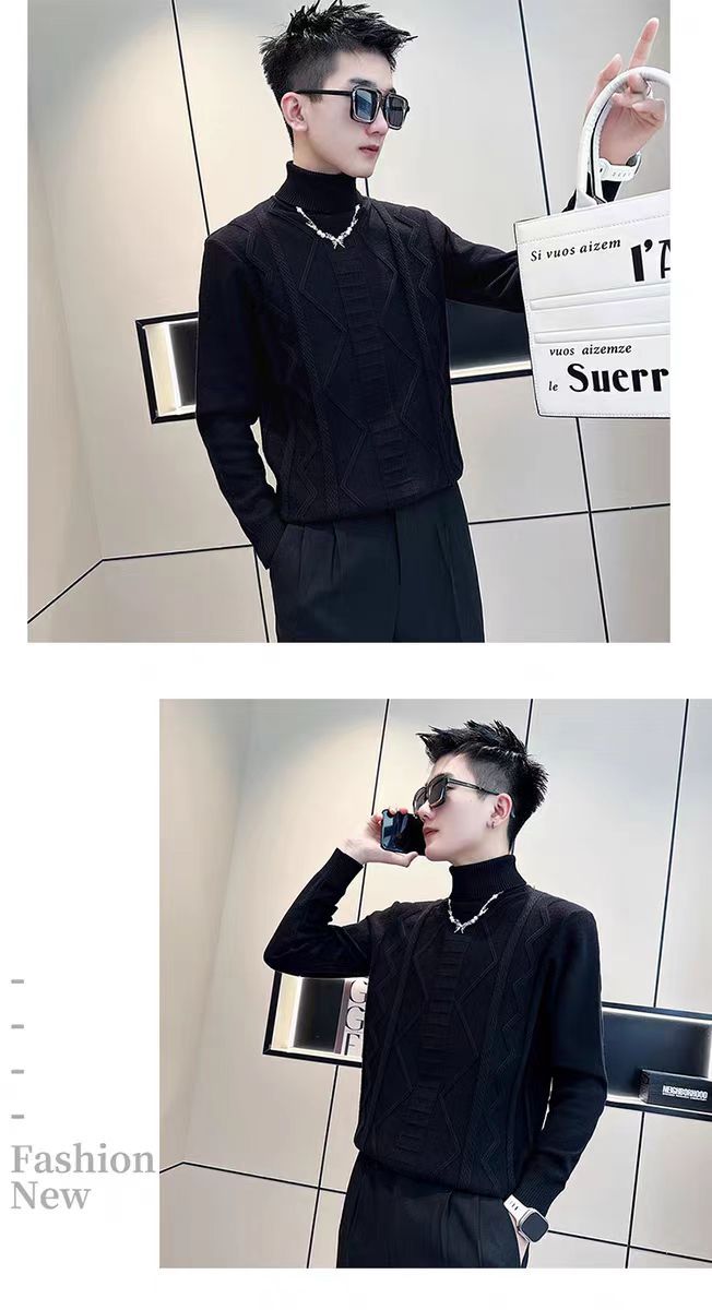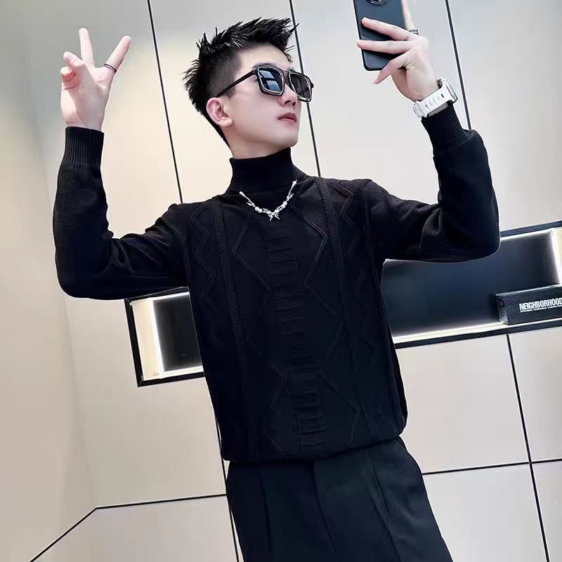 트렌디 한 브랜드 Pu Shuai 터틀넥 스웨터 남성용 한국식 슬림 슬리밍 스웨터 가을과 겨울 남성용 트렌디 한 언더 셔츠