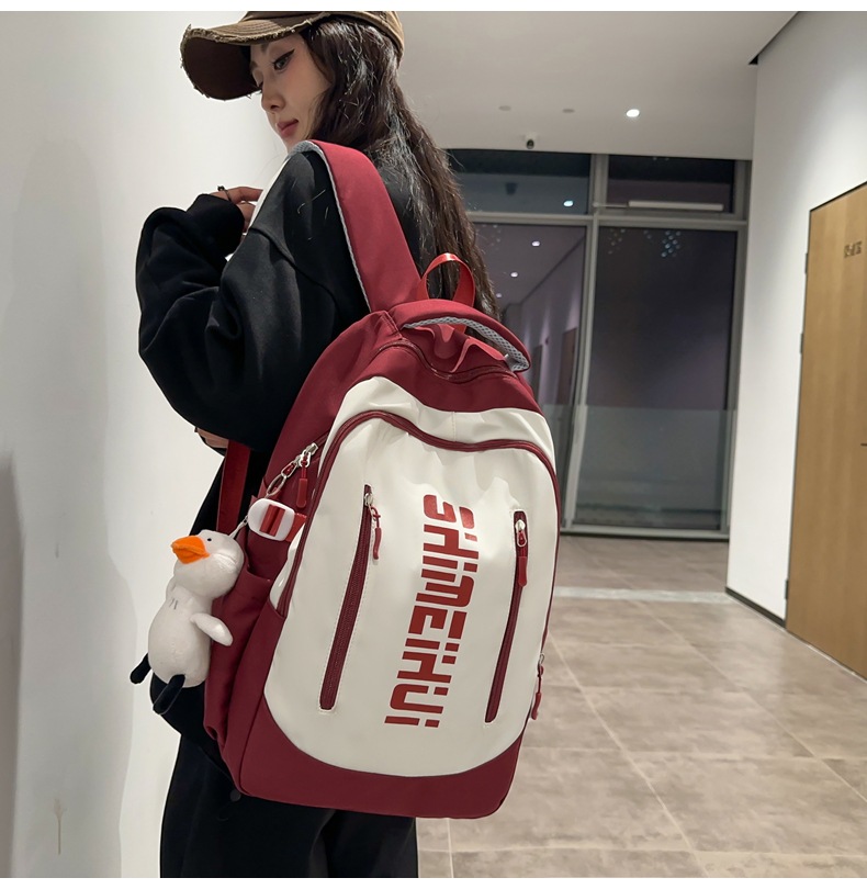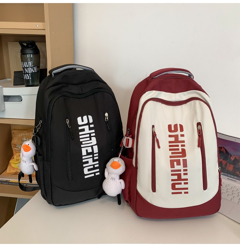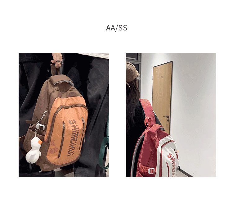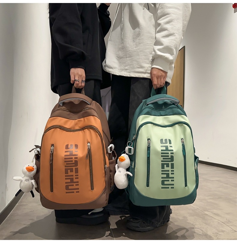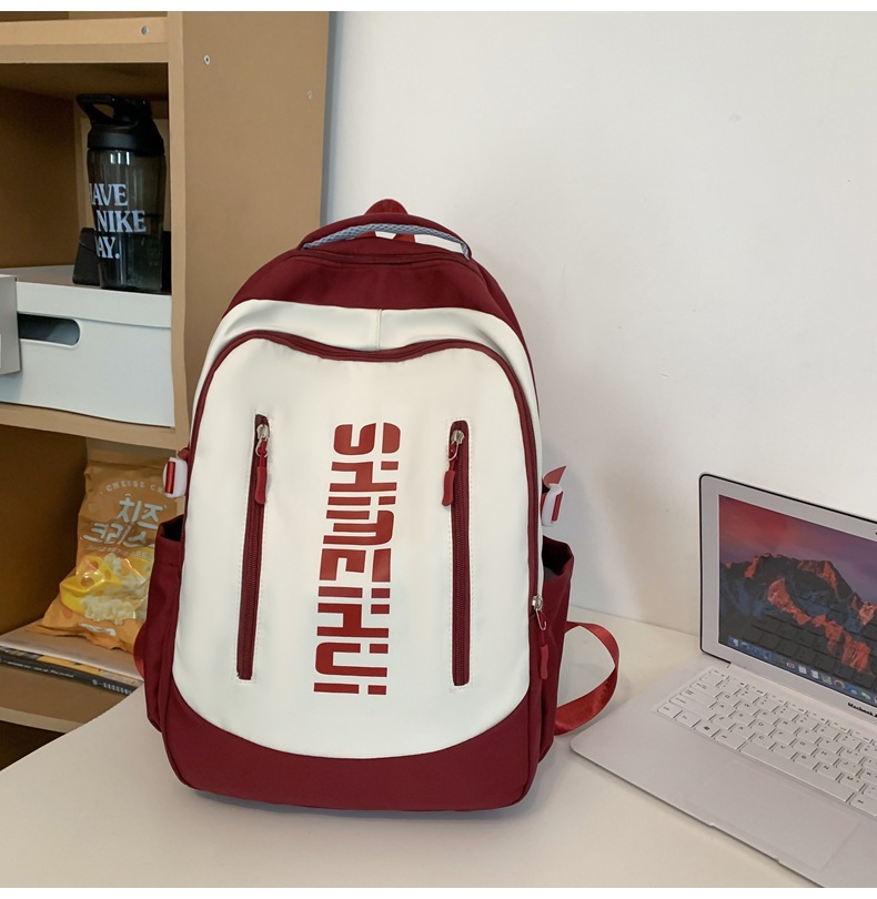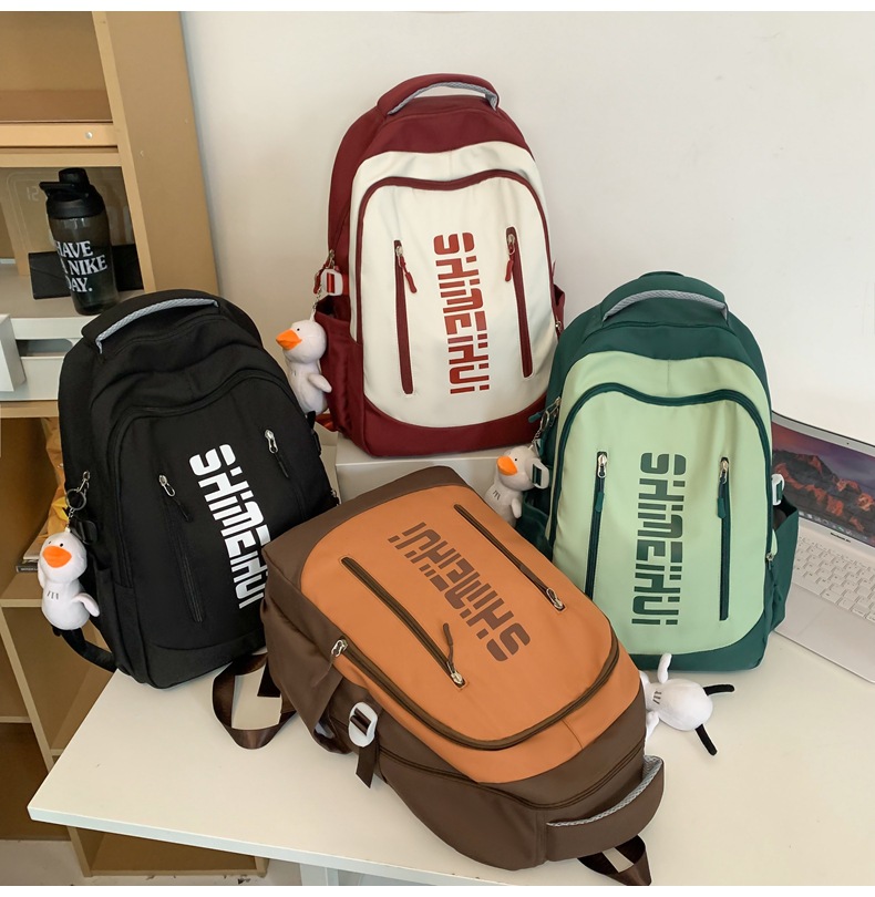 일본 하라주쿠 스타일 캐주얼 배낭 새로운 남성과 여성 중학교 학생 캠퍼스 학교 가방 간단한 올 매치 대비 컬러 배낭 패션스토어 가기