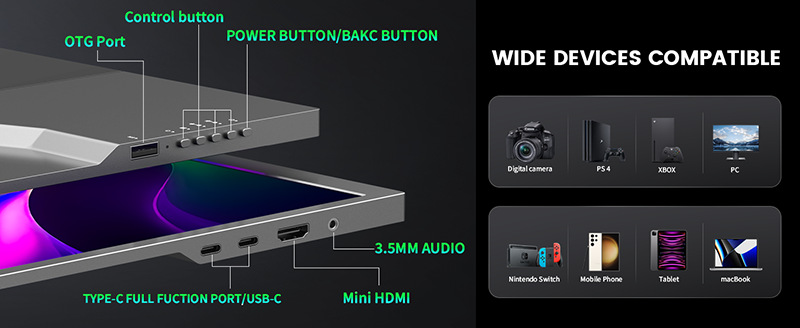 18.5inch 휴대용 모니터 고화질 100hz 노트북 ps5 스위치 확장 휴대용 화면