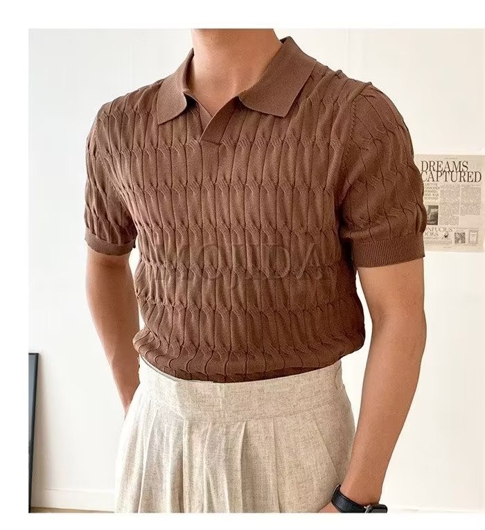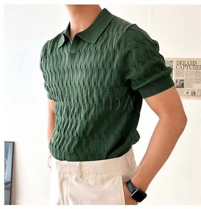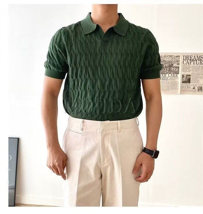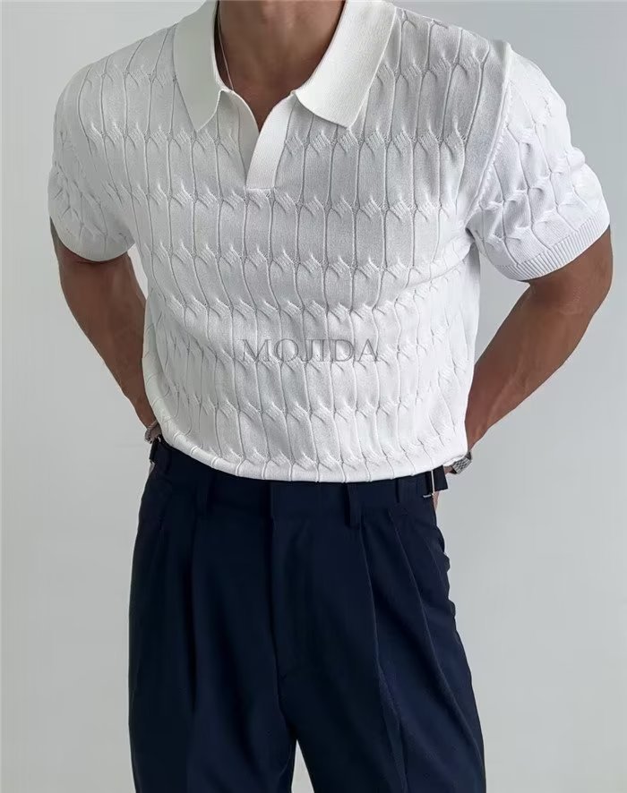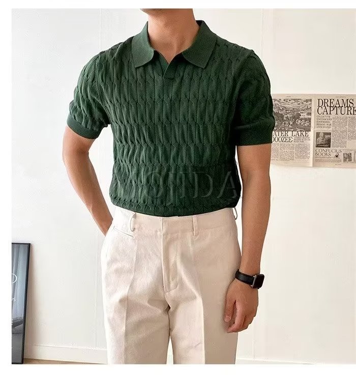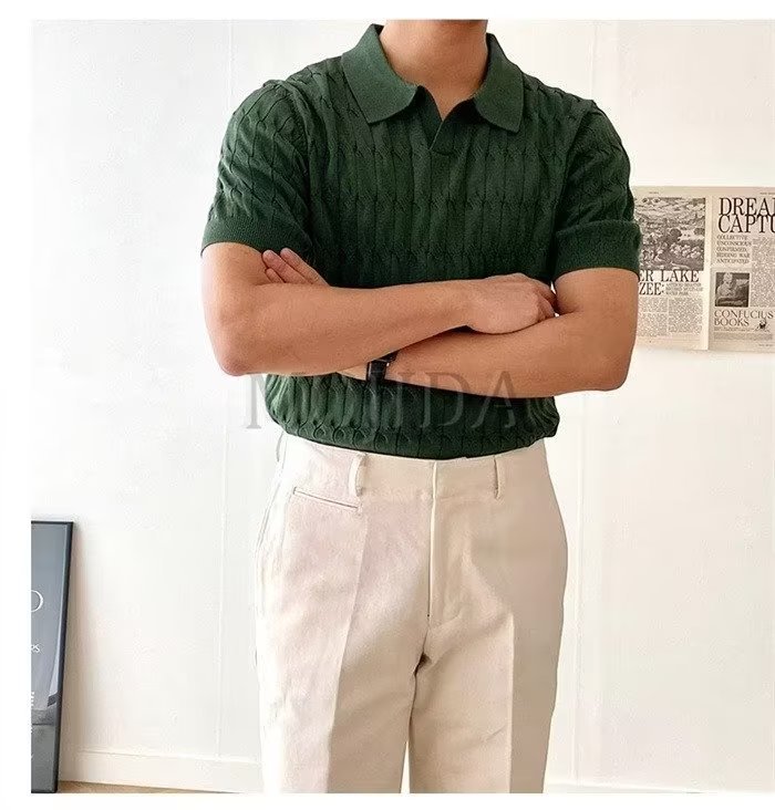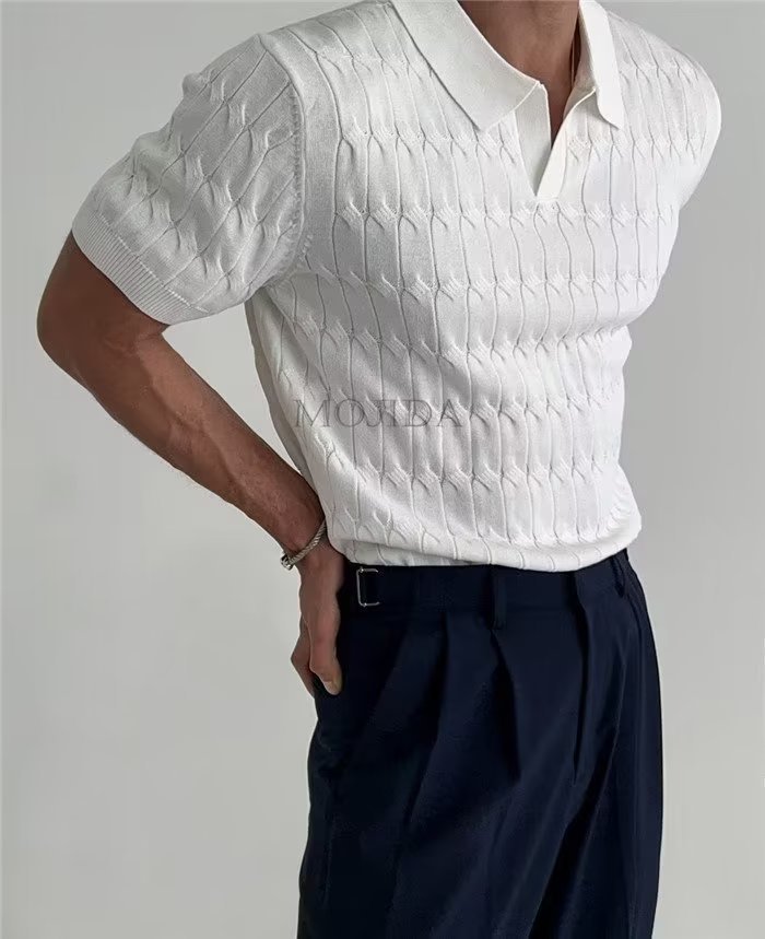 여름 반팔 티셔츠 섹시한 V 넥 니트 남성용 폴로 셔츠 스트레치 슬림 핏 Lel 트렌디 비즈니스 니트 반팔 셔츠스토어 가기