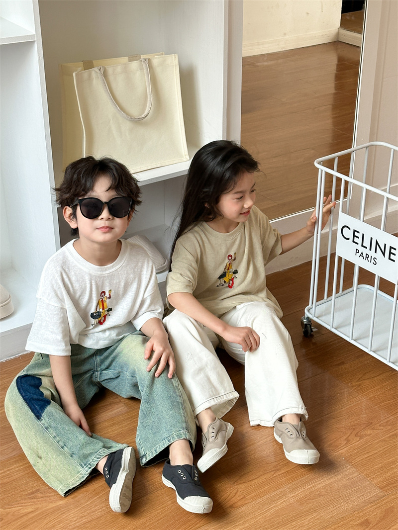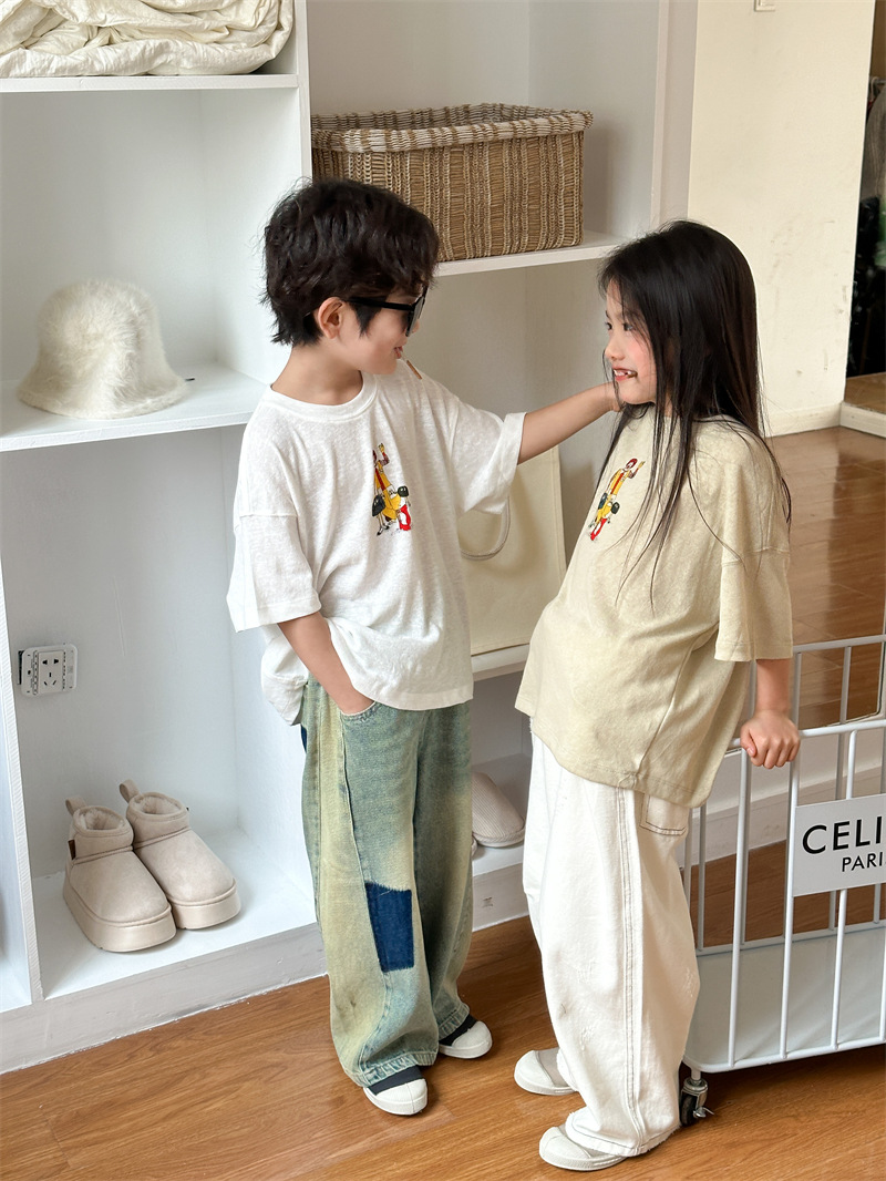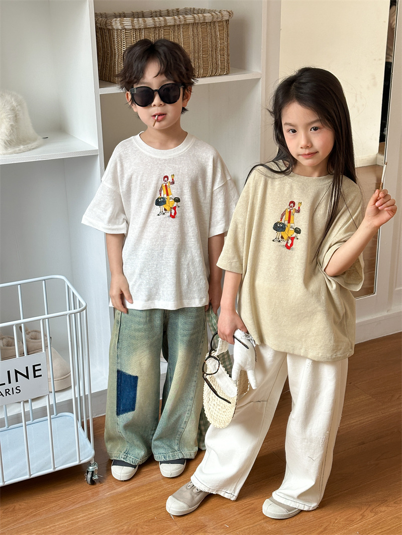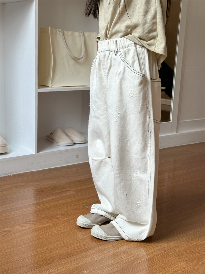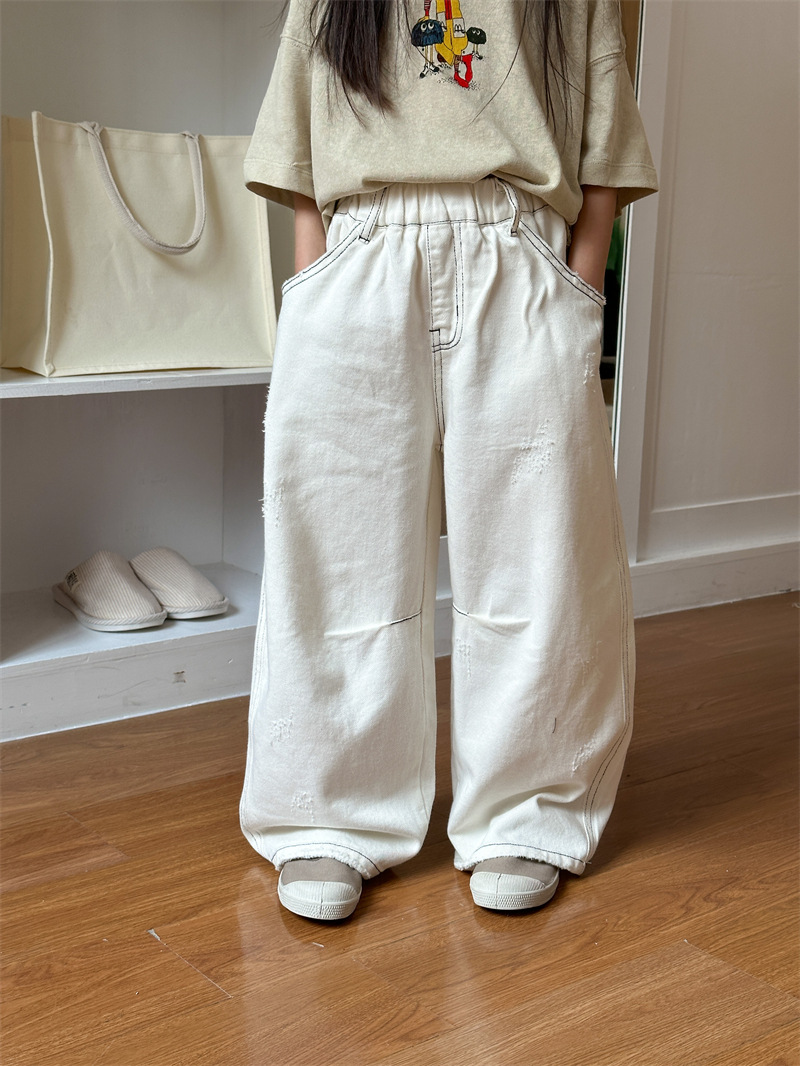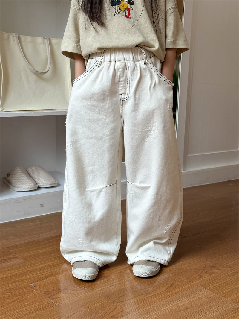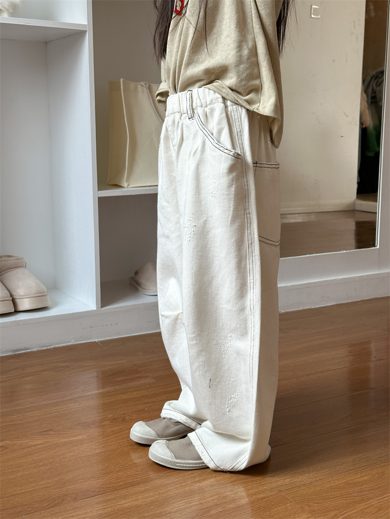 2026년 봄 신상품 한국 스타일 아동 캐주얼 바지 남아용 밝은 색상의 라인 장식 스트레이트 팬츠 다용도 긴바지 도매스토어 가기