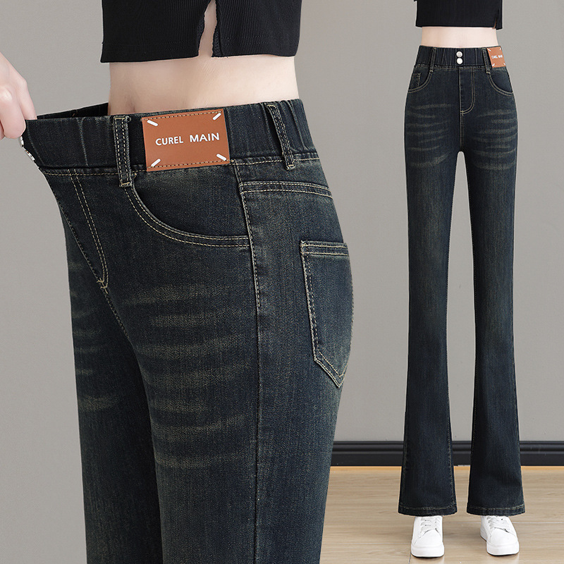벨벳 안감 두꺼운 여성용 청바지 2025 가을 겨울 여성용 하이웨이스트 부츠컷 팬츠 신축성 있는 밴딩 허리 말굽형 플레어 팬츠스토어 가기