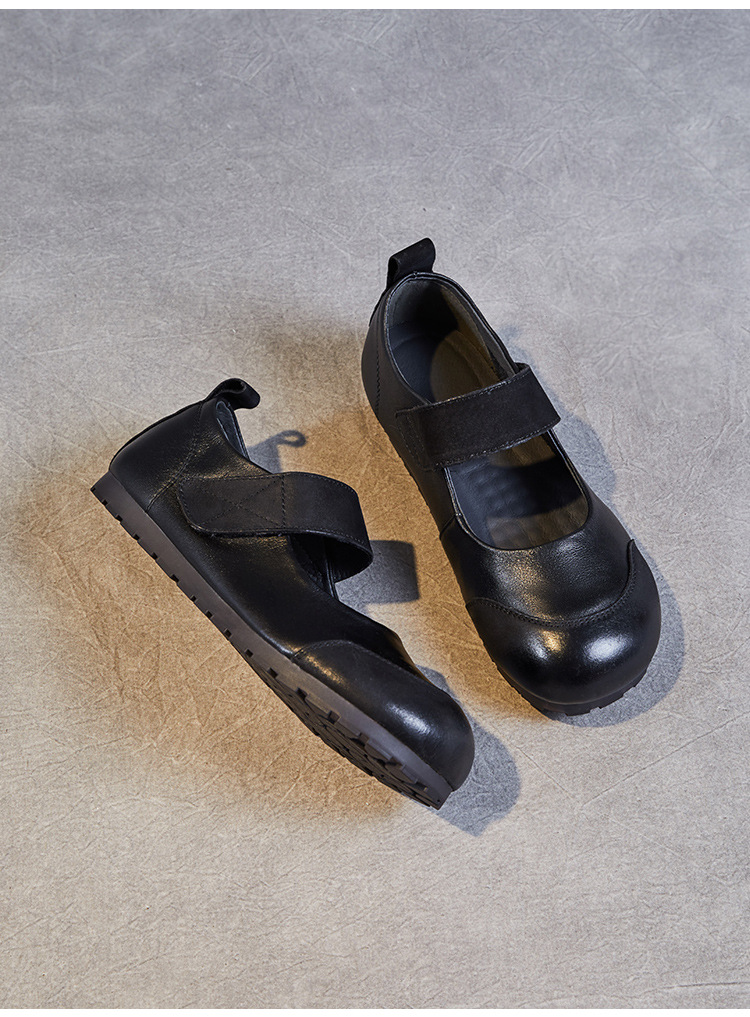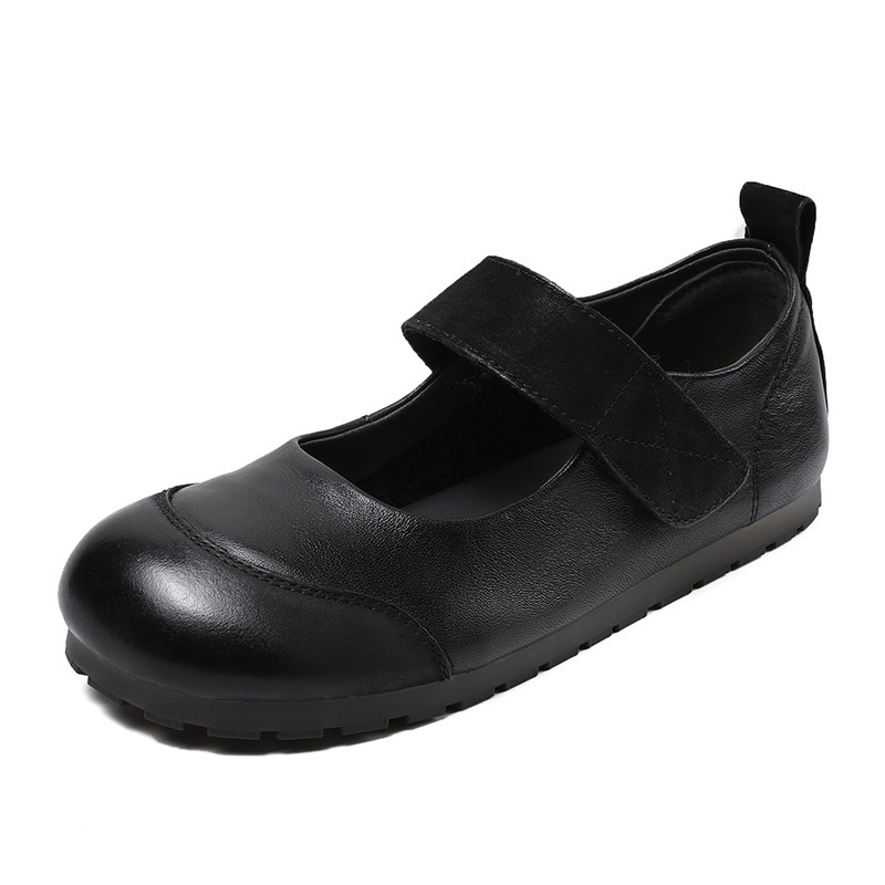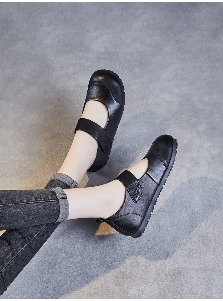 첫 번째 레이어 소 가죽 부드러운 바닥 메리 제인 가죽 신발 로우 컷 싱글 레이어 신발 이브닝 신발 여성 플랫 벨크로 수제 엄마 신발