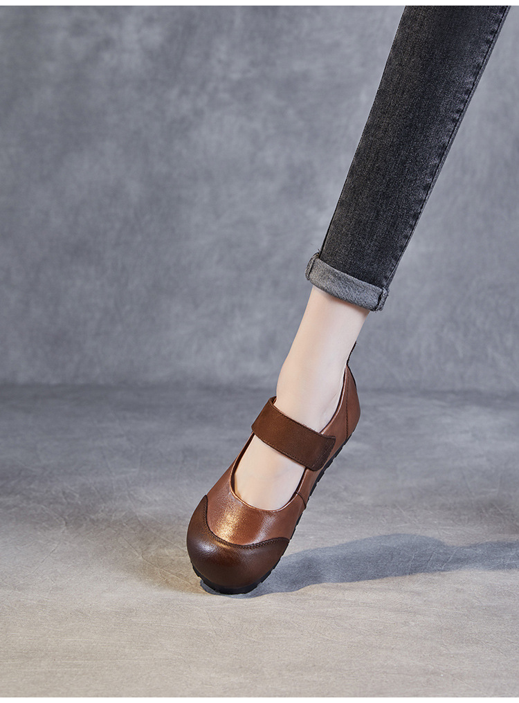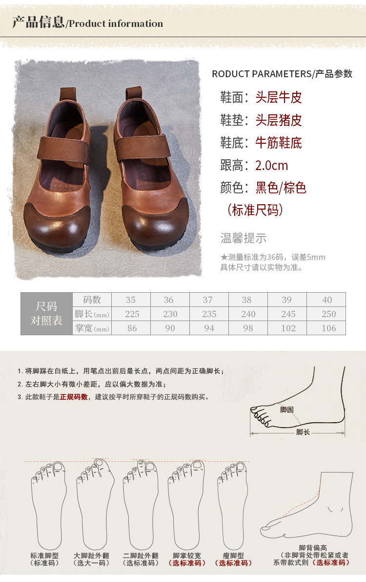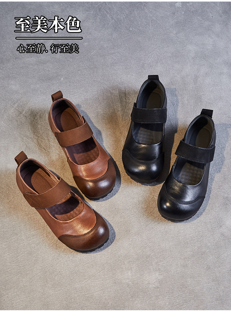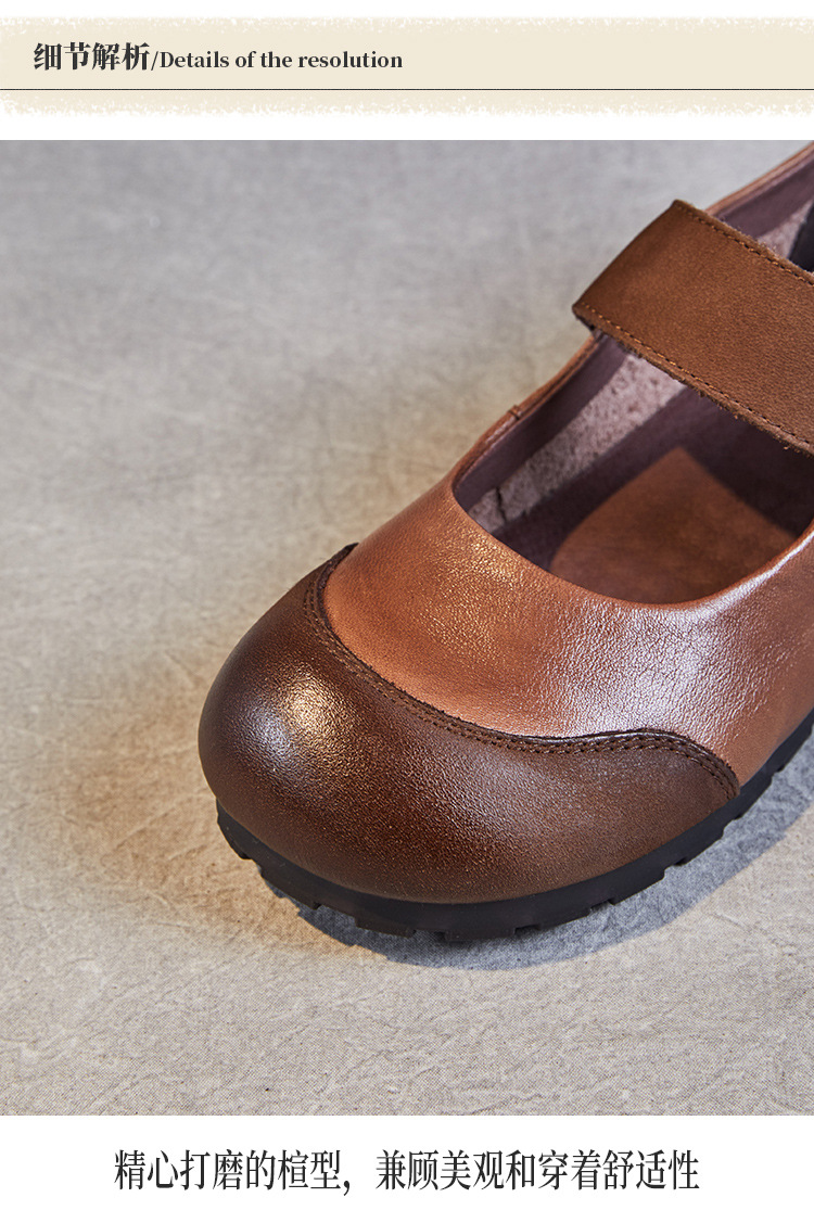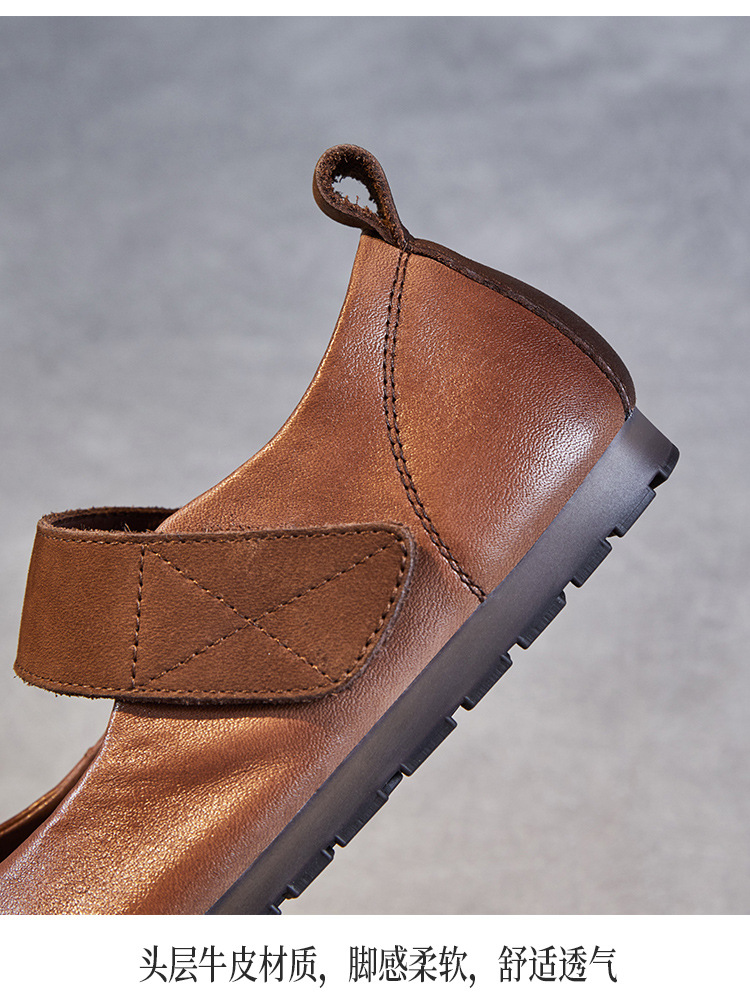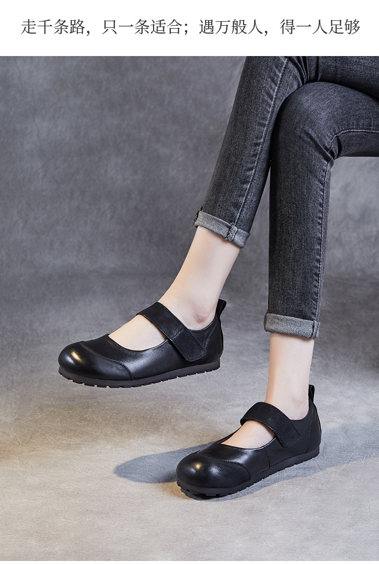 첫 번째 레이어 소 가죽 부드러운 바닥 메리 제인 가죽 신발 로우 컷 싱글 레이어 신발 이브닝 신발 여성 플랫 벨크로 수제 엄마 신발스토어 가기