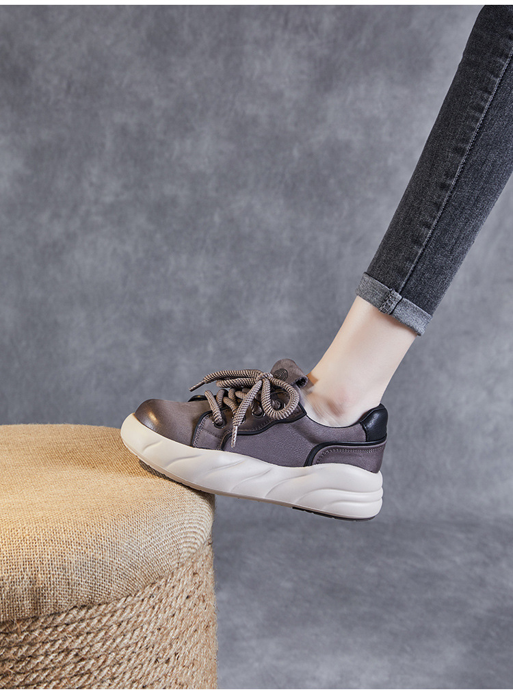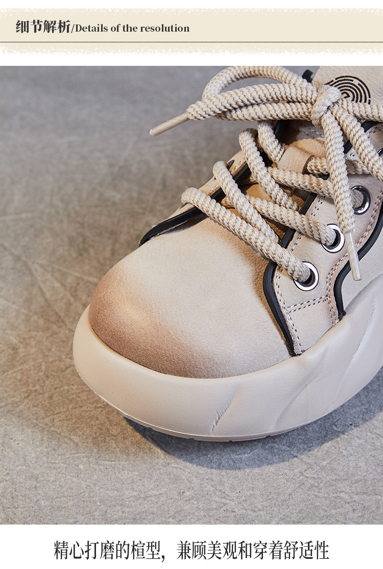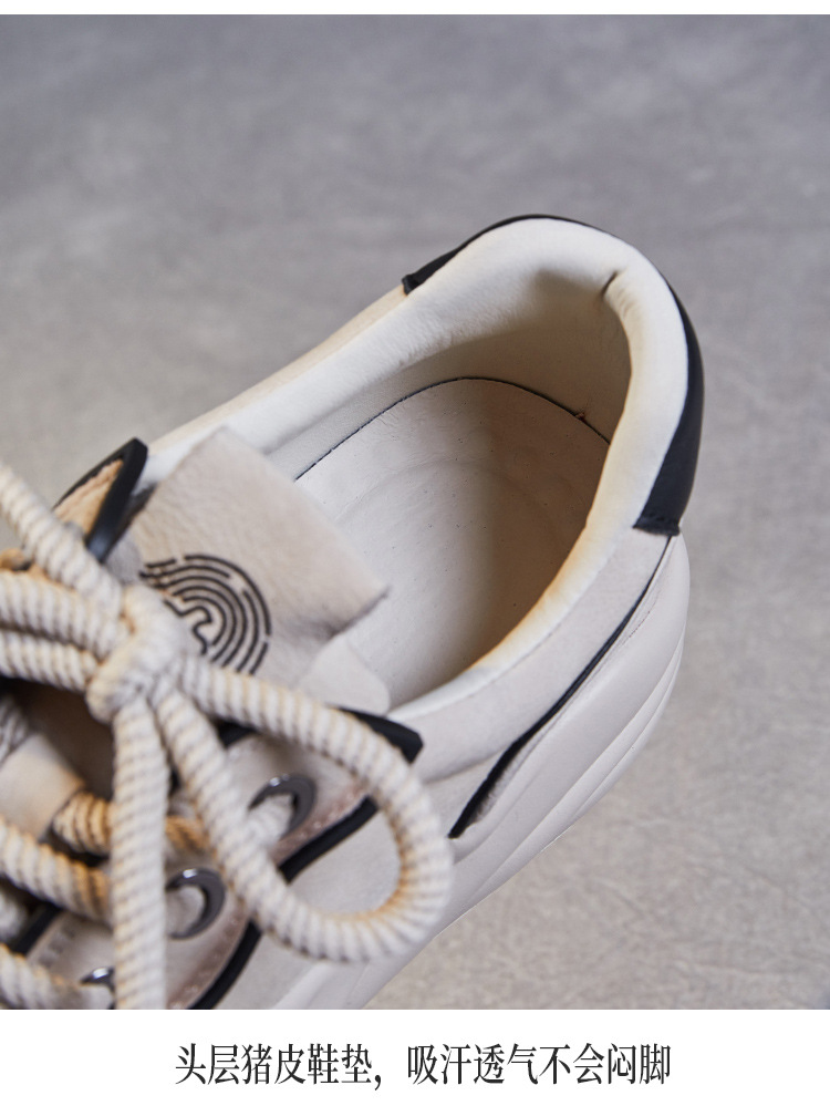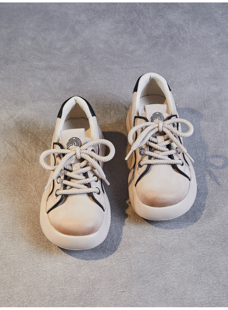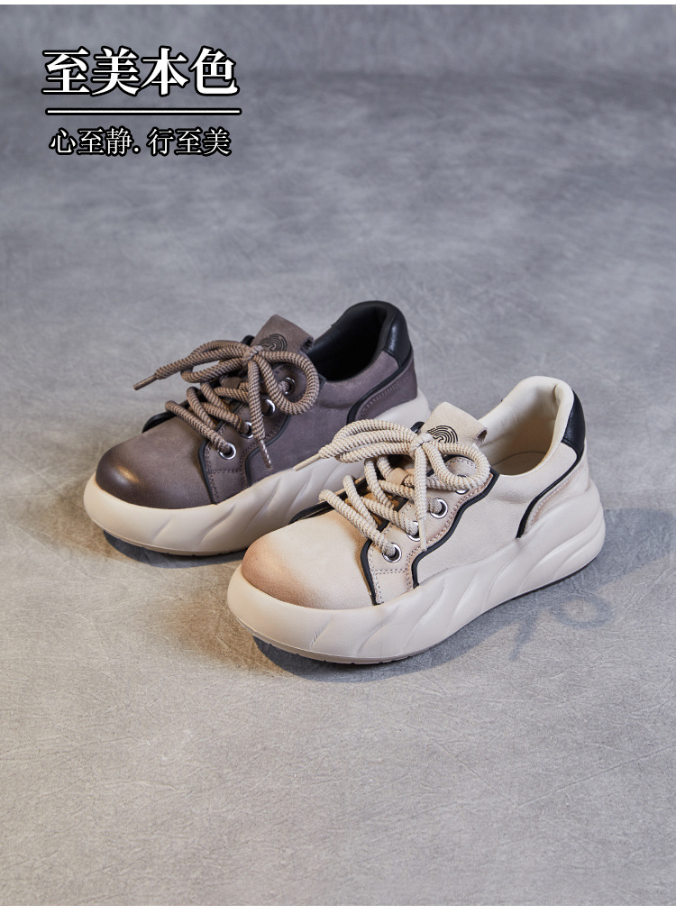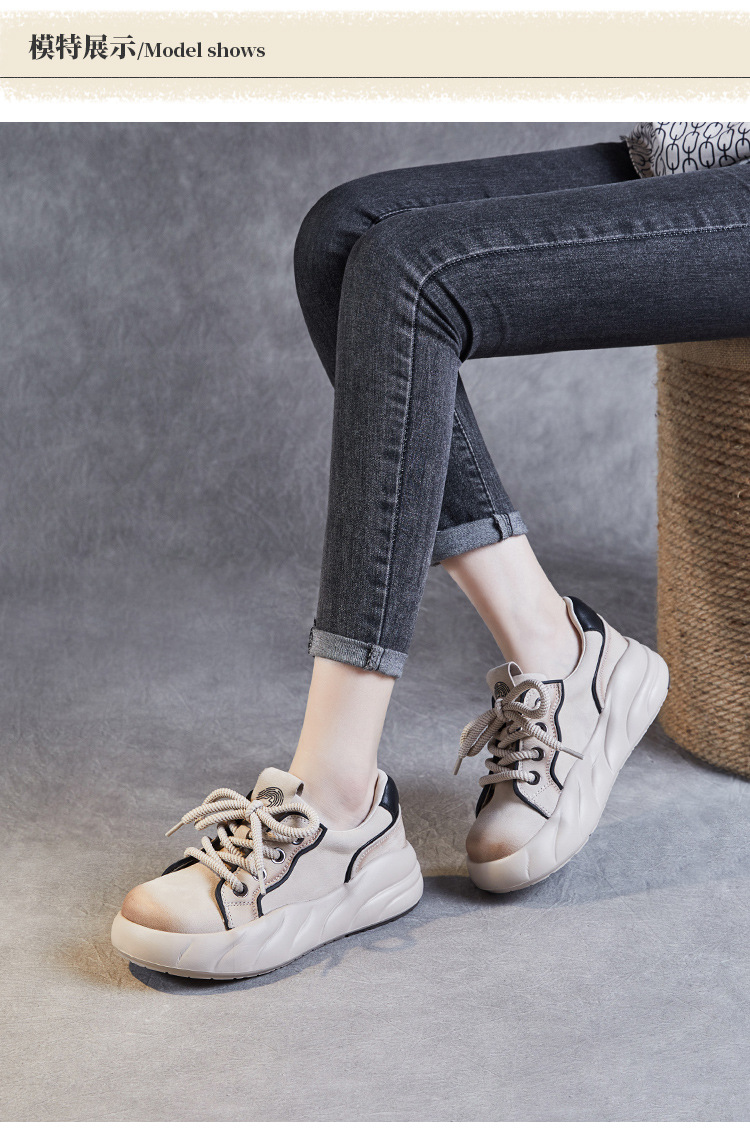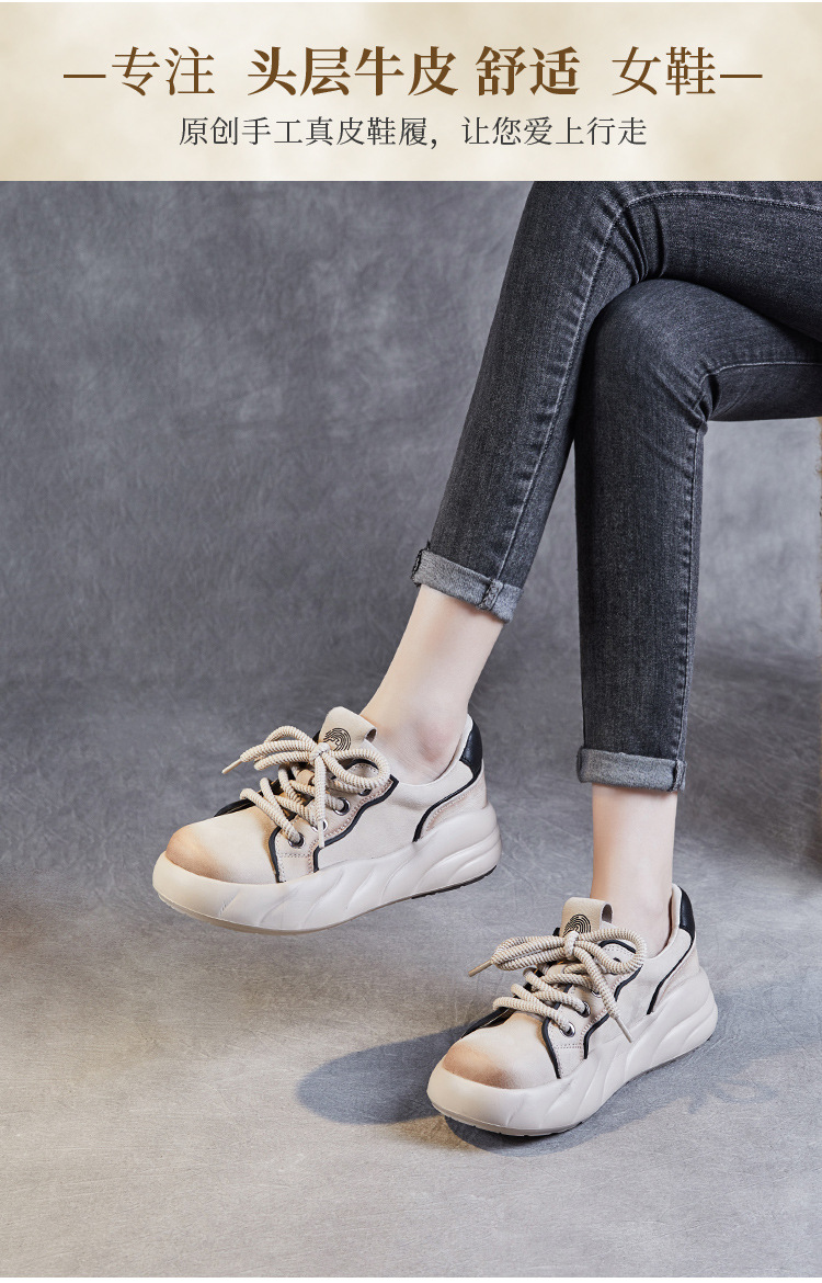 2024 봄 새로운 첫 번째 레이어 소 가죽 빈티지 수제 신발 올 매치 두꺼운 바닥 라운드 토 레이스 업 스포츠 캐주얼 정품 가죽 여성 신발스토어 가기
