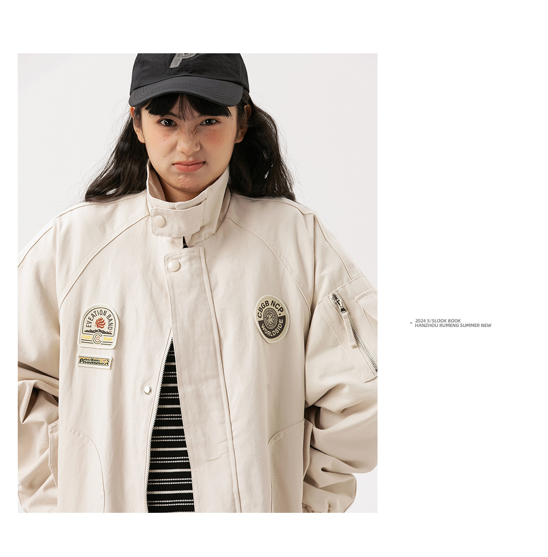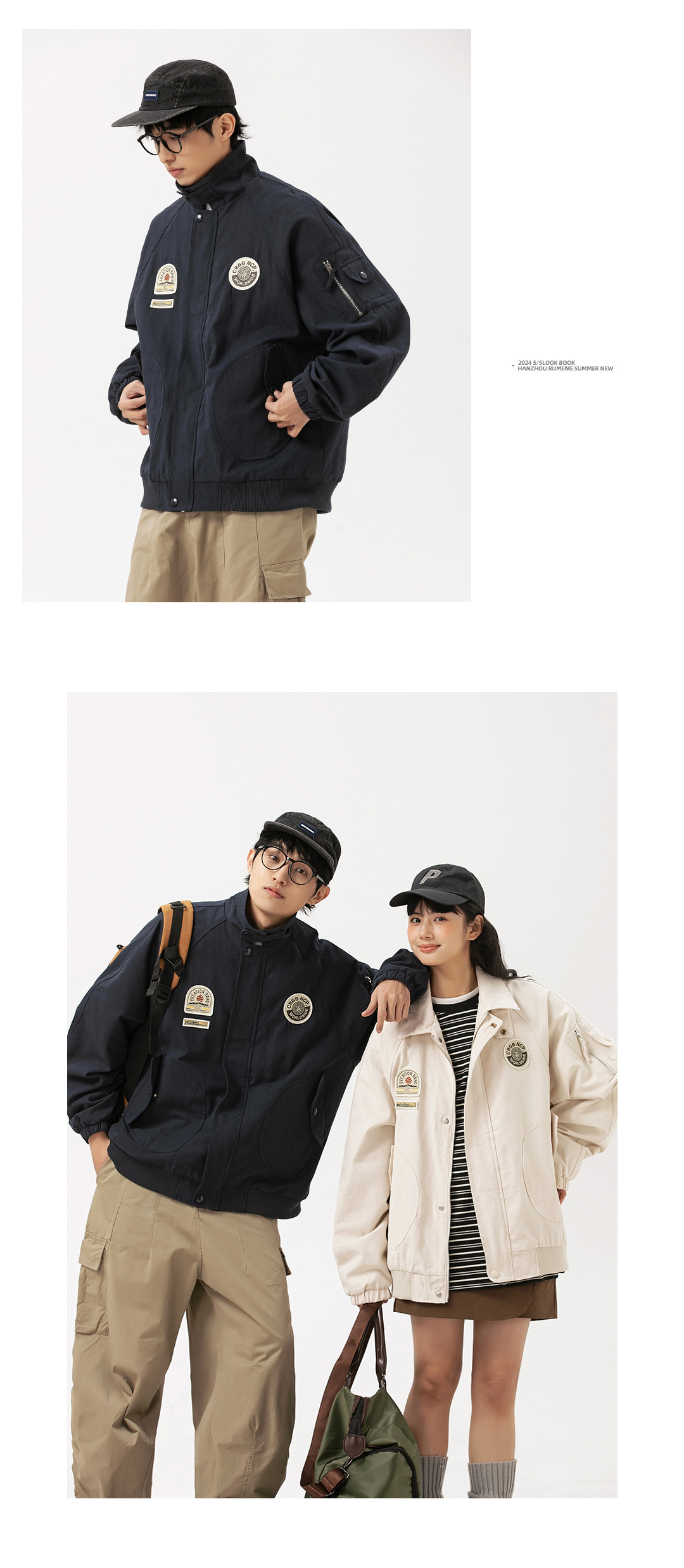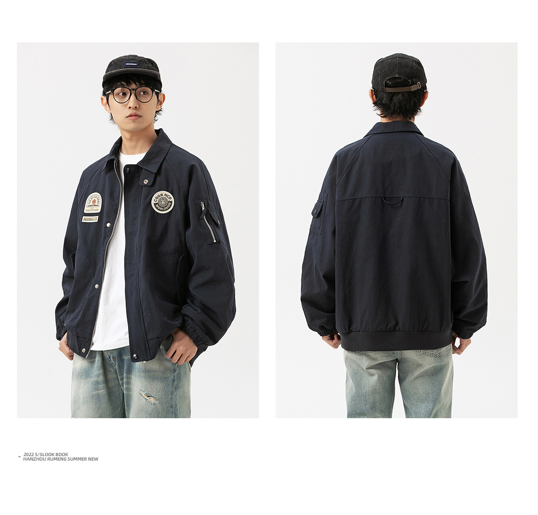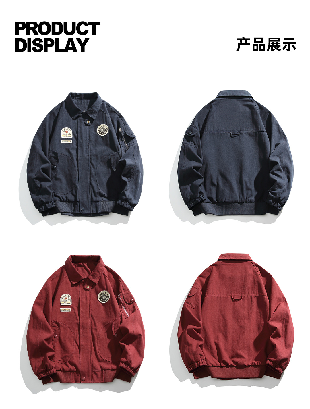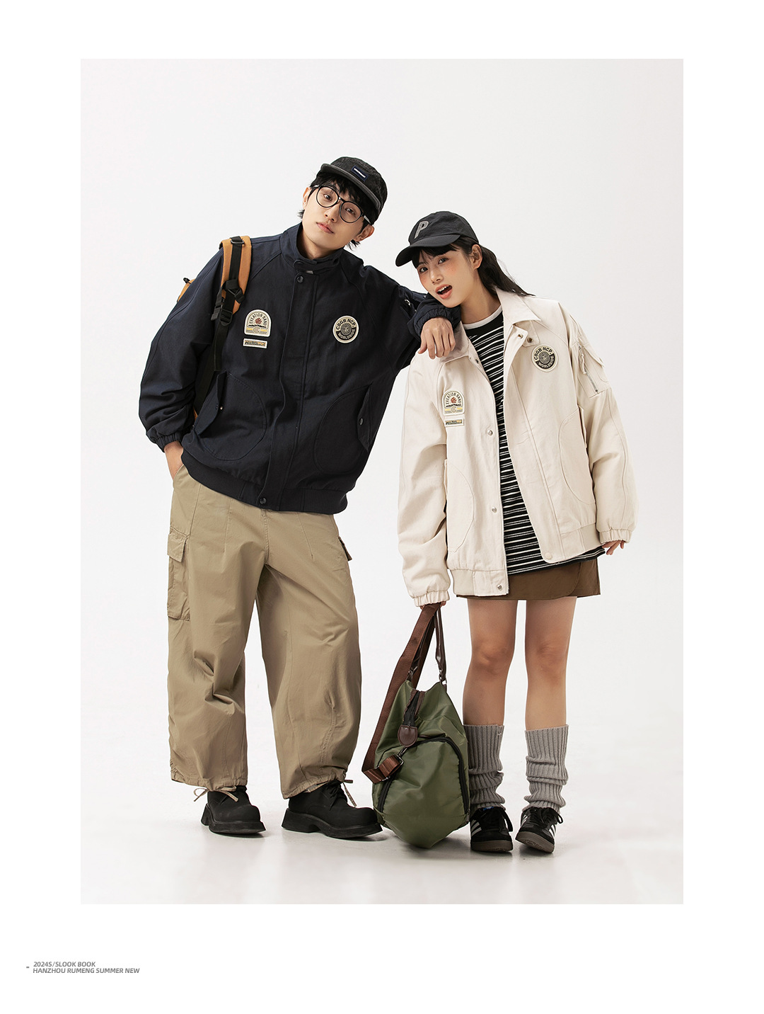 Ru Meng 아메리칸 스타일 레트로 배지 옷깃 에비에이터 재킷 남자 봄 캐주얼 커플 작업복 야구 세트 재킷스토어 가기