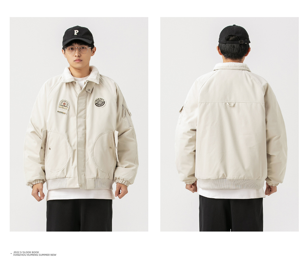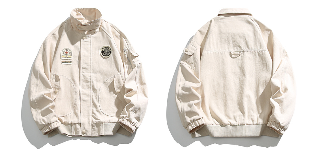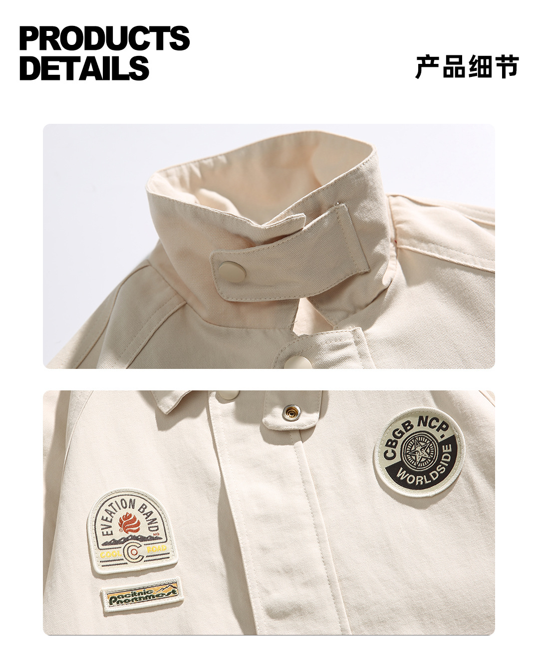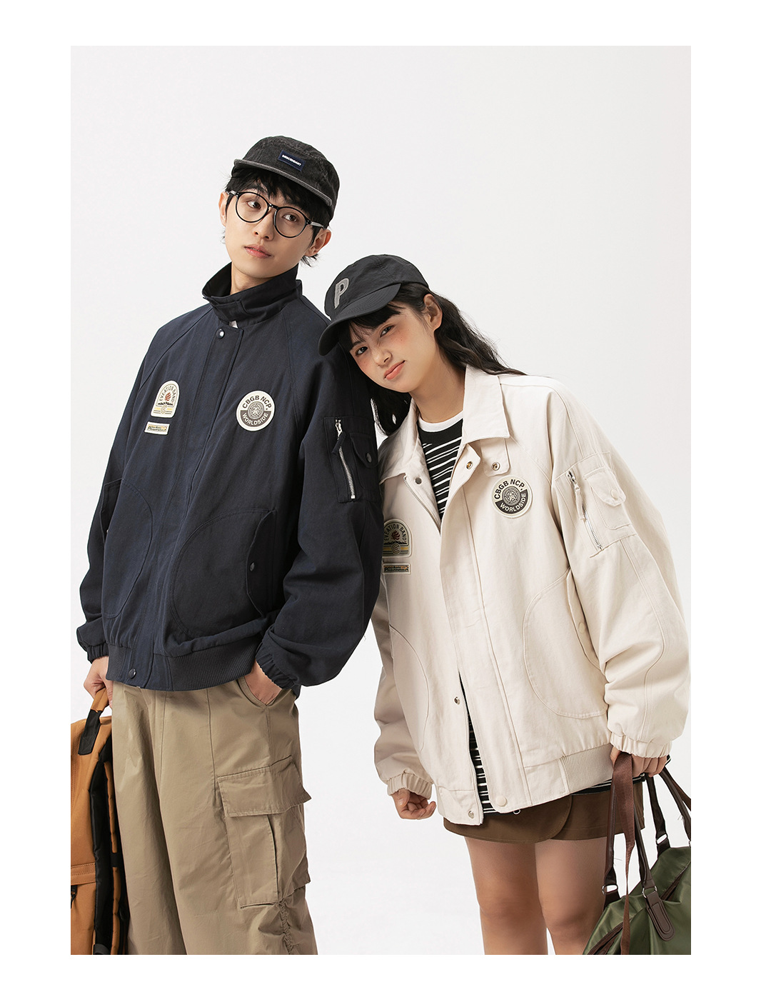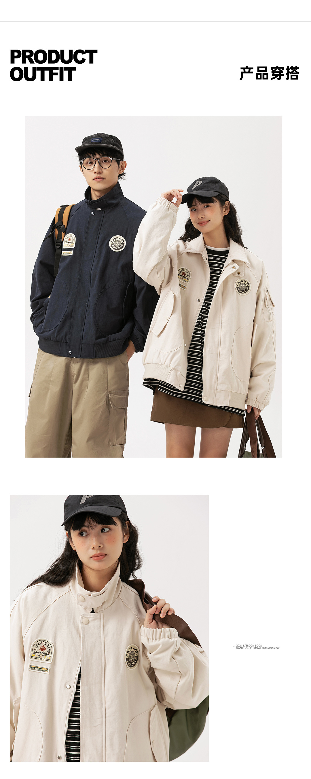 Ru Meng 아메리칸 스타일 레트로 배지 옷깃 에비에이터 재킷 남자 봄 캐주얼 커플 작업복 야구 세트 재킷스토어 가기