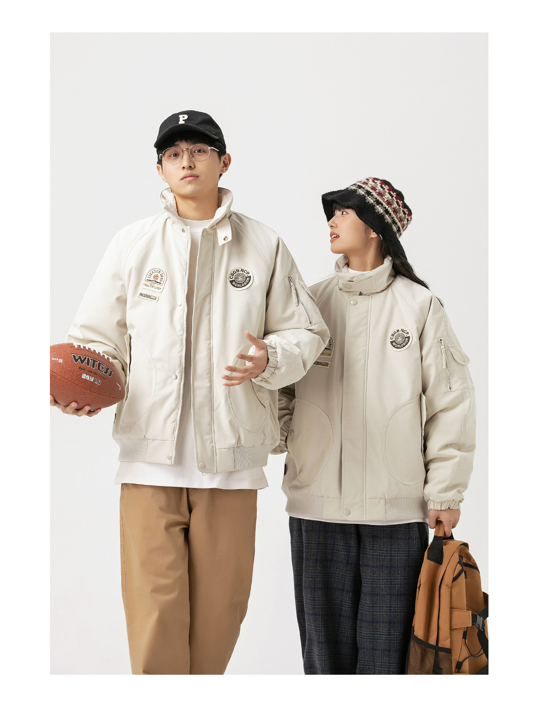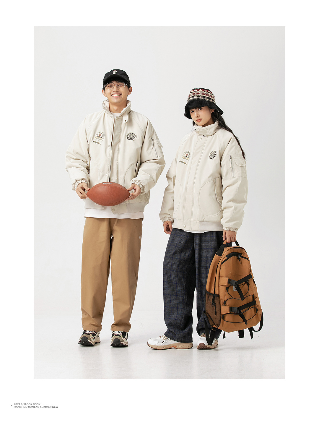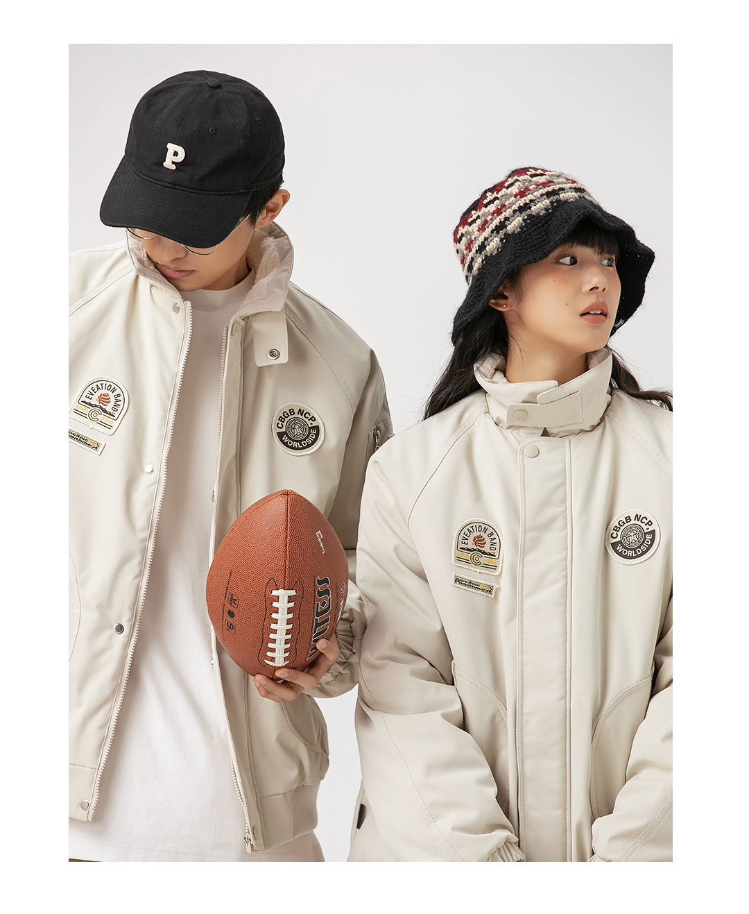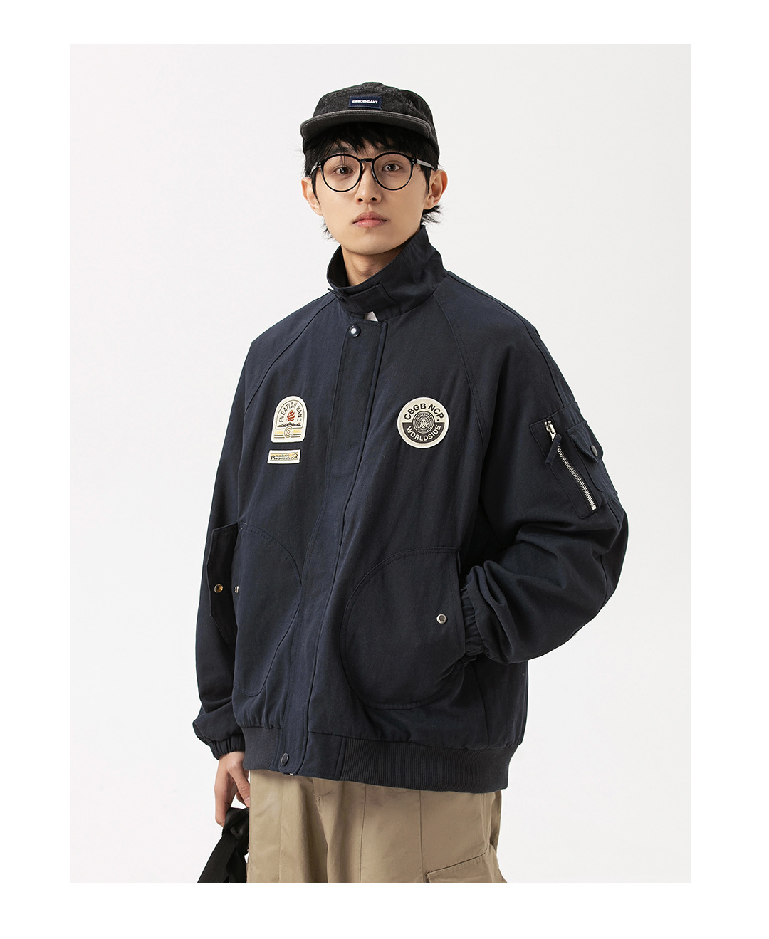Ru Meng 아메리칸 스타일 레트로 배지 옷깃 에비에이터 재킷 남자 봄 캐주얼 커플 작업복 야구 세트 재킷스토어 가기