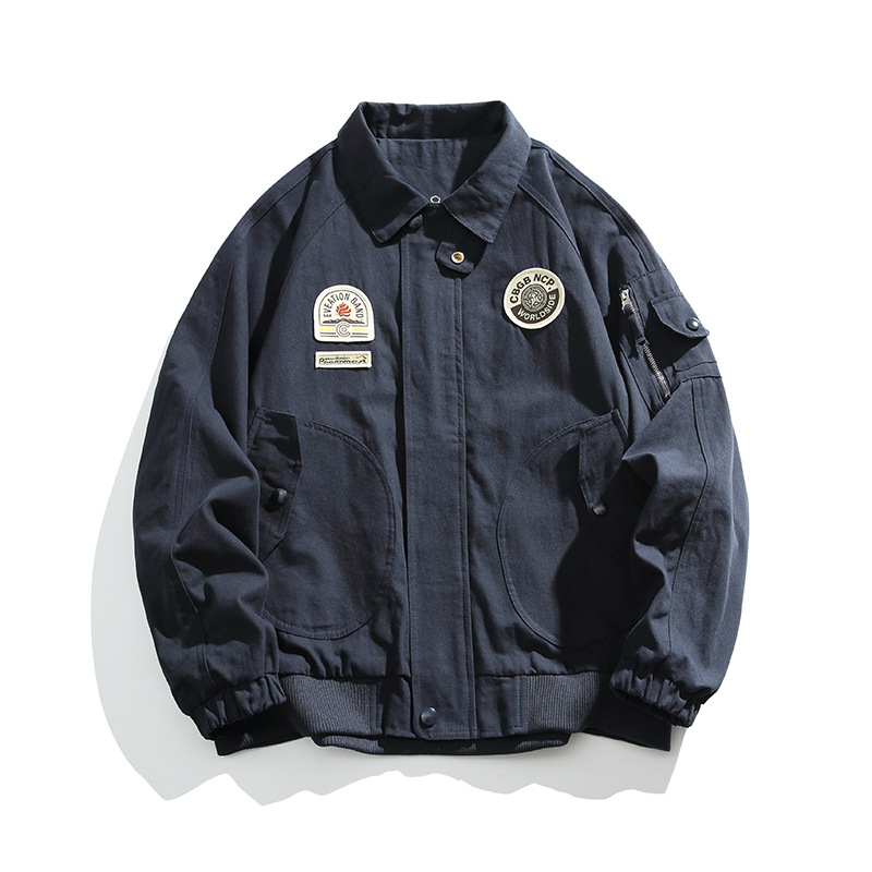 Ru Meng 아메리칸 스타일 레트로 배지 옷깃 에비에이터 재킷 남자 봄 캐주얼 커플 작업복 야구 세트 재킷