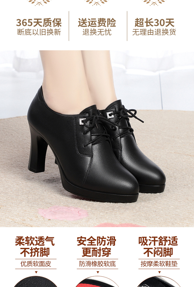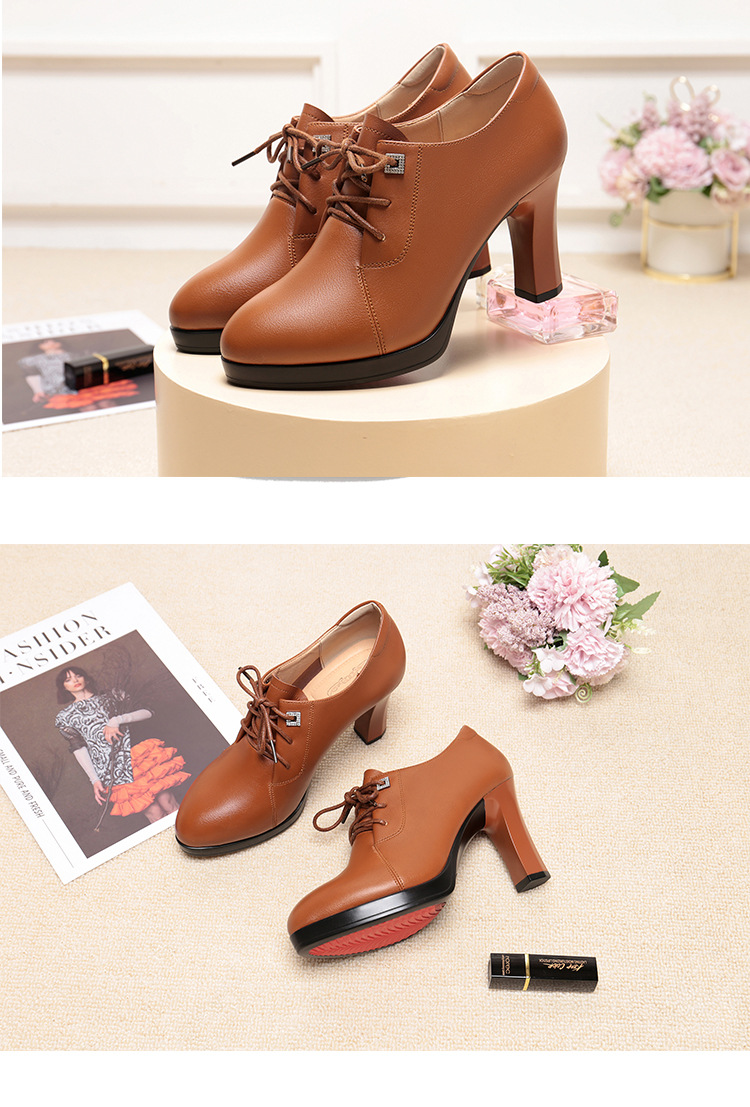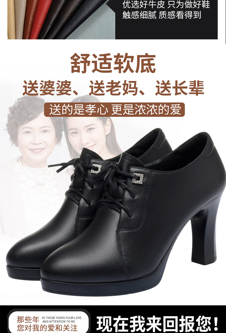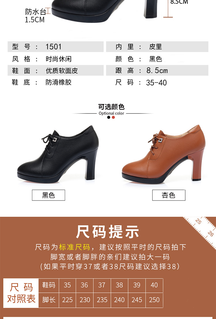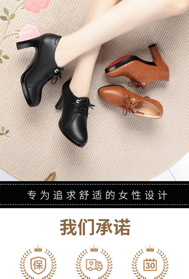 새로운 긴 스탠딩 하이힐 여성 레이스 업 미끄럼 방지 높이 증가 부드러운 가죽 우아한 방수 플랫폼 봄 여성 싱글 레이어 가죽 신발스토어 가기