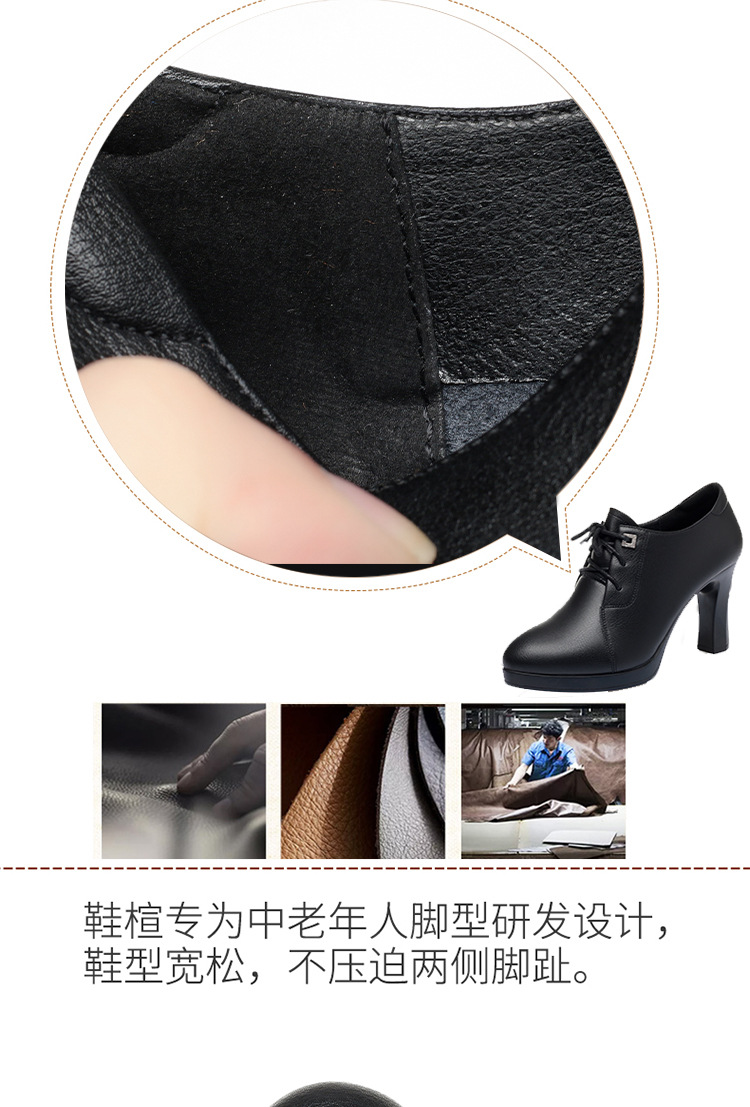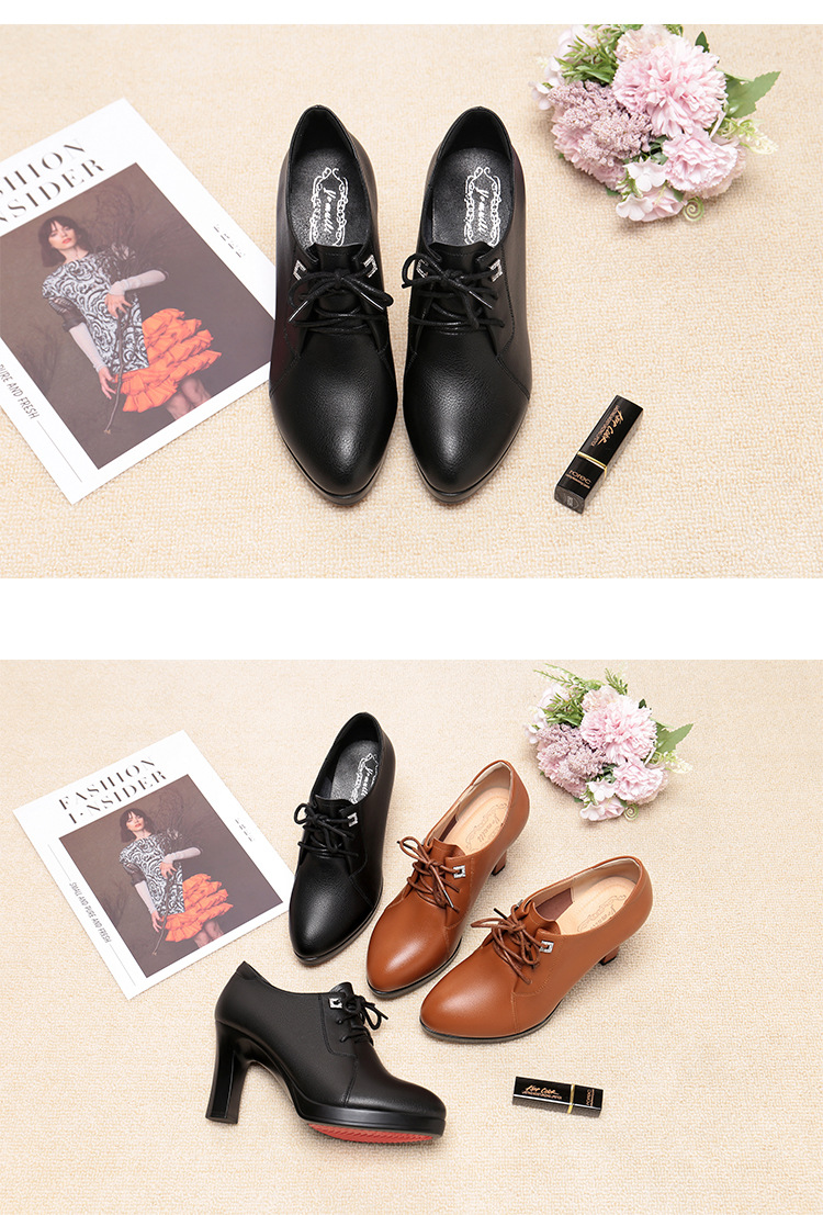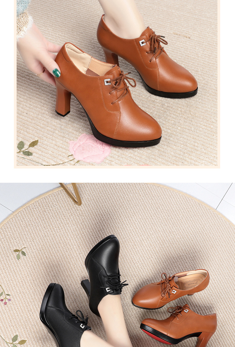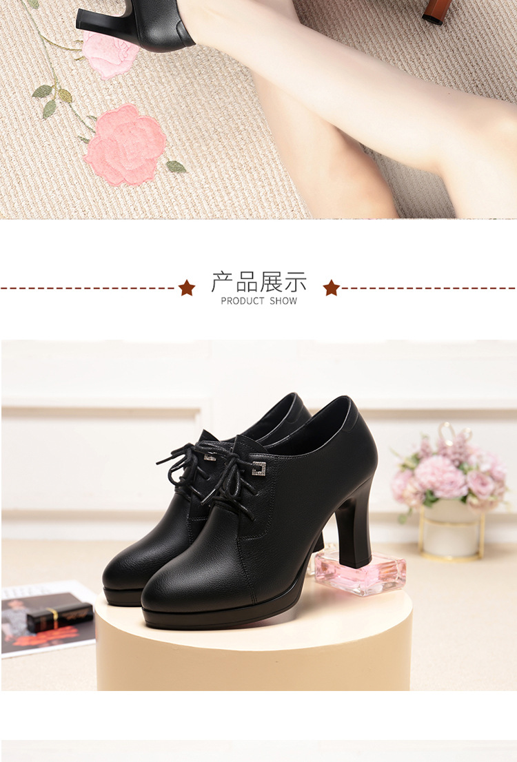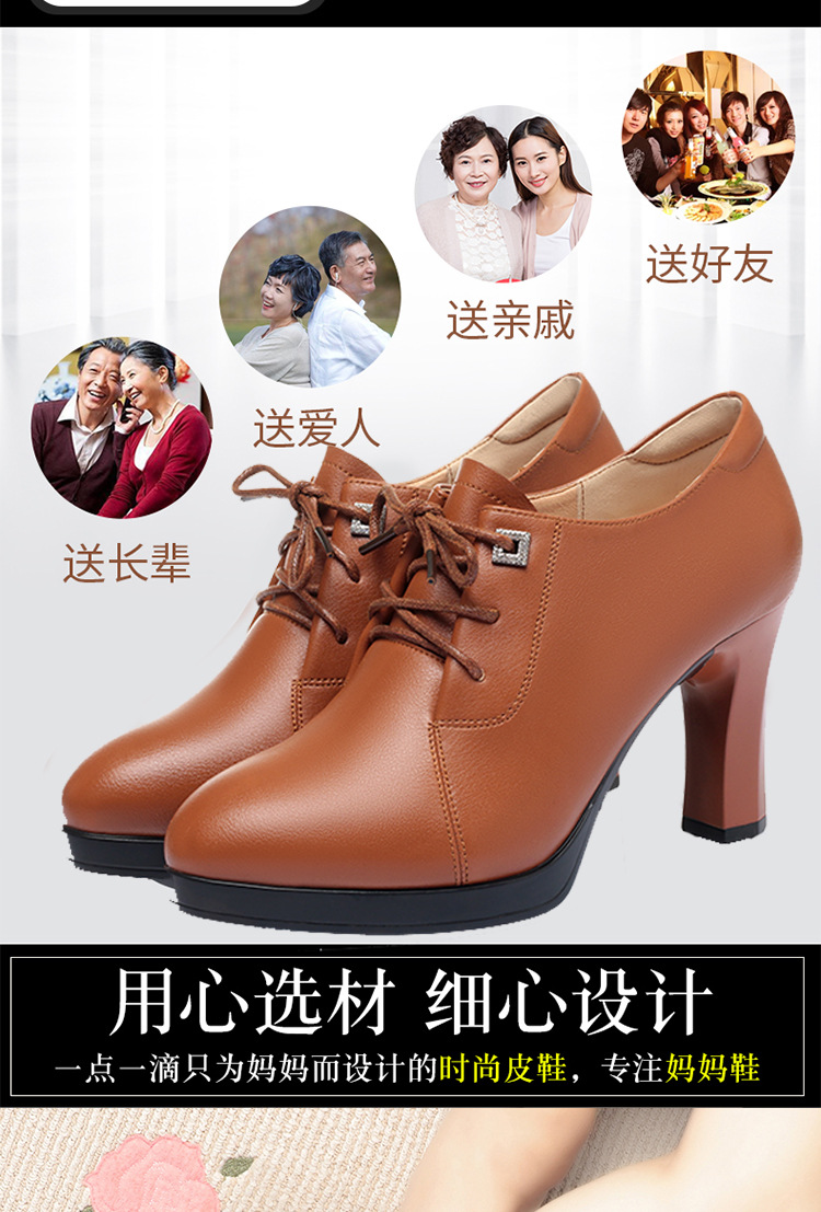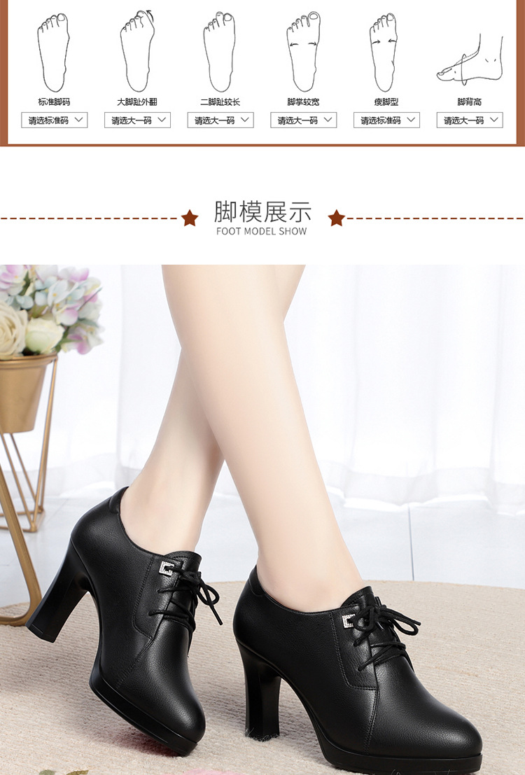 새로운 긴 스탠딩 하이힐 여성 레이스 업 미끄럼 방지 높이 증가 부드러운 가죽 우아한 방수 플랫폼 봄 여성 싱글 레이어 가죽 신발스토어 가기