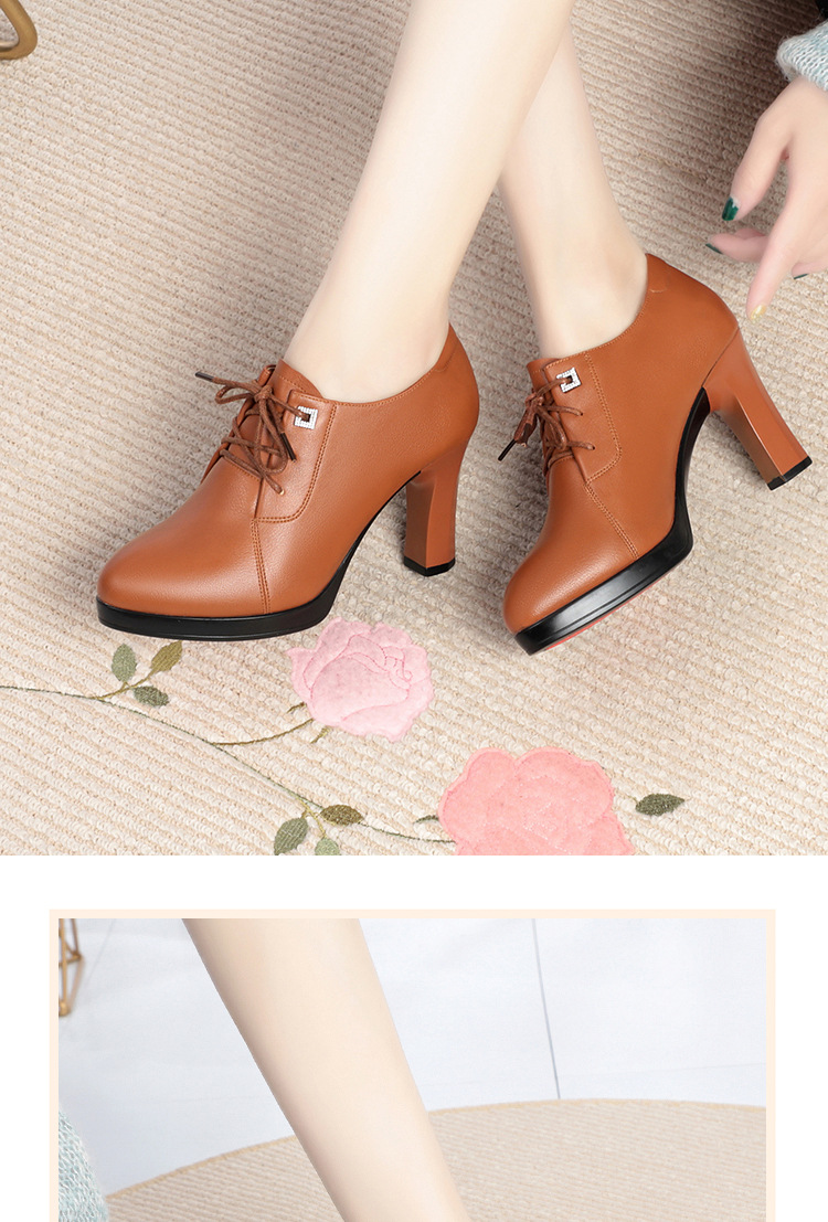 새로운 긴 스탠딩 하이힐 여성 레이스 업 미끄럼 방지 높이 증가 부드러운 가죽 우아한 방수 플랫폼 봄 여성 싱글 레이어 가죽 신발
