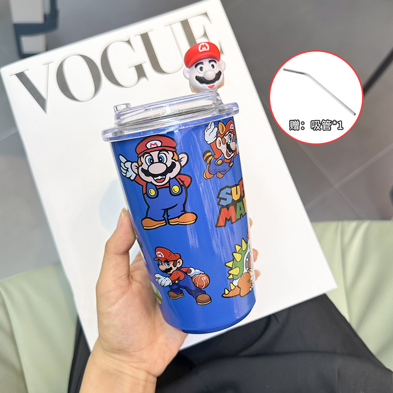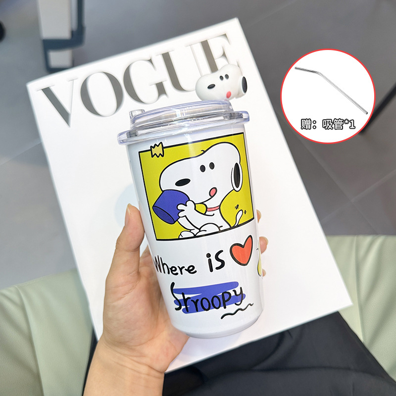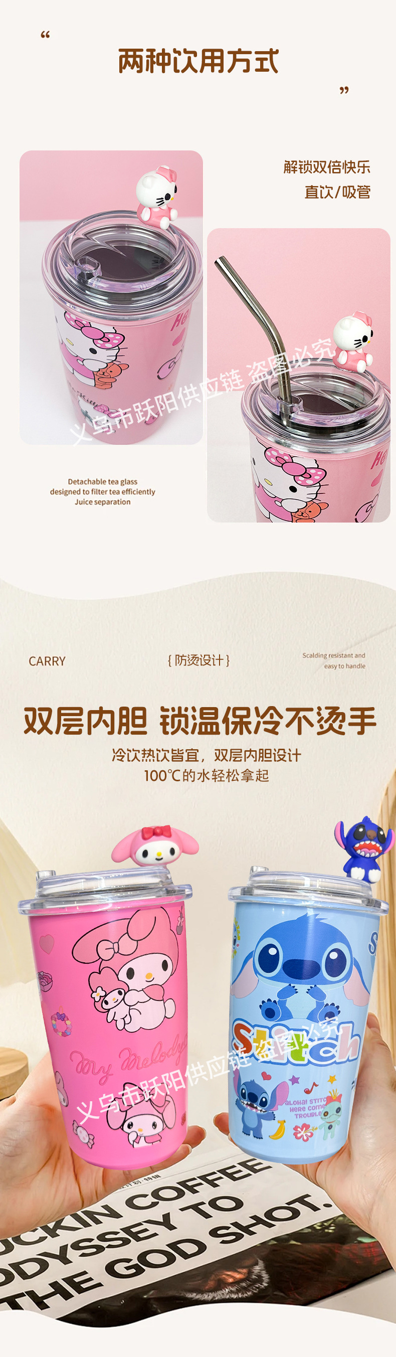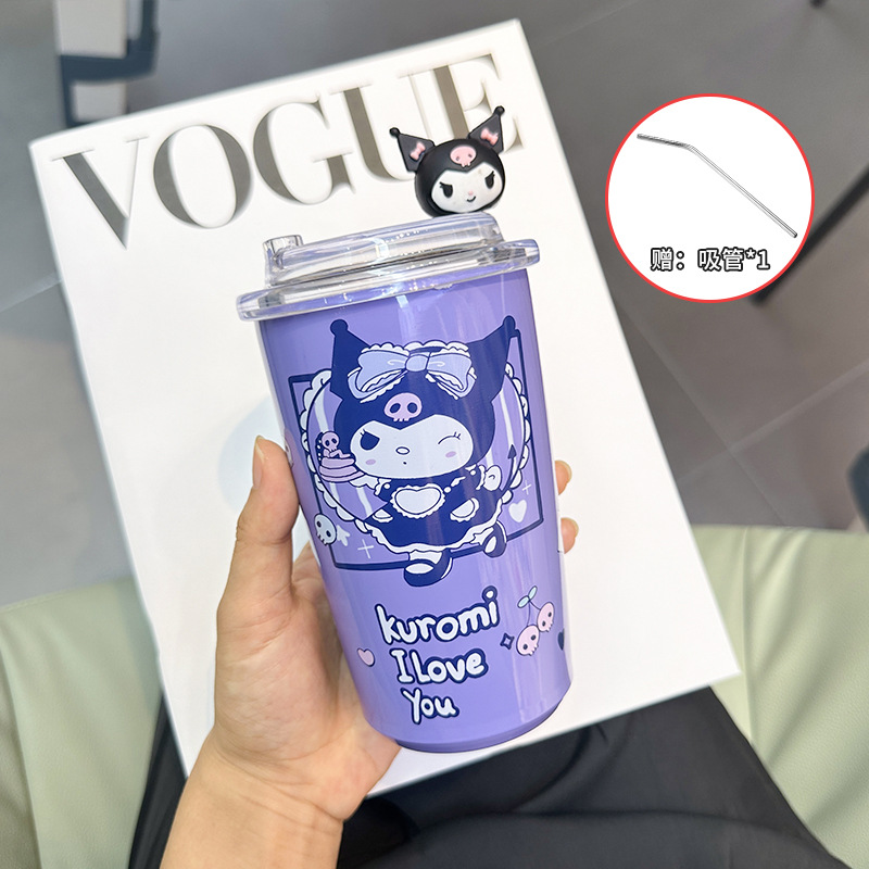 국경 간 Culomi 만화 귀여운 절연 콜드 흡입 컵 사무실 커피 컵 높은 색 가치 물 컵 핸디 컵