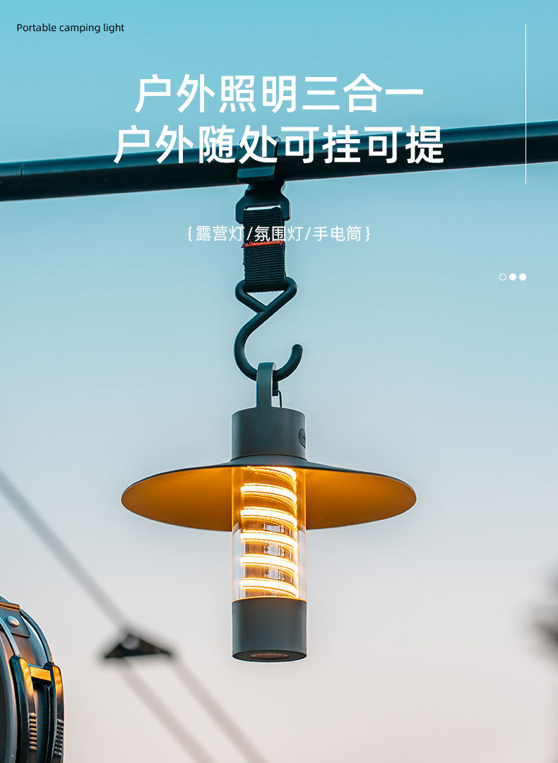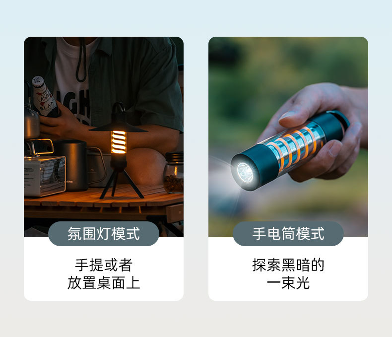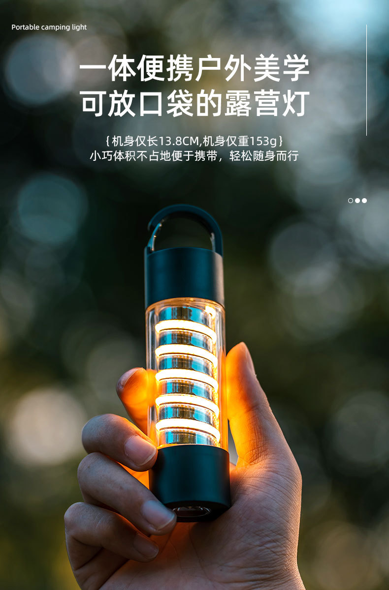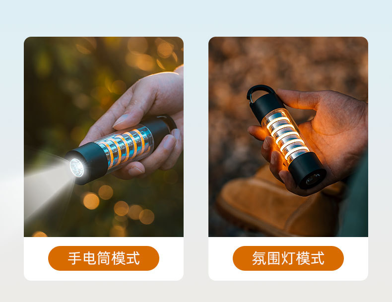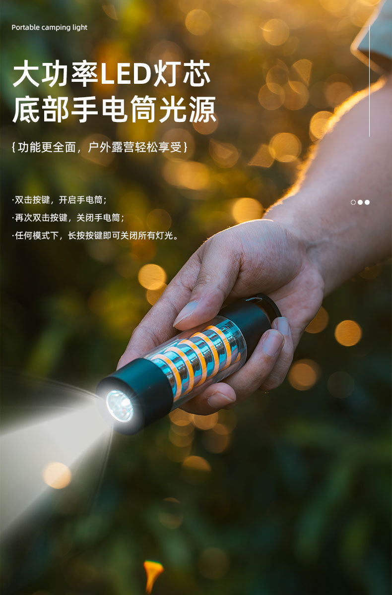 1)露营灯+氛围灯+手电筒三合一;