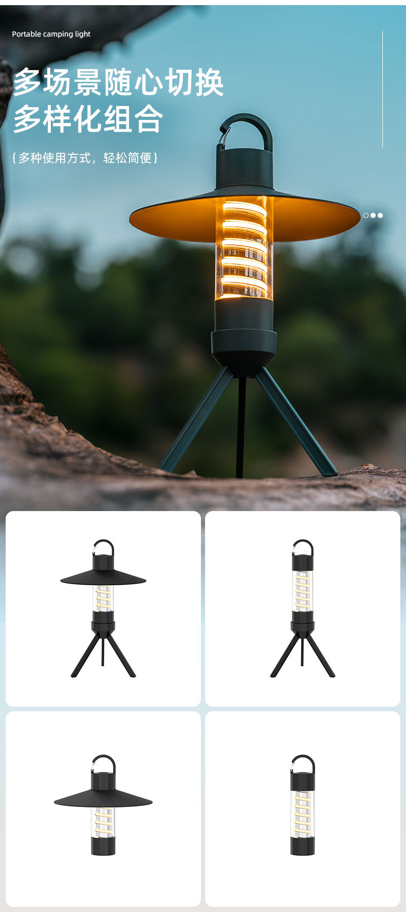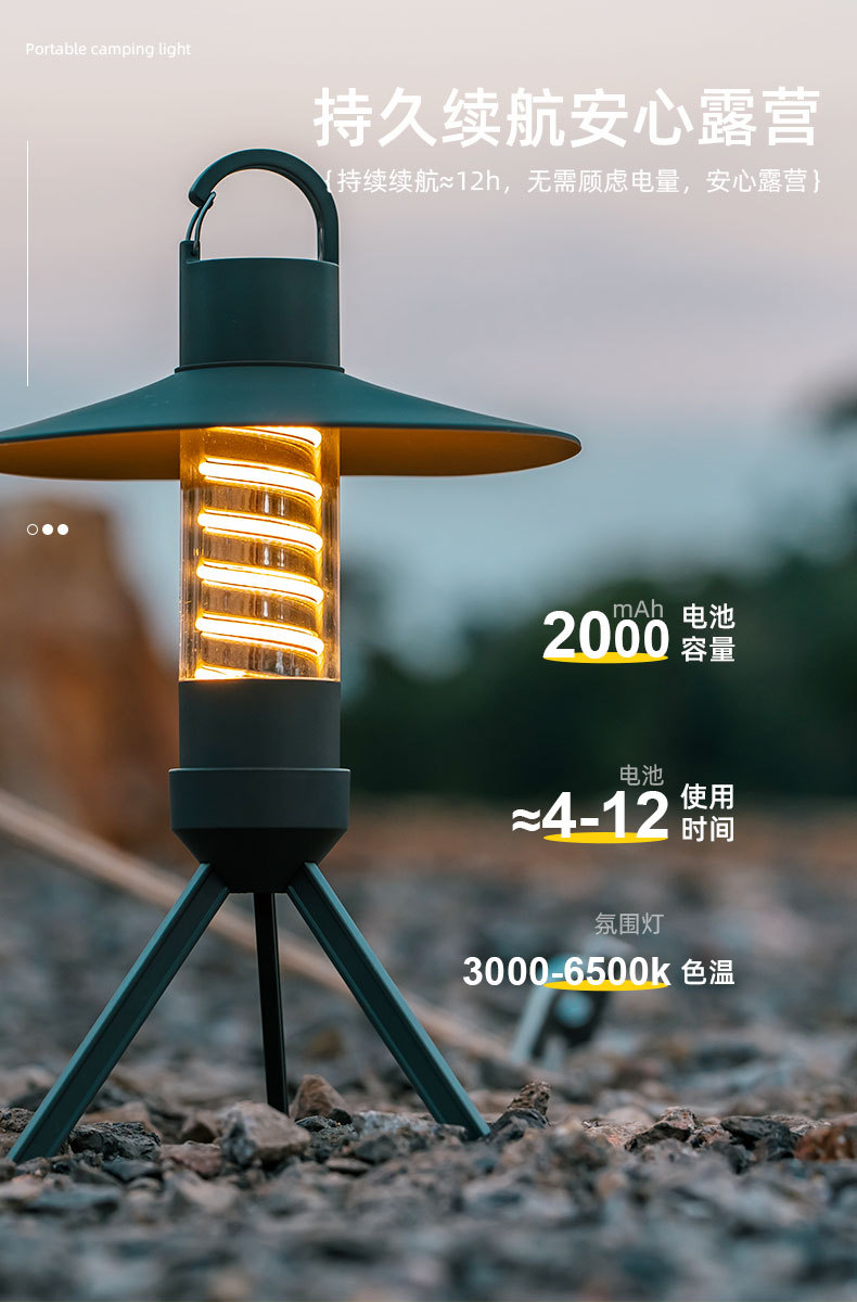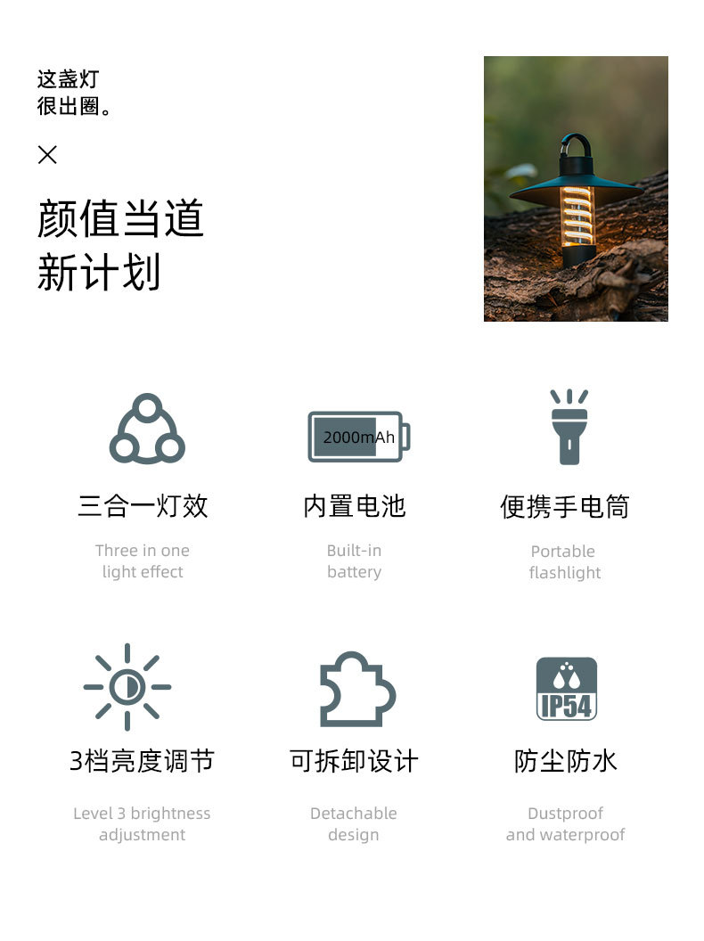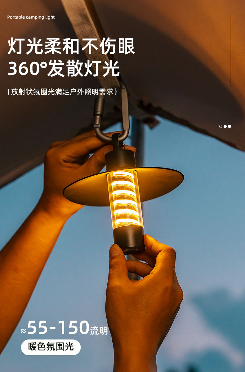 1)露营灯+氛围灯+手电筒三合一;