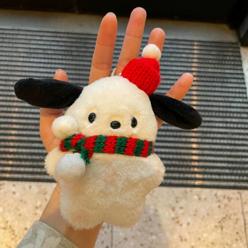 여자 친구 새해 선물을위한 귀여운 봉제 파차 개 축제 버전 봉제 펜던트 키 체인 커플 가방 장식품스토어 가기