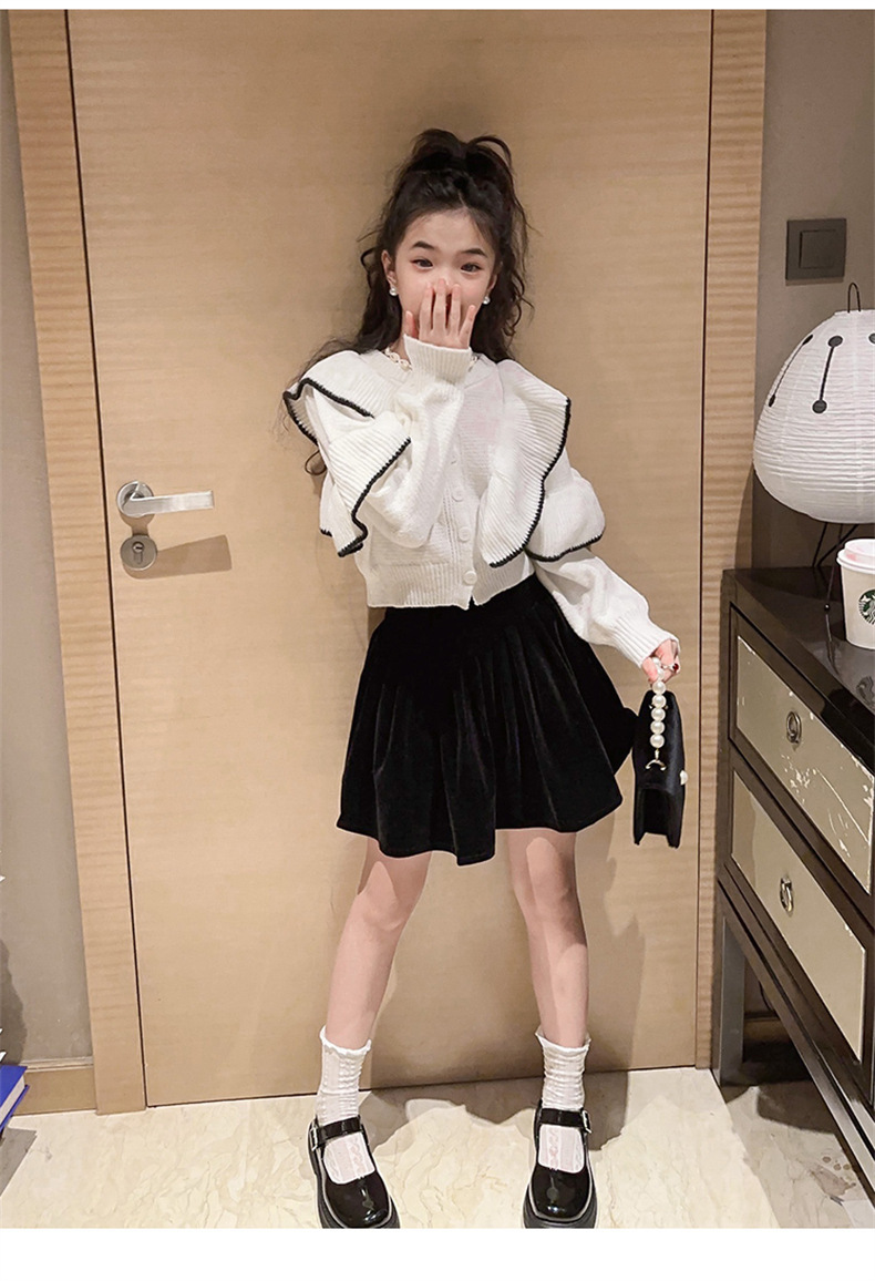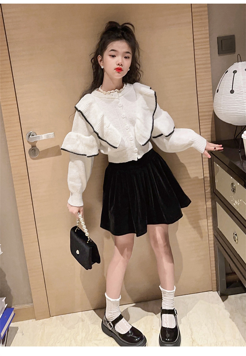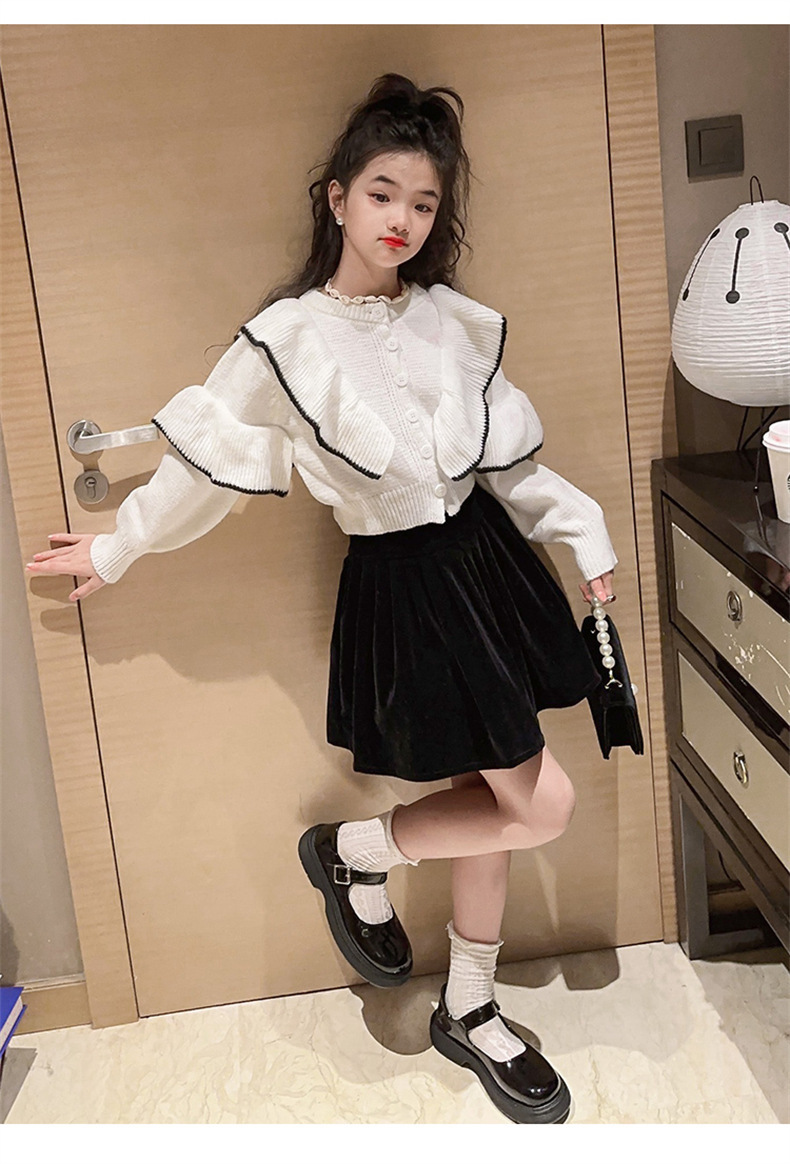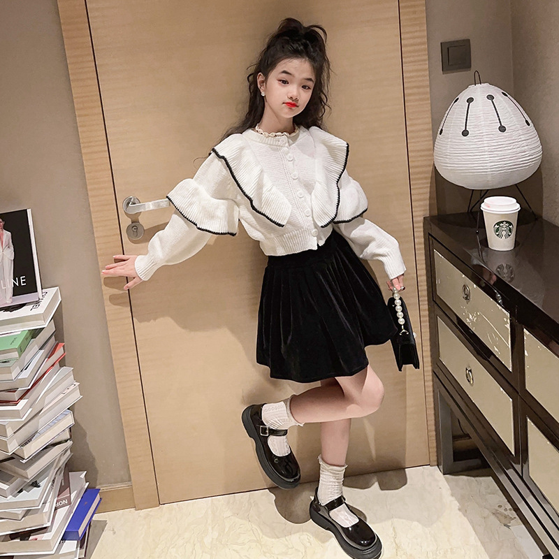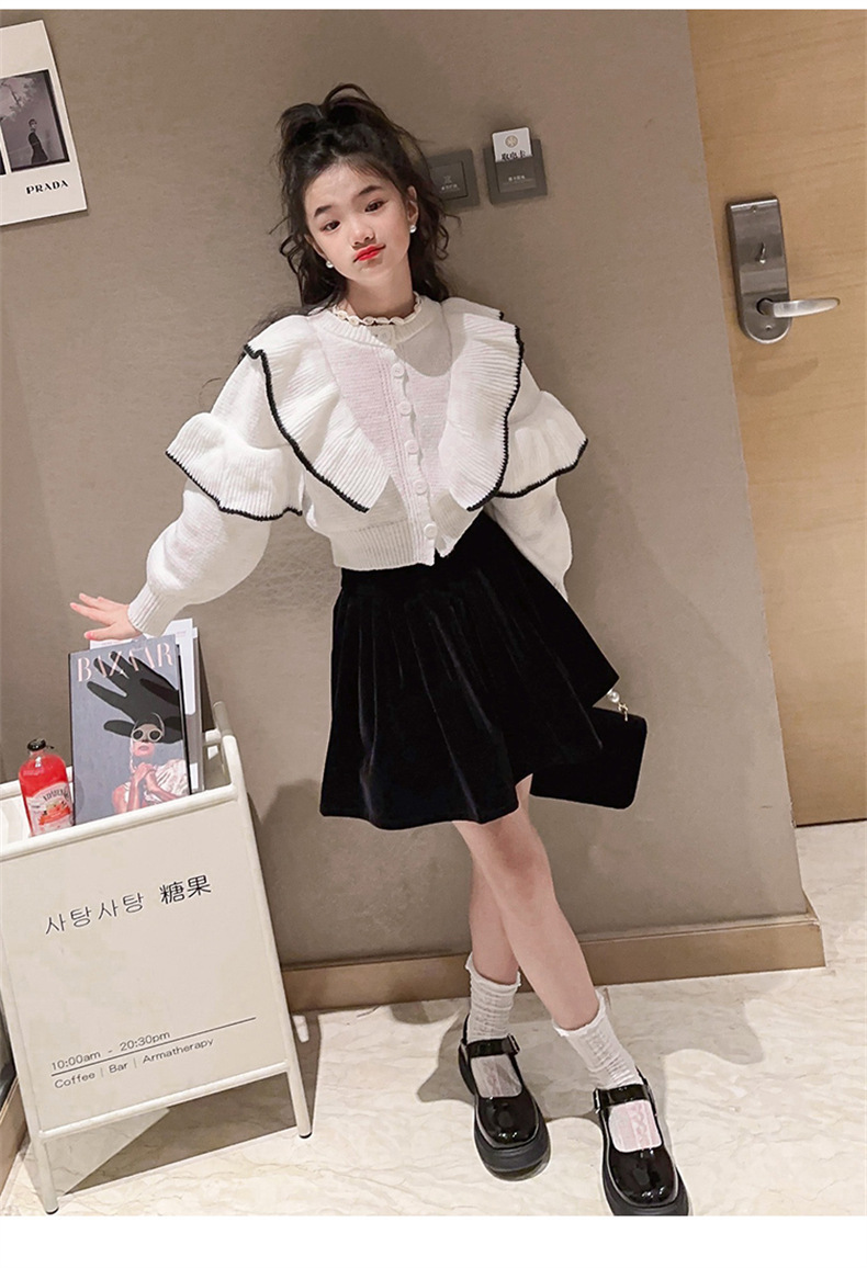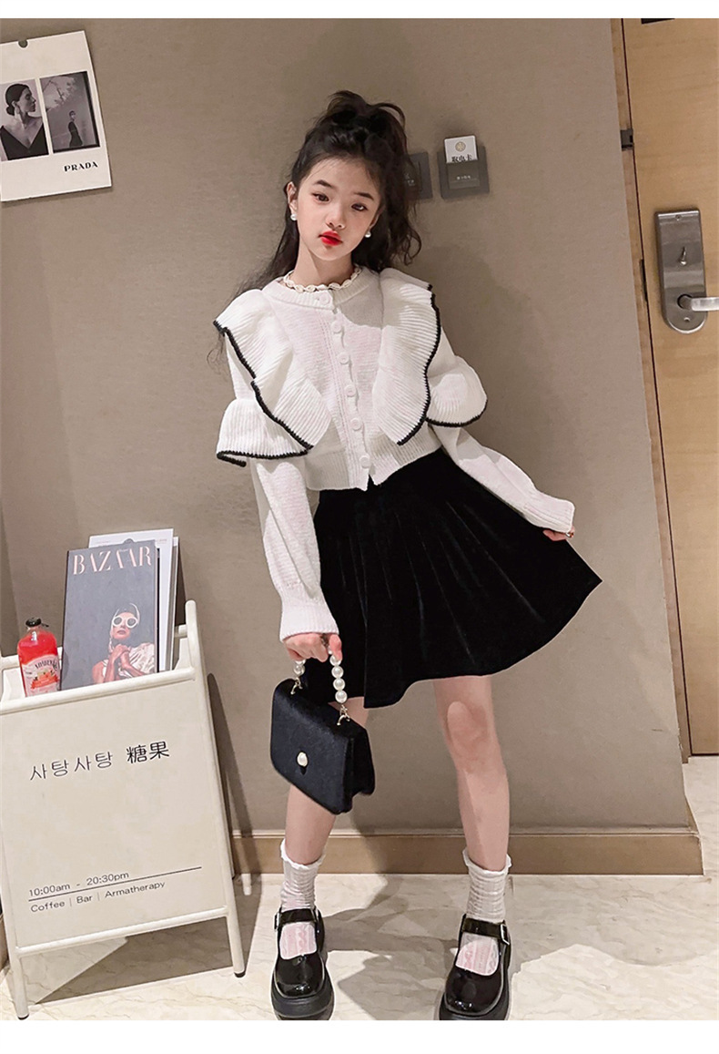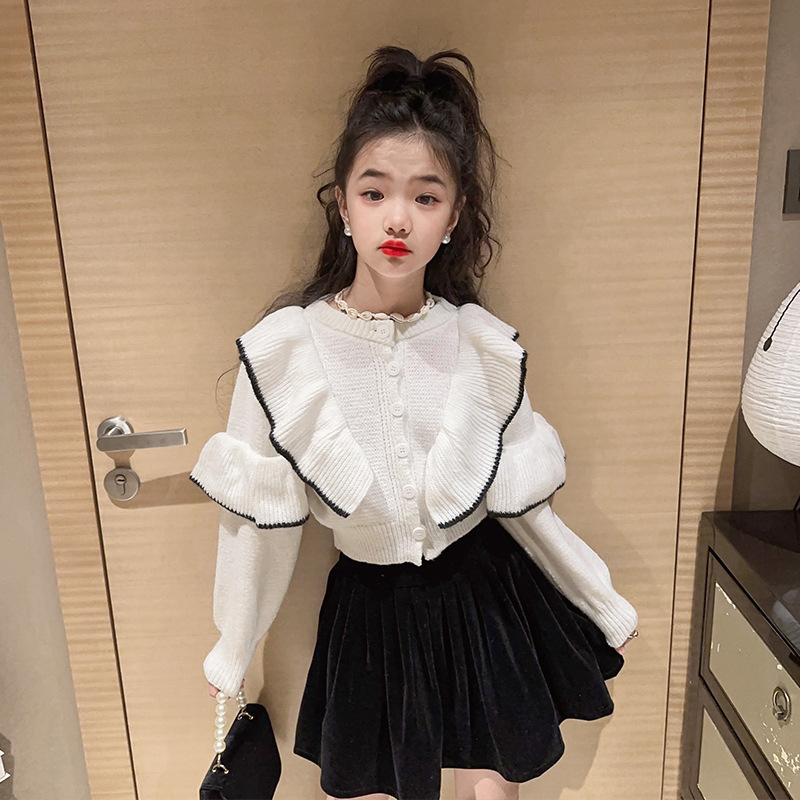 소녀 스웨터 봄과 가을 2024 봄 새로운 큰 어린이 스웨터 유행 샤넬 스타일 나무 귀 스웨터 패션스토어 가기