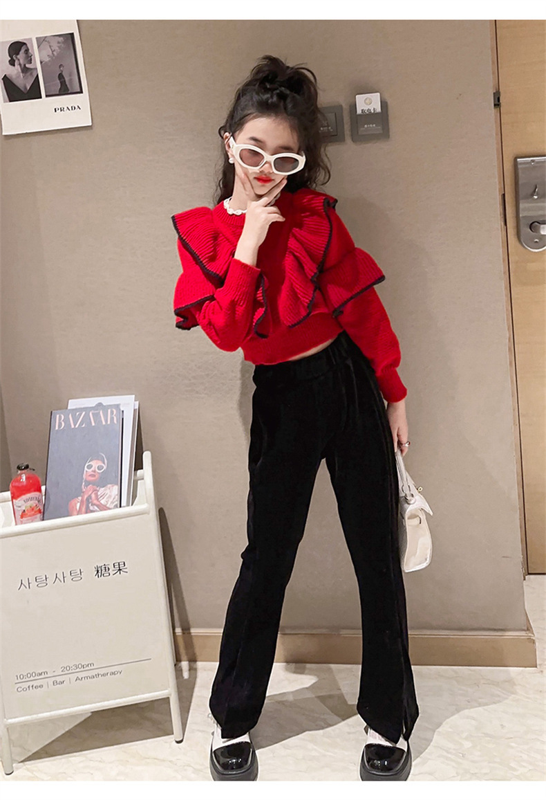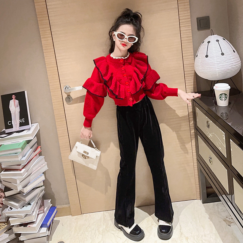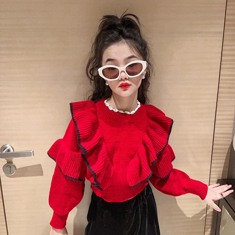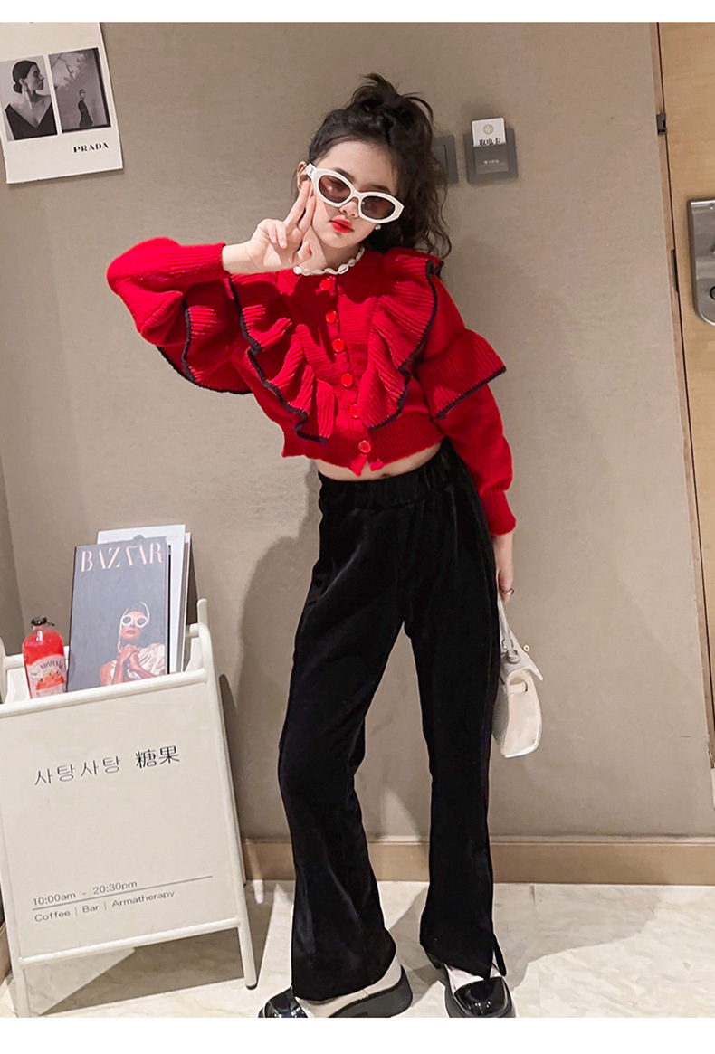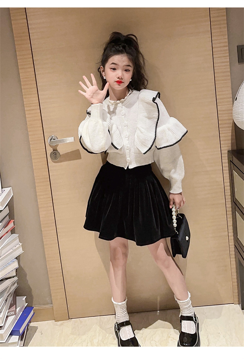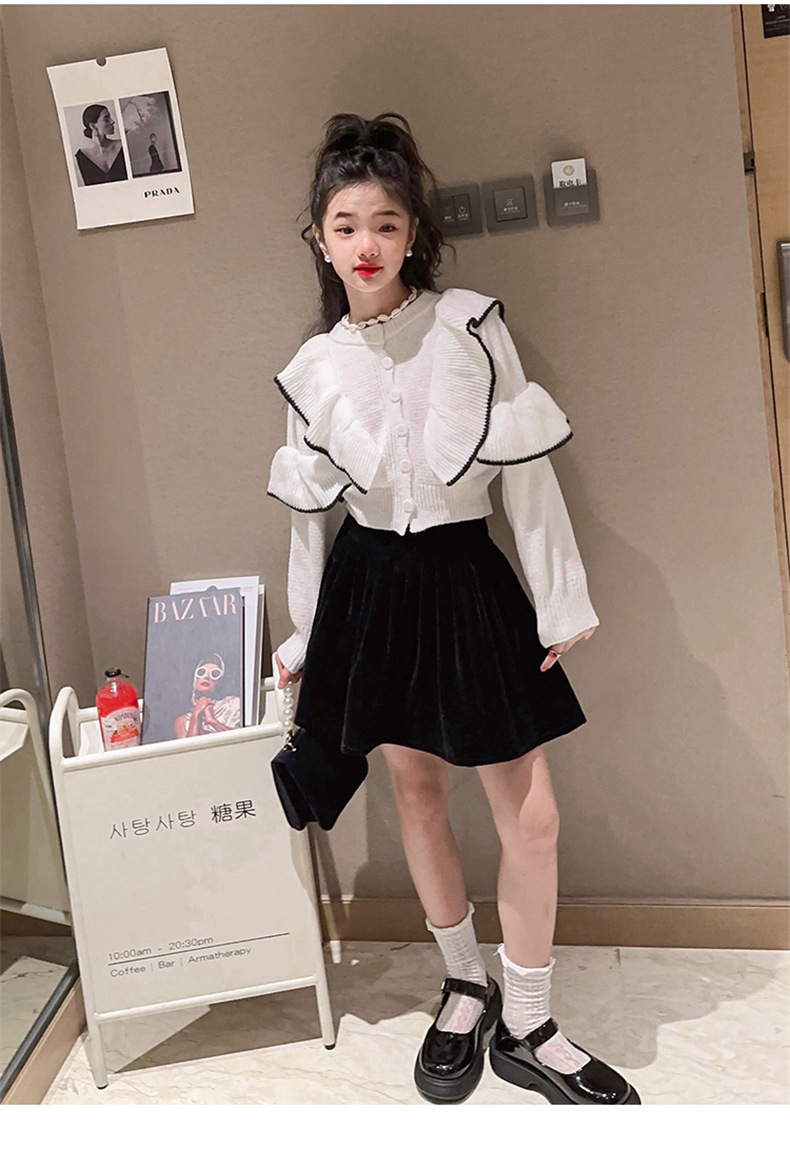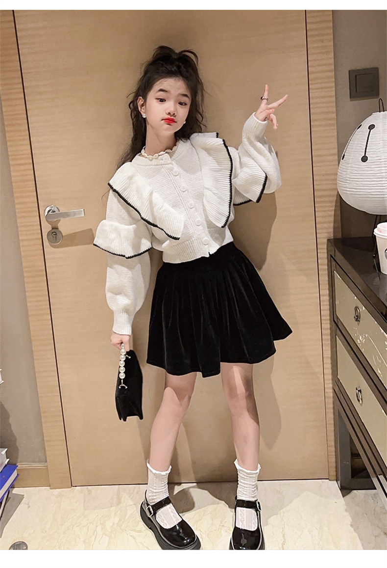 소녀 스웨터 봄과 가을 2024 봄 새로운 큰 어린이 스웨터 유행 샤넬 스타일 나무 귀 스웨터 패션스토어 가기
