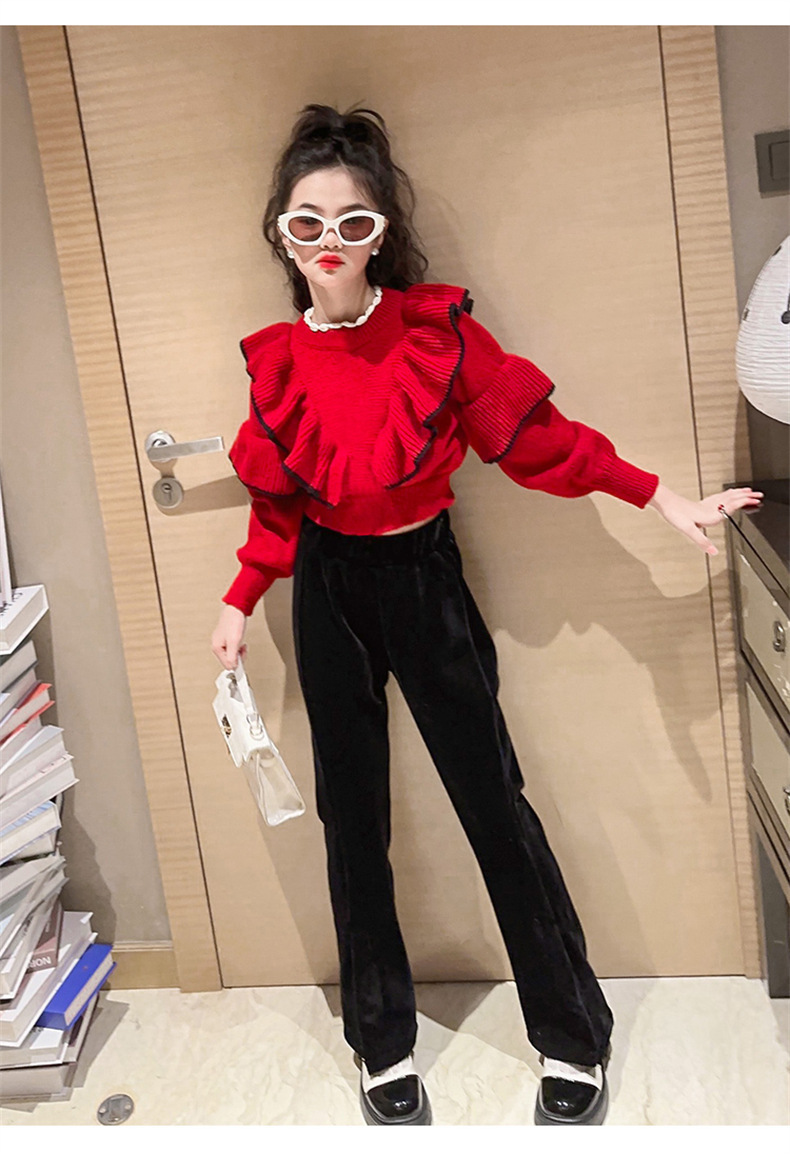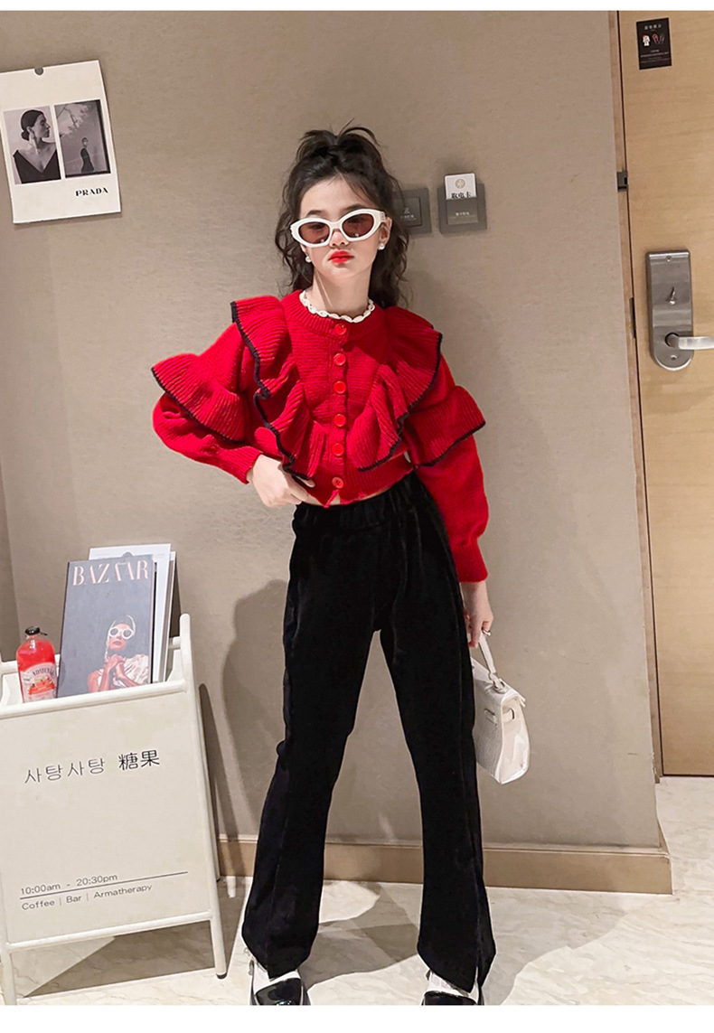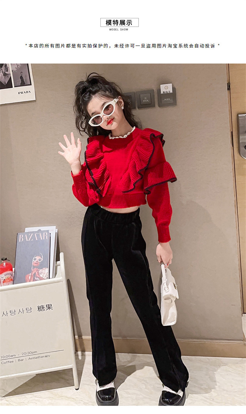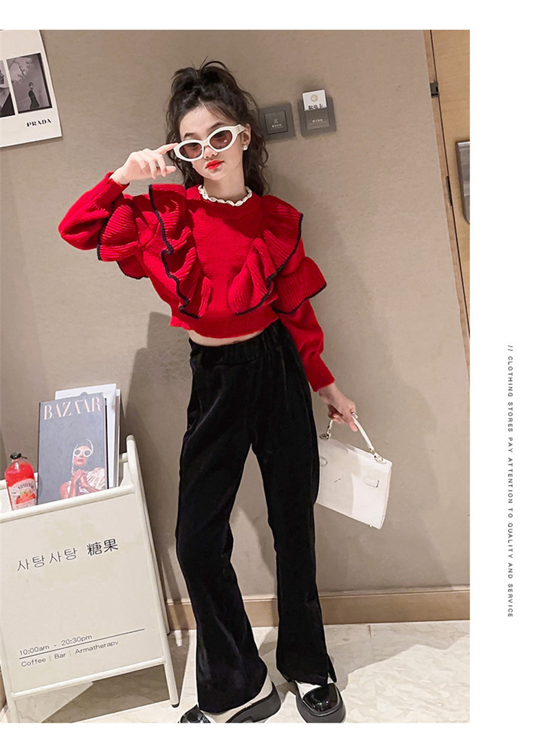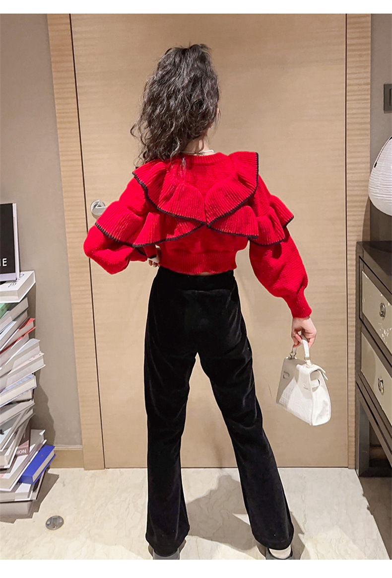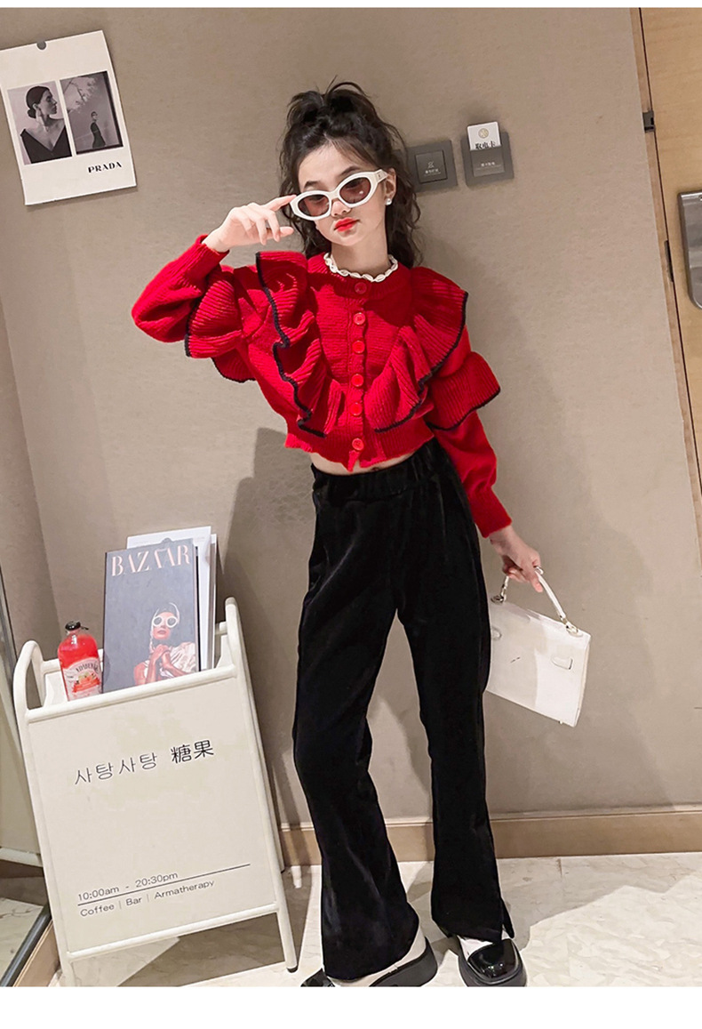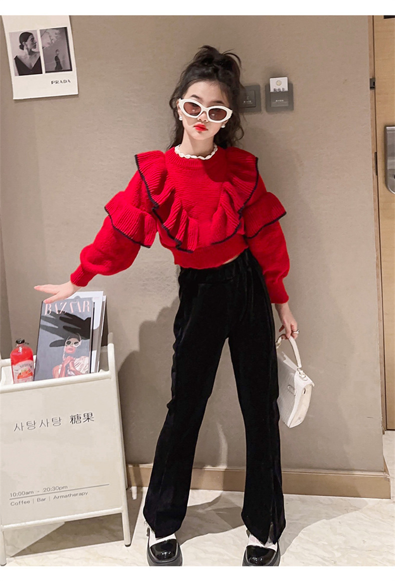 소녀 스웨터 봄과 가을 2024 봄 새로운 큰 어린이 스웨터 유행 샤넬 스타일 나무 귀 스웨터 패션스토어 가기
